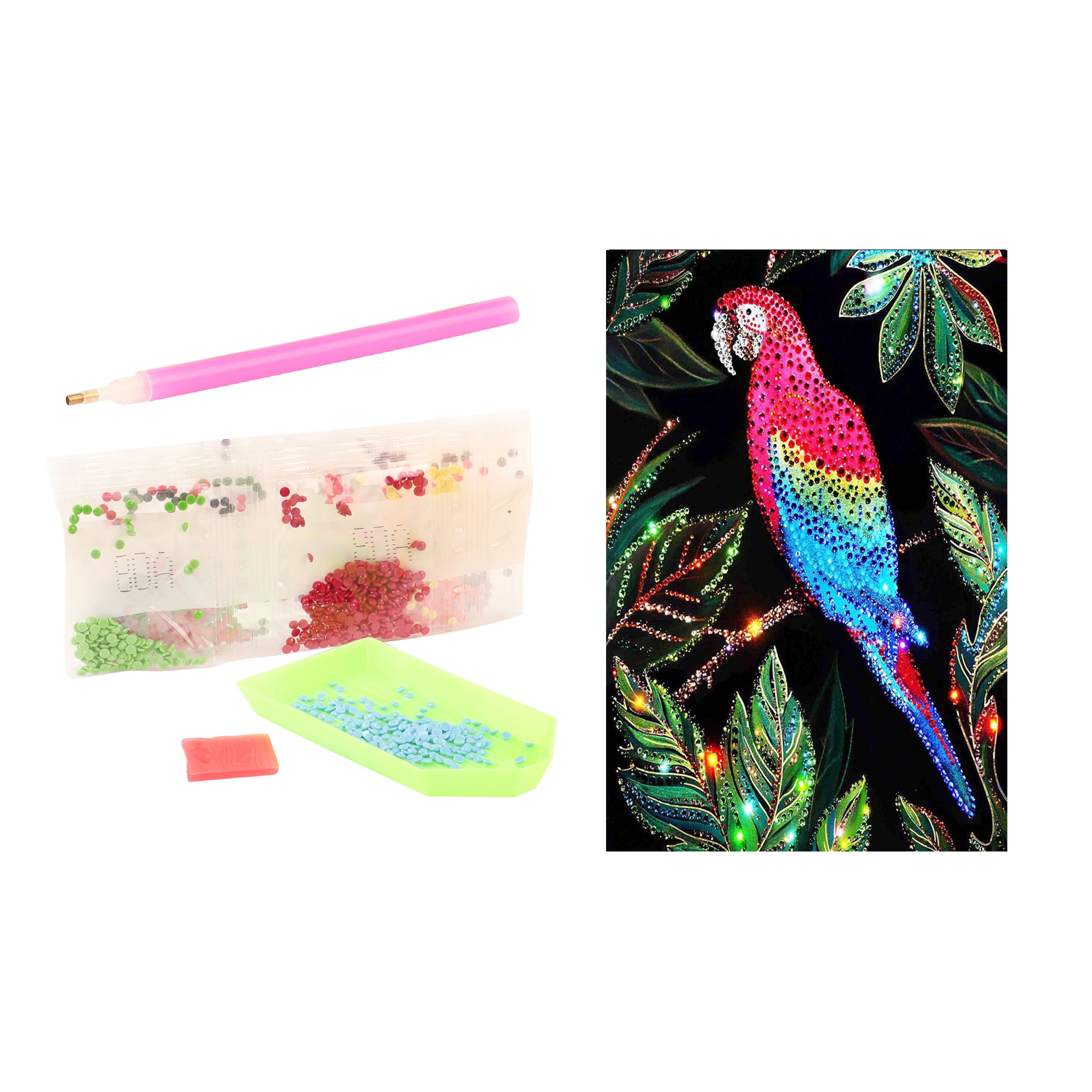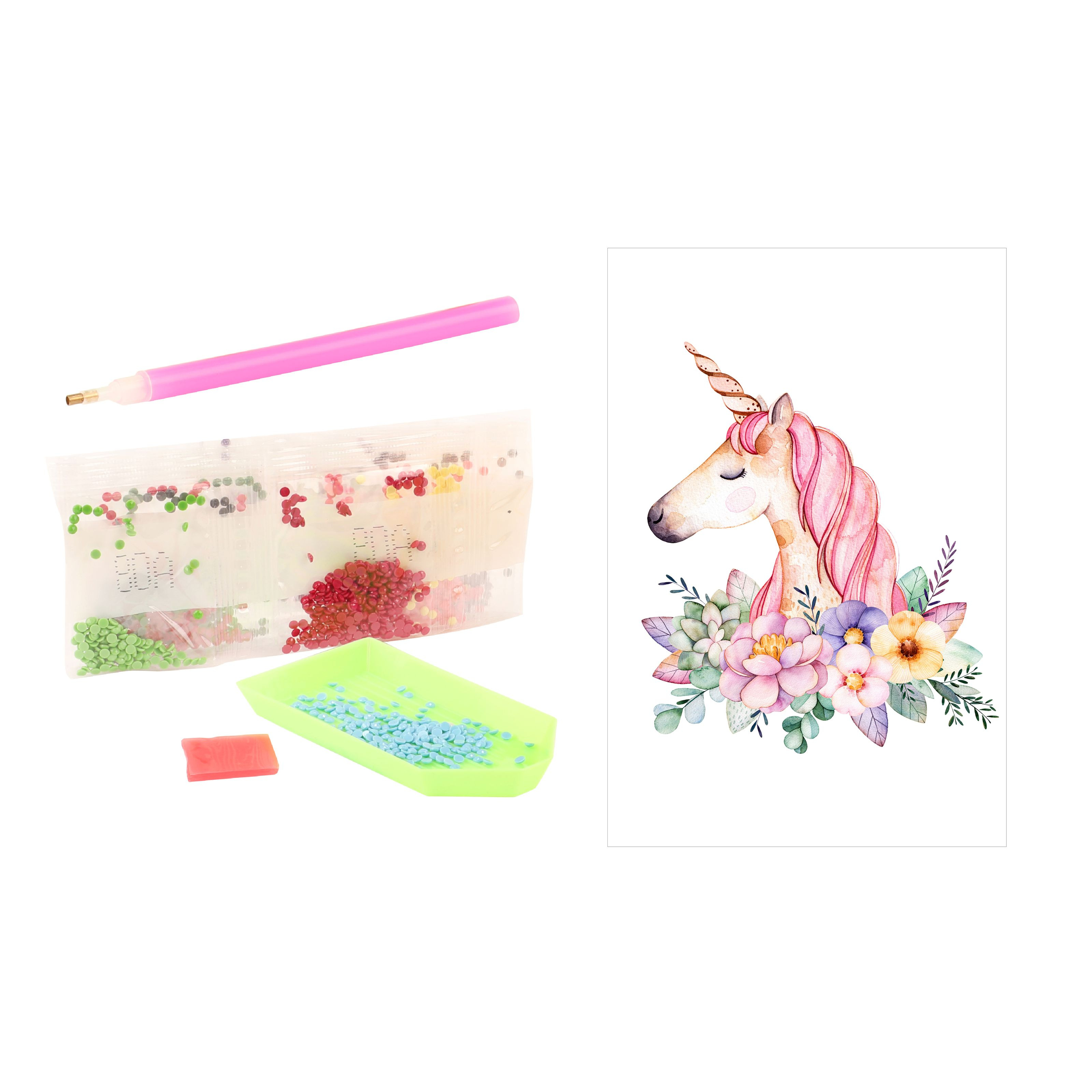Diamantová malba, nyní i pro nejmenší! S touto úžasnou sadou na malování s obřími diamanty můžete vytvářet krásné diamantové obrazy. Extra velké kameny jsou samolepicí a lze je nalepit na šest různých karet. Vyrobíte si nejprve oslnivou želvu nebo kouzelného jednorožce? Rozměry balení: 20x20x4cm. Věk: 3+