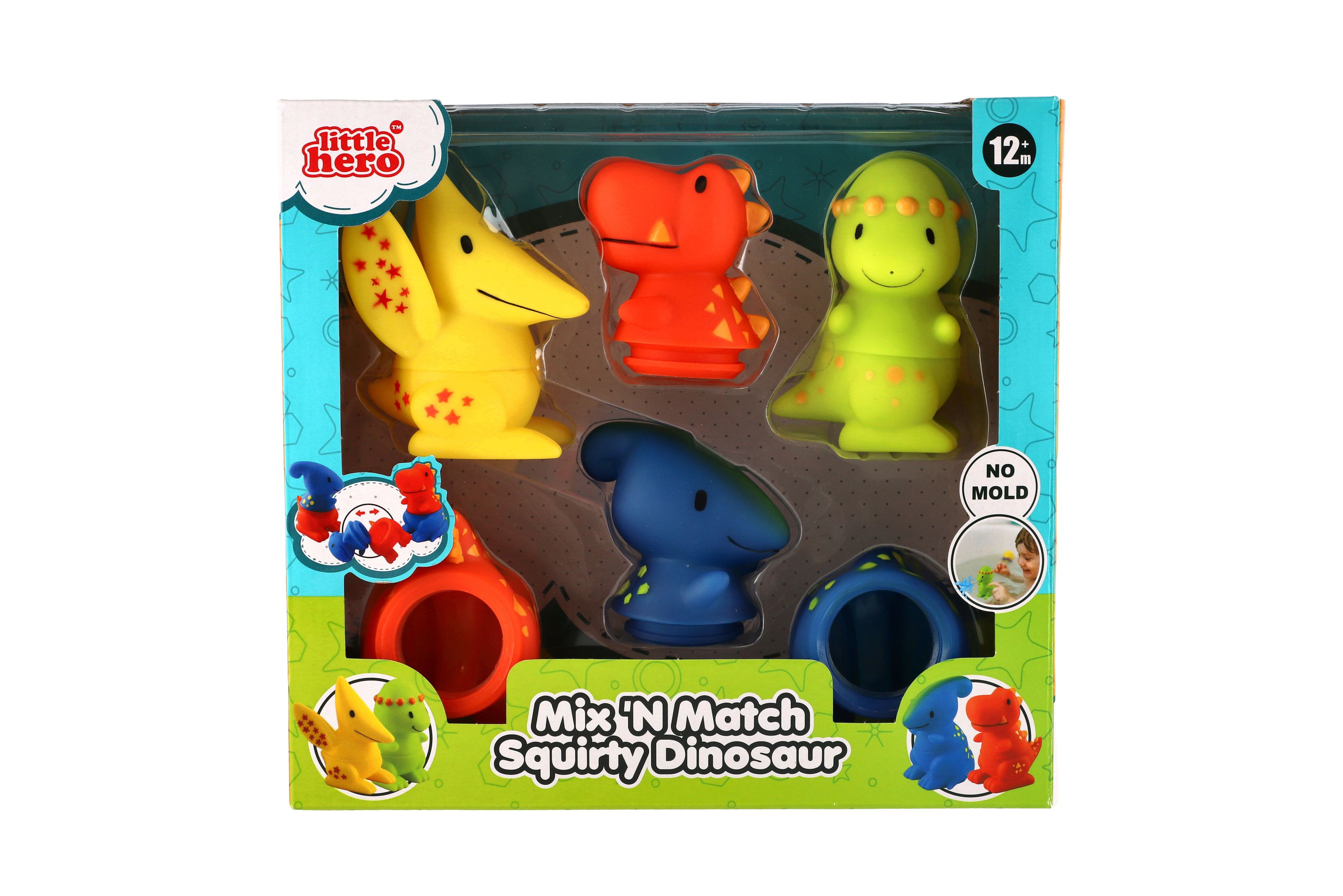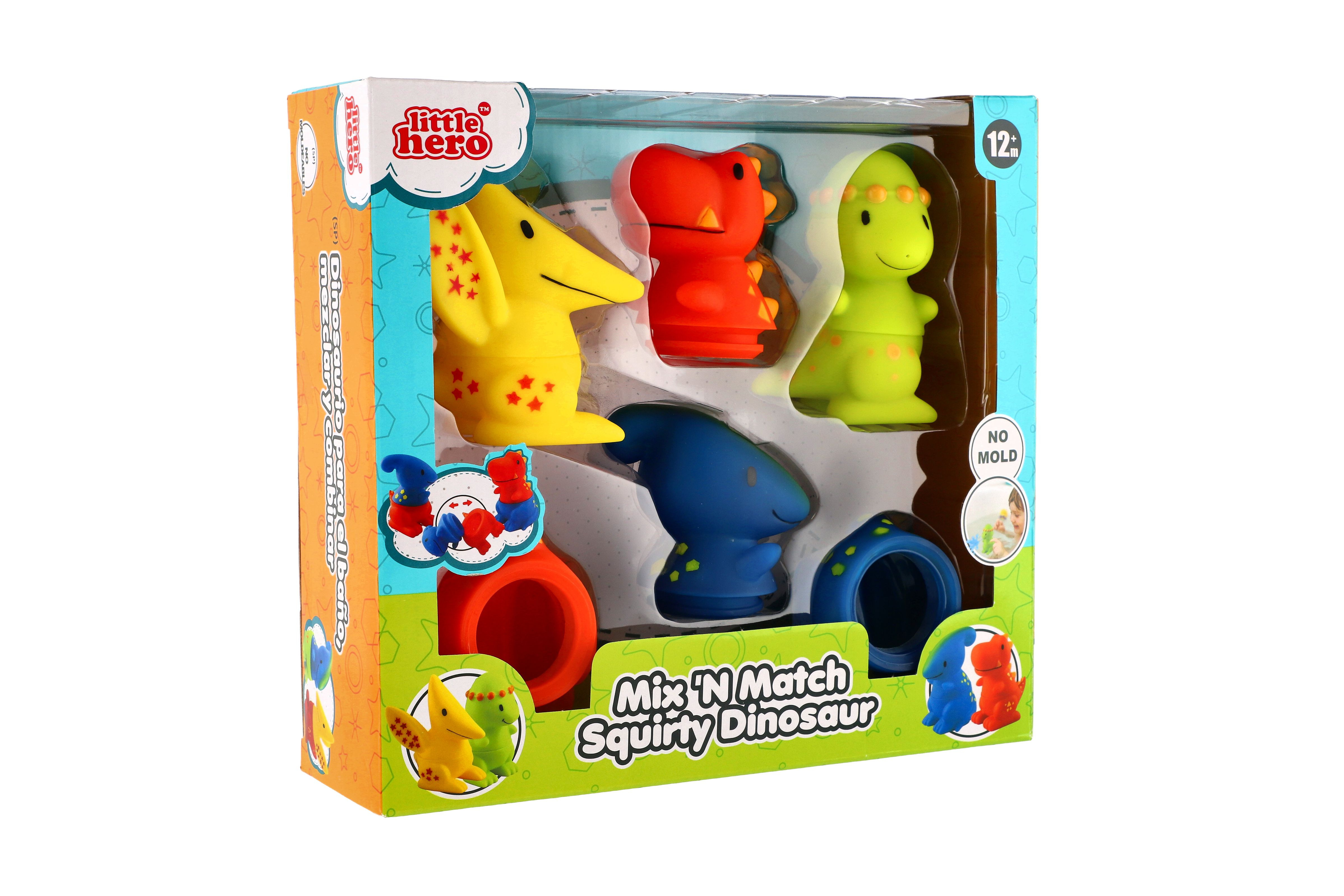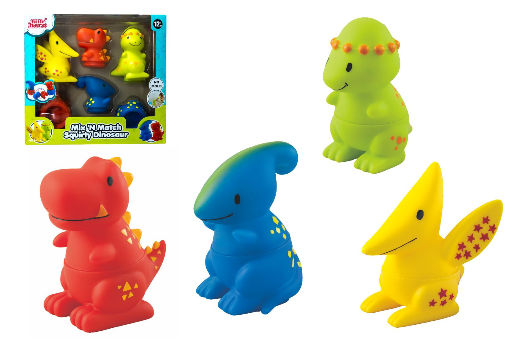 Zábavná hračka nejen do vany. V balení najdete 4 gumové stříkací dinosaury. Dinosauři mají rozdělávatelná těla, můžete si tak sestavit vlastního dinosaura. Rozměr krabice: 26 x 24 x 8 cm Vhodné pro děti od 12 měsíců