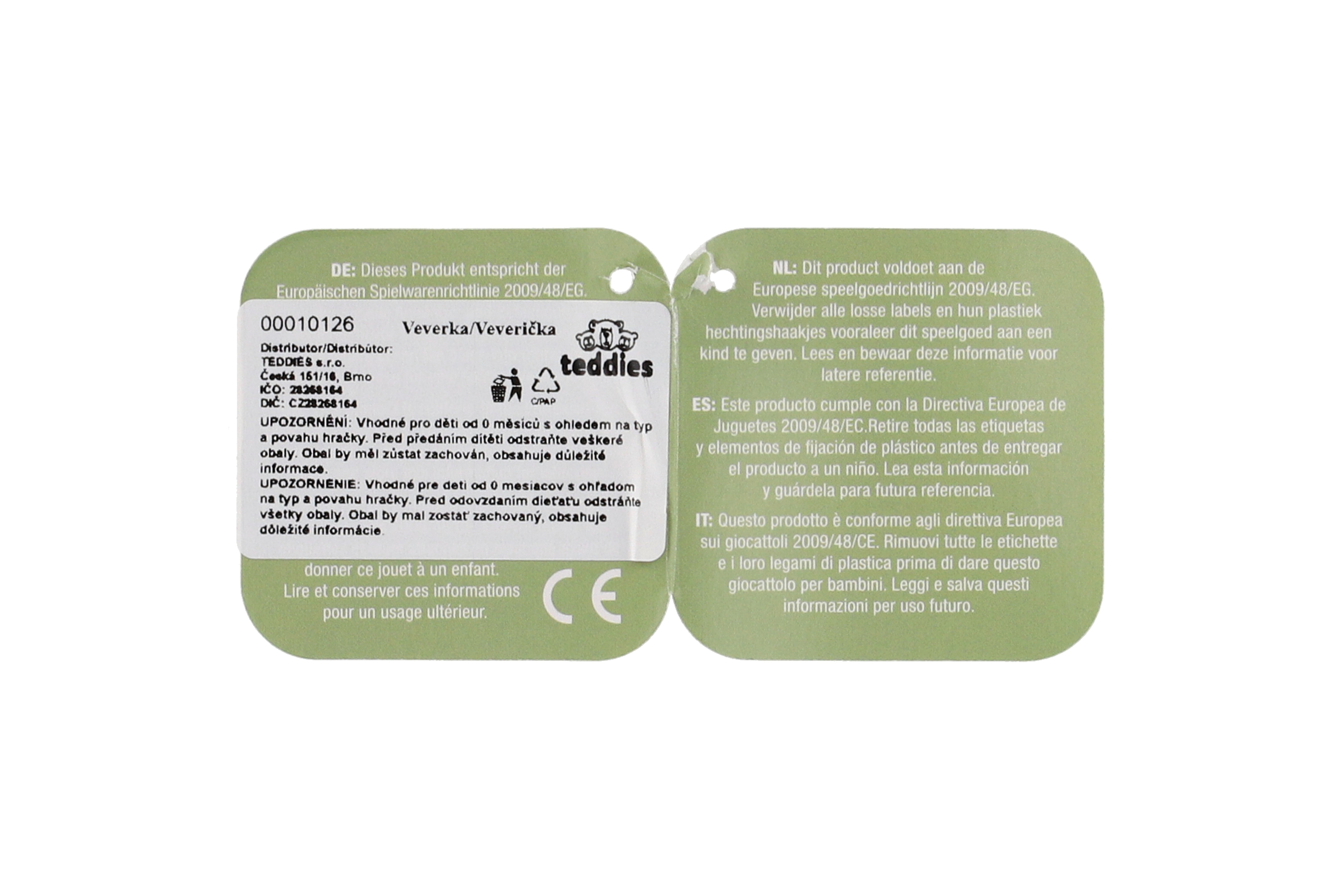 Její zbarvení a huňatý ocas jí dává autentický vzhled, který zaujme nejen děti, ale i dospělé. Díky své velikosti je ideální pro malé dětské ruce, které ji mohou snadno držet a mazlit se s ní. Vyrobeno z jemného plyše, který je příjemný na dotek.
