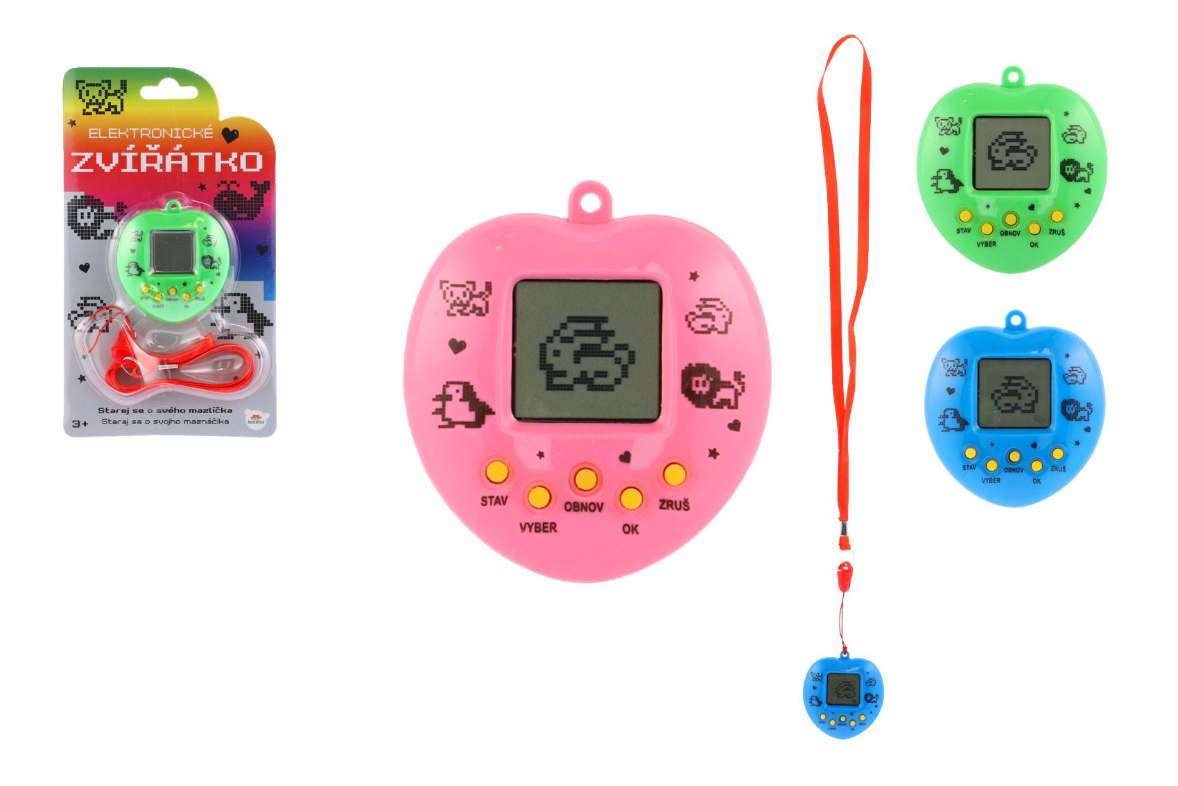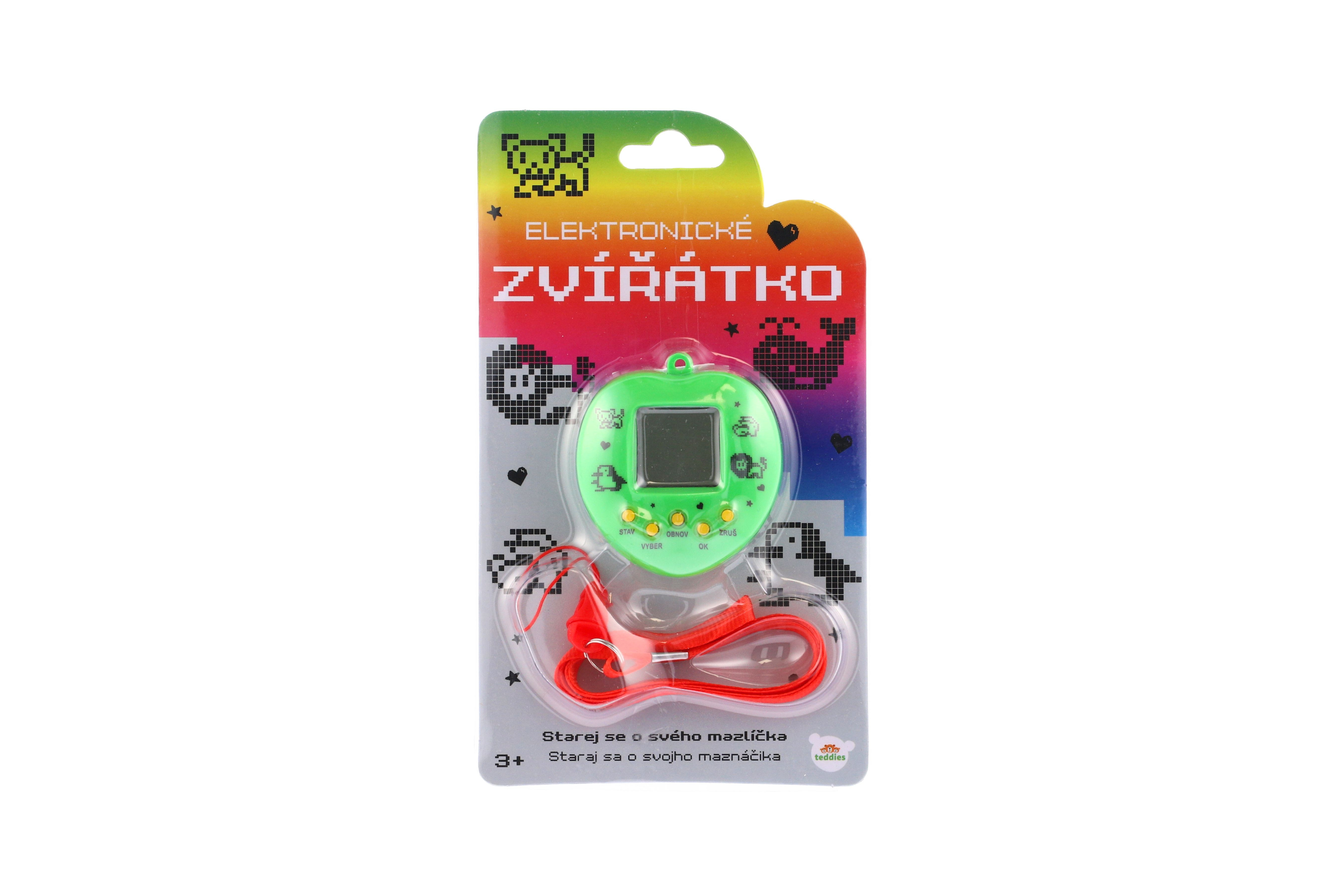 Beschreibung Teddies Elektronisches Tierchen Anhänger mit Schnur aus Kunststoff 5x6cm mit Batterie. 3 Farben mit Sound auf Karte 10,5x15x2cm
