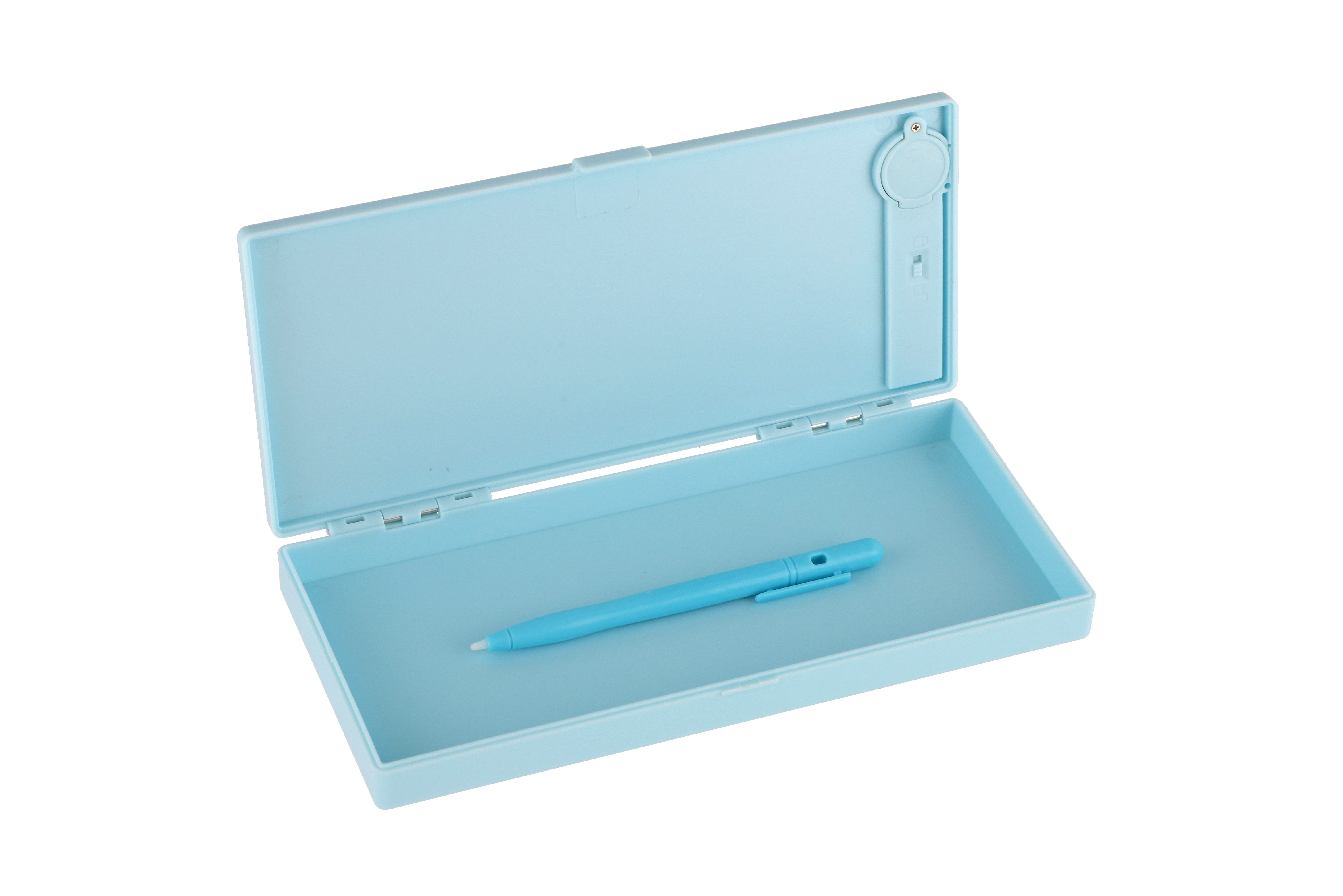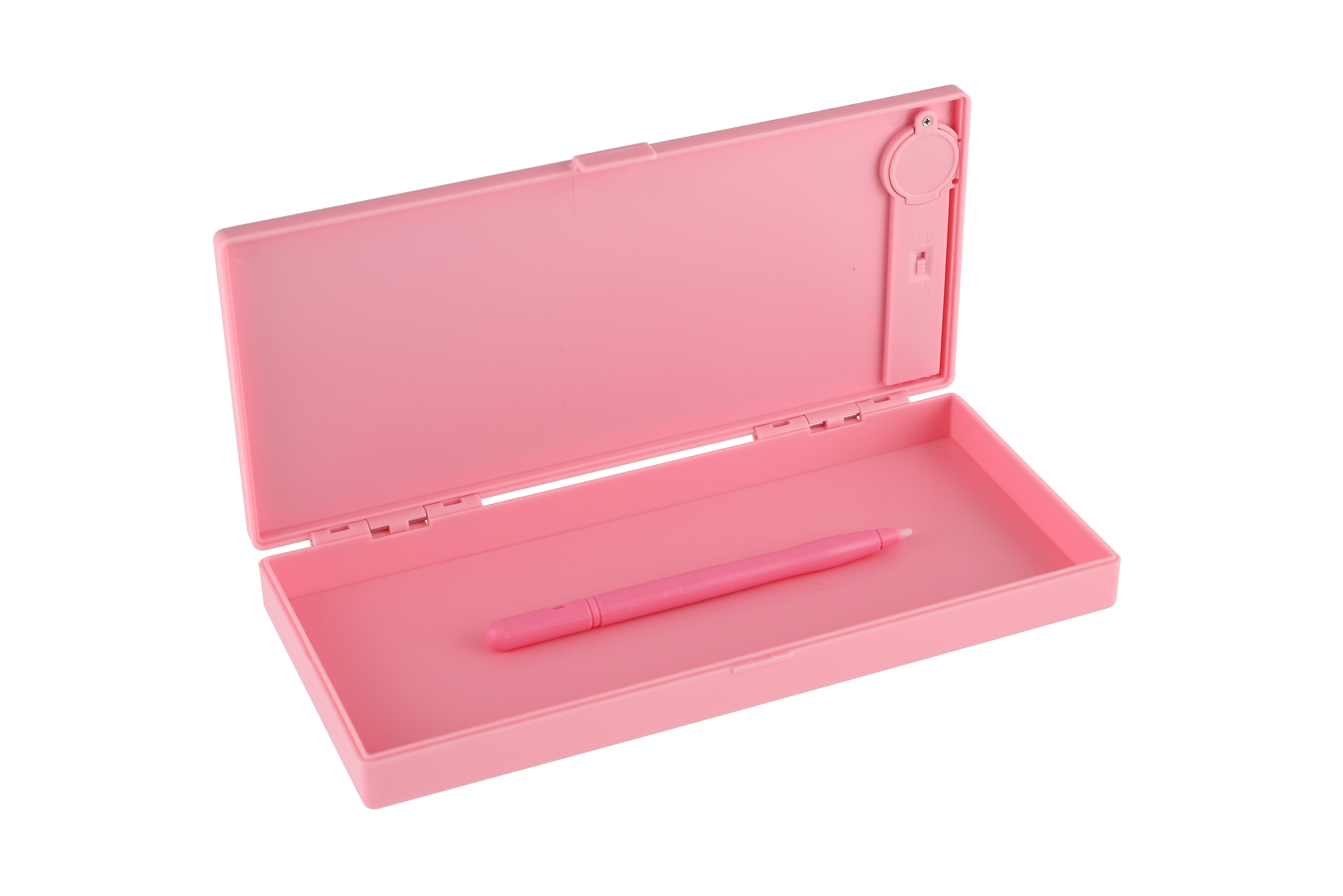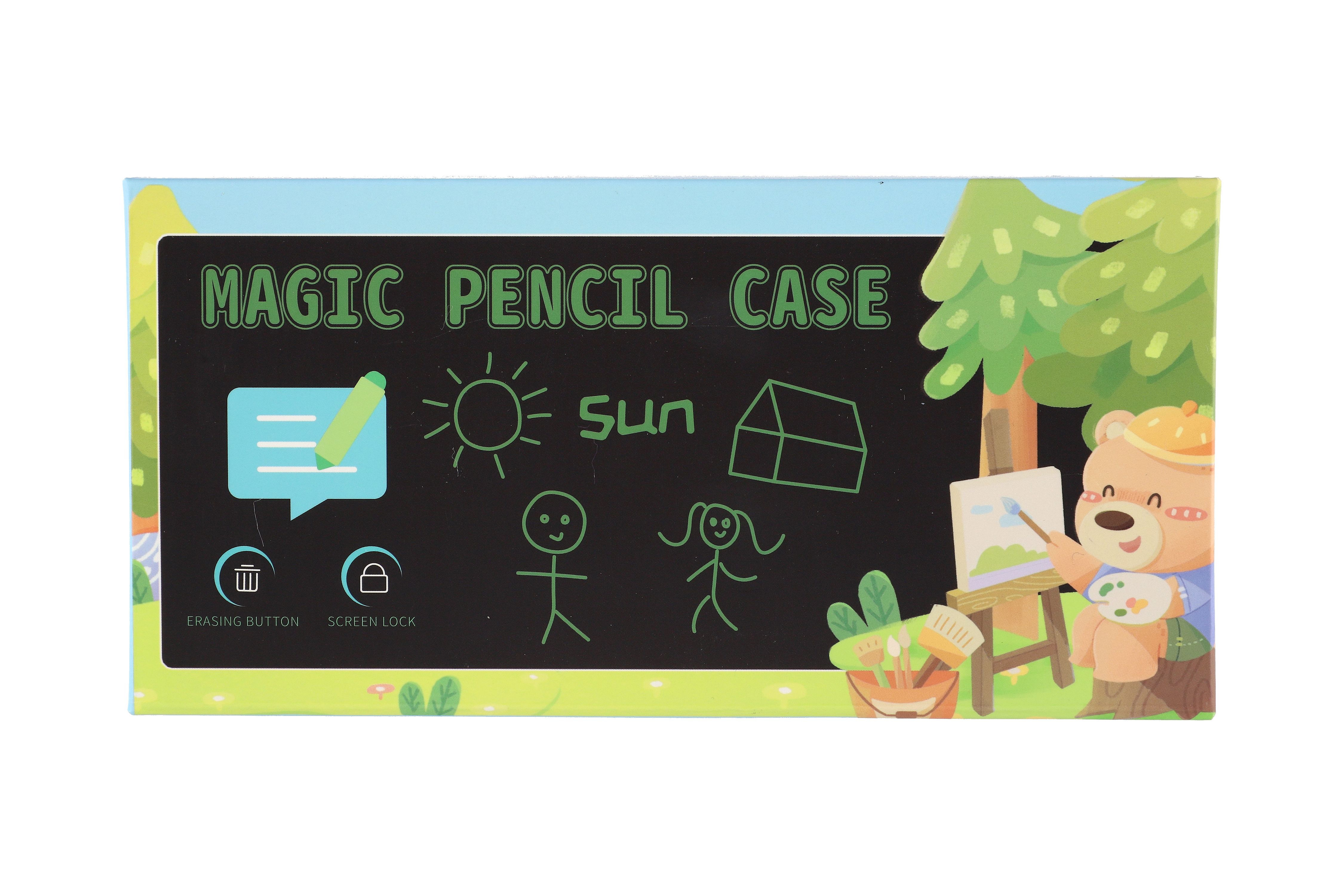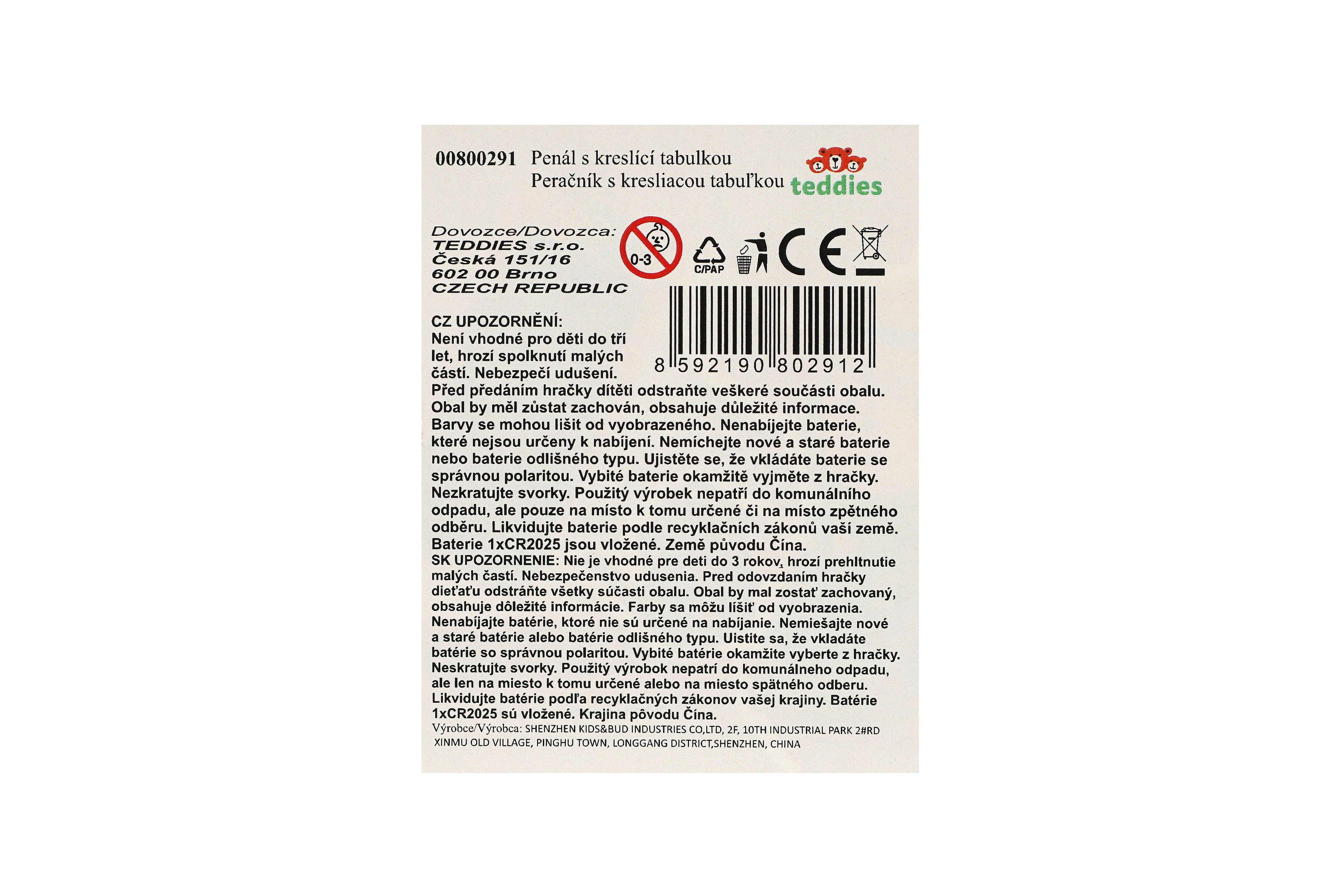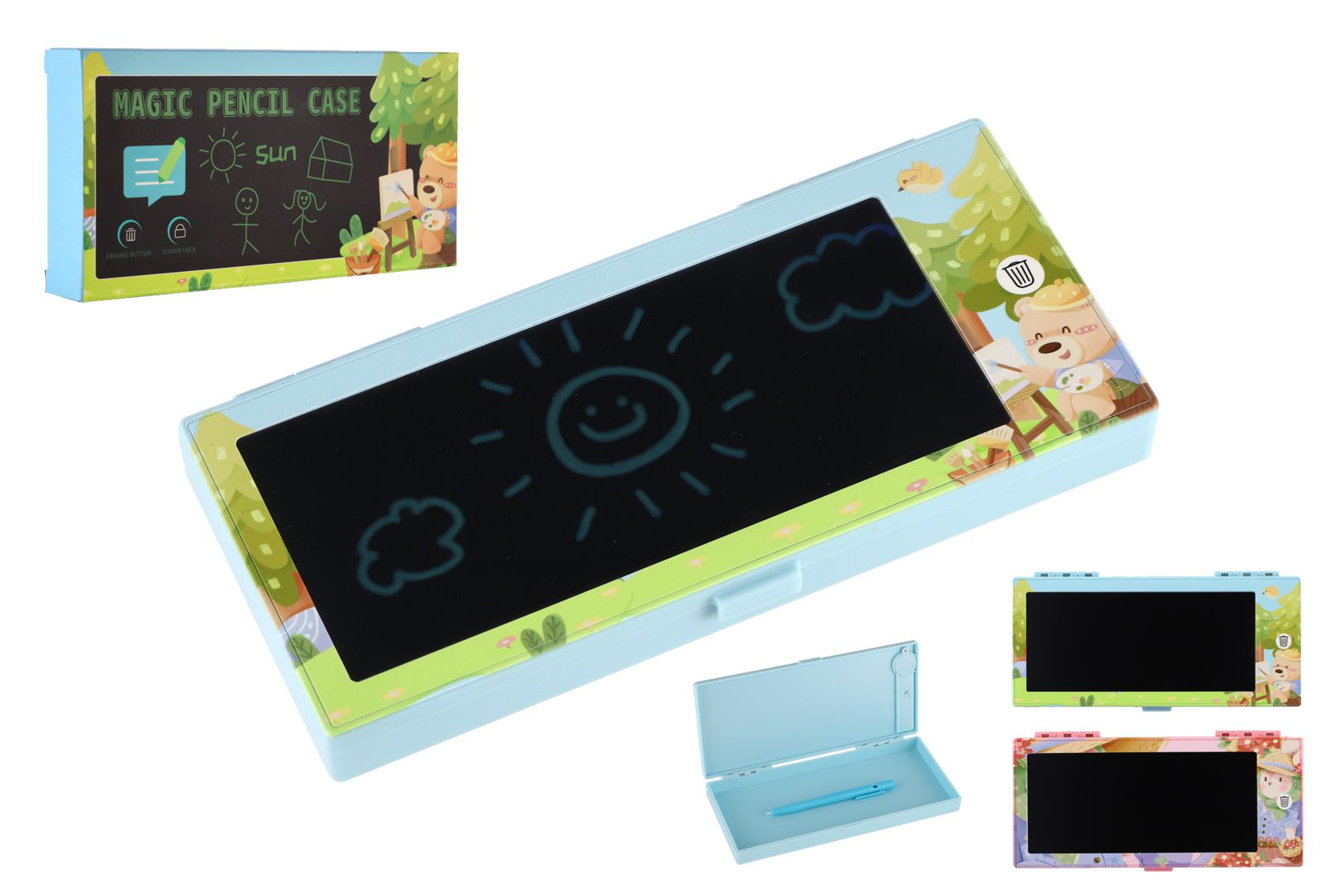 Beschreibung Teddies Federmäppchen/Etui mit magnetischer Zeichentafel aus Kunststoff, batteriebetrieben, 2 Farben, in Schachtel 21x10,5x2,5cm