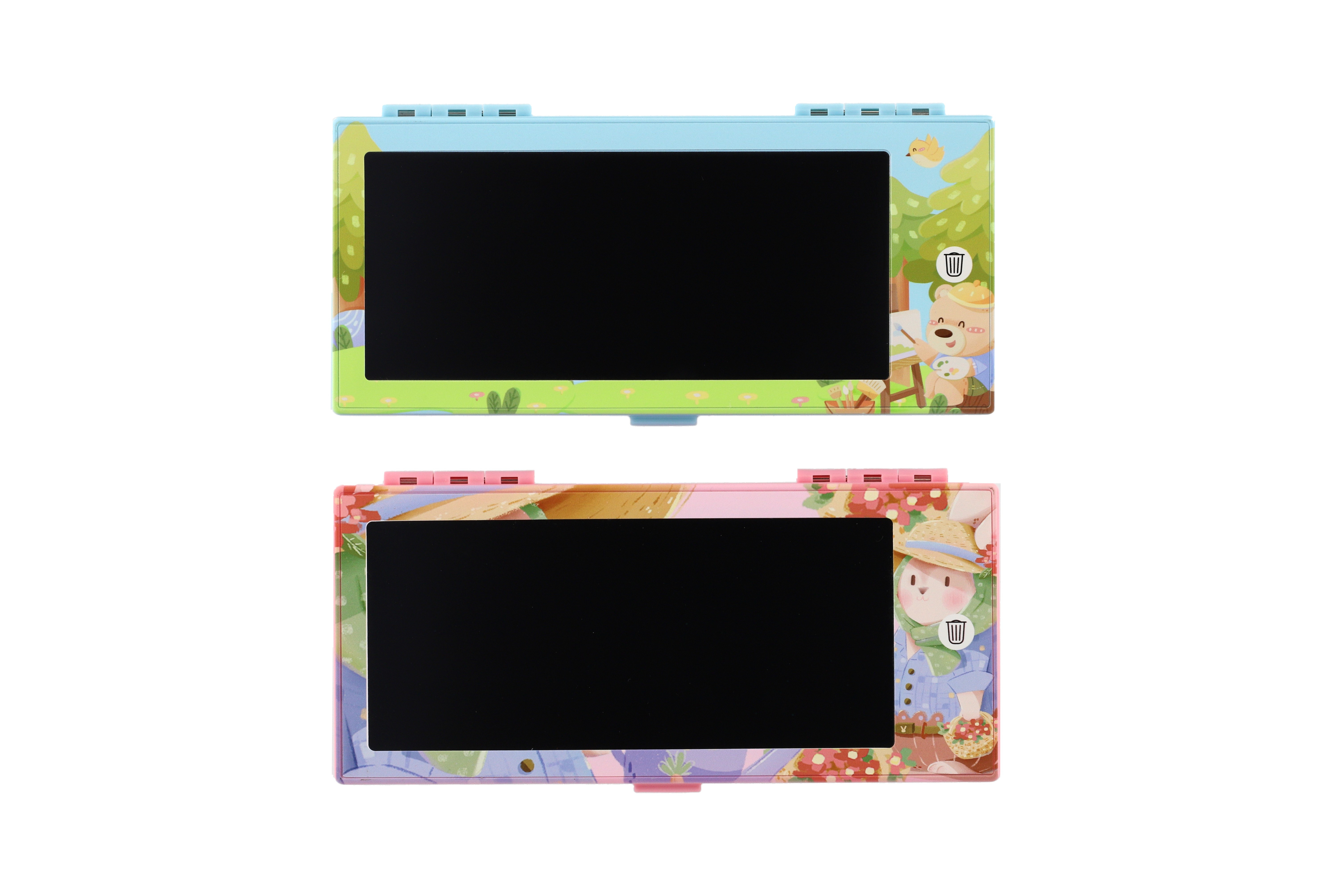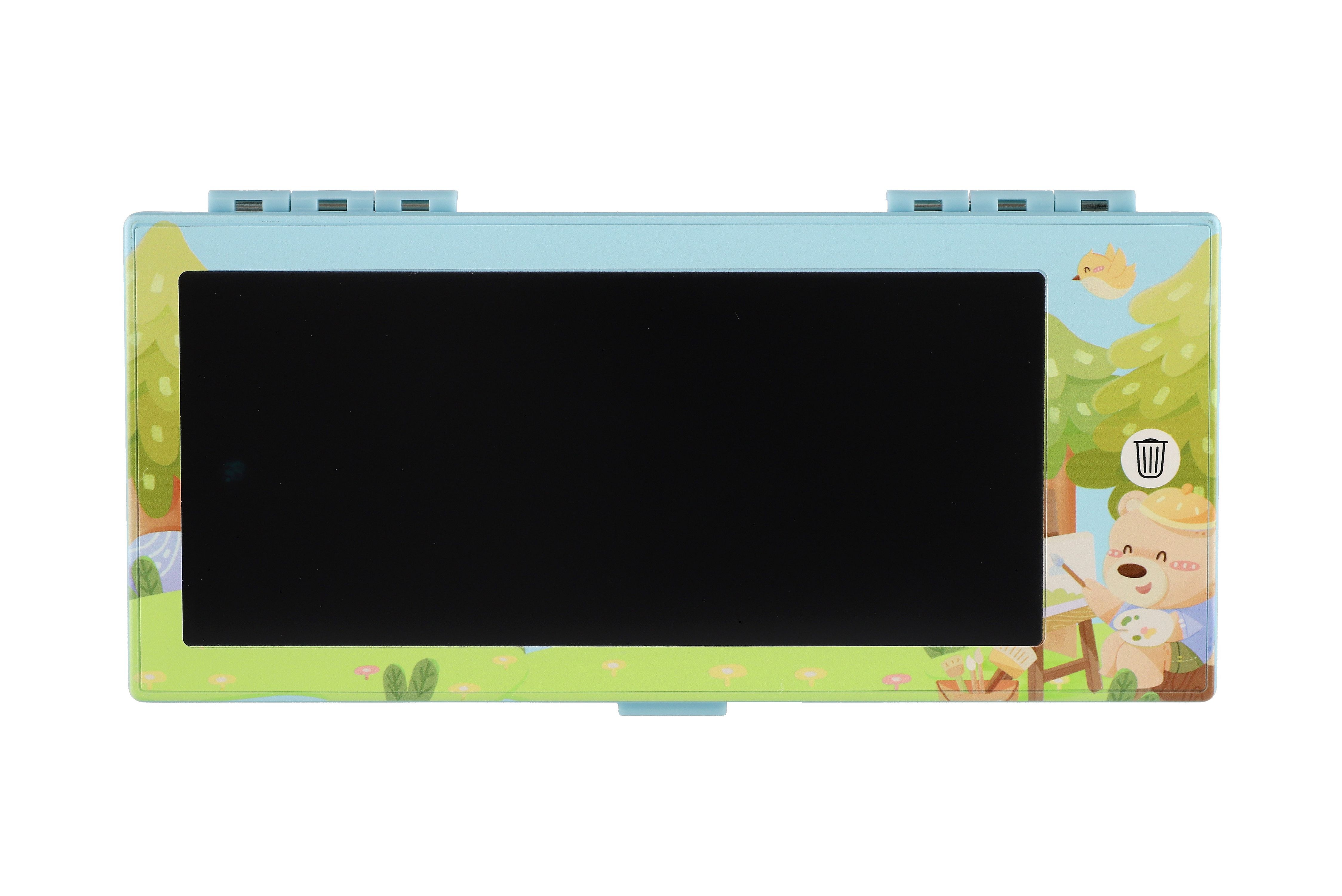 Kombinace LCD tabletu na kreslení s multifunkčním úložným boxem. Opakovaně použitelná psací plocha LCD snižuje plýtvání papírem, ideální pro rychlé poznámky a náčrtky. Prostorná přihrádka na tužky, pera a další nezbytnosti. Snadno se nosí v batohu, školní tašce nebo pracovní tašce. Baterie 1x CR2025 je součástí výrobku. Rozměry balení 21 x 10,5 x 2,5 cm. Vhodné pro děti od 3 let.