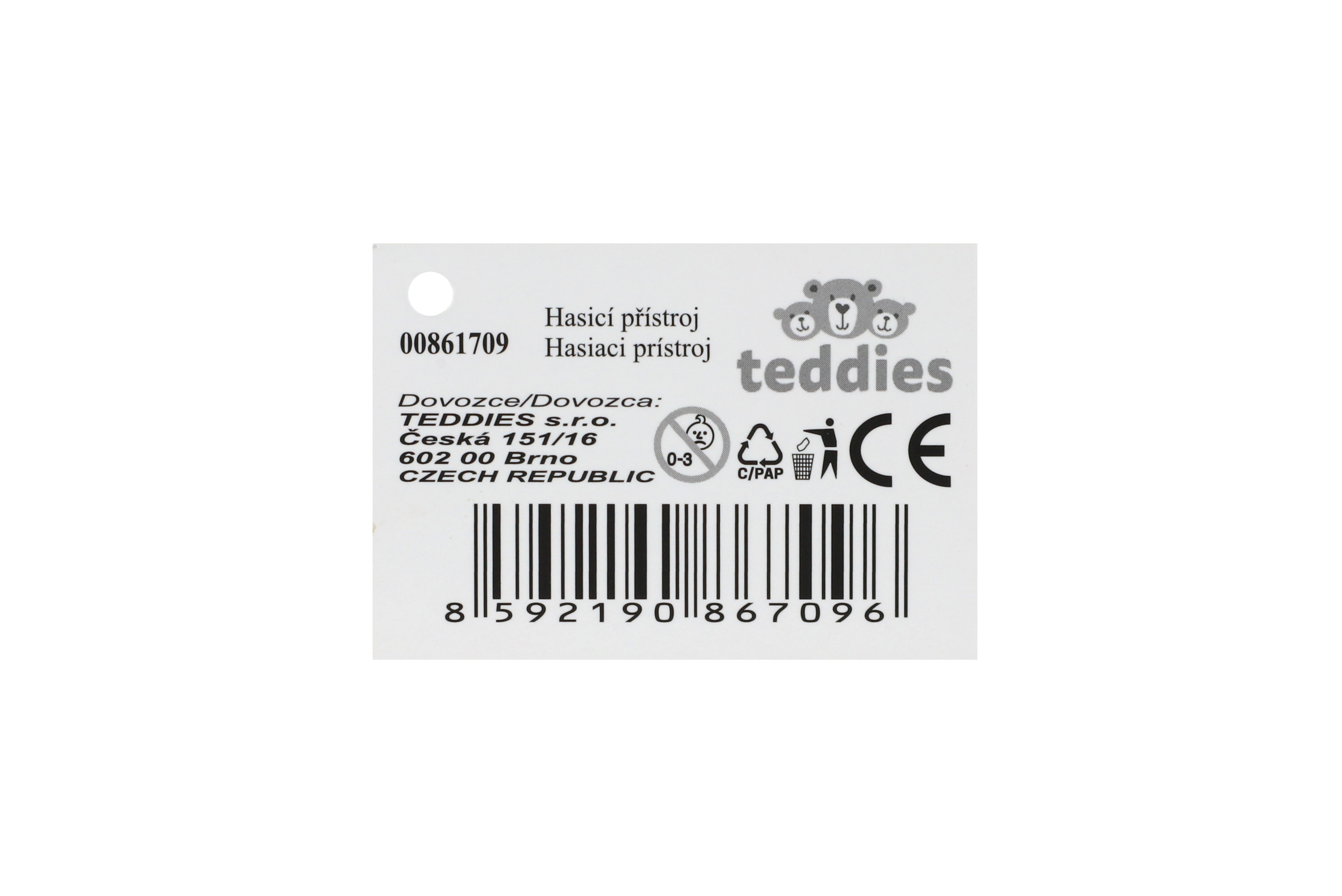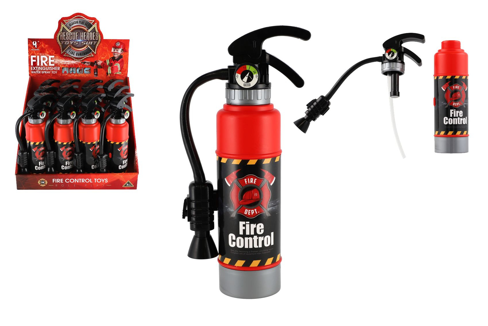 Děti mohou hasit imaginární požáry pomocí imitace hasicího přístroje. Hračka funguje tak, že se stiskne píst, načež voda vystříkne přes ohebnou šňůru. Rozměr hasicího přístroje: 28 cm Vhodné od 3 let