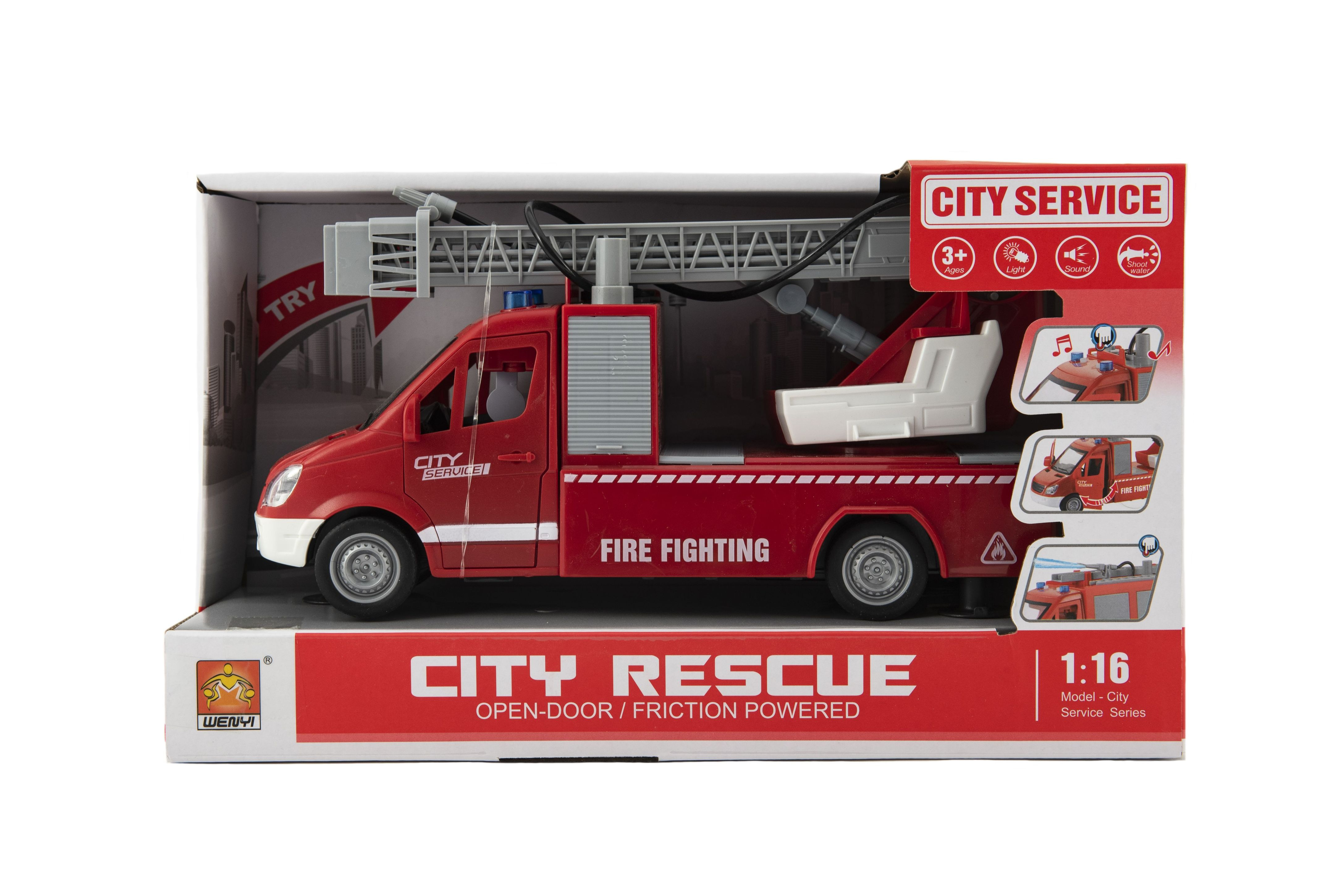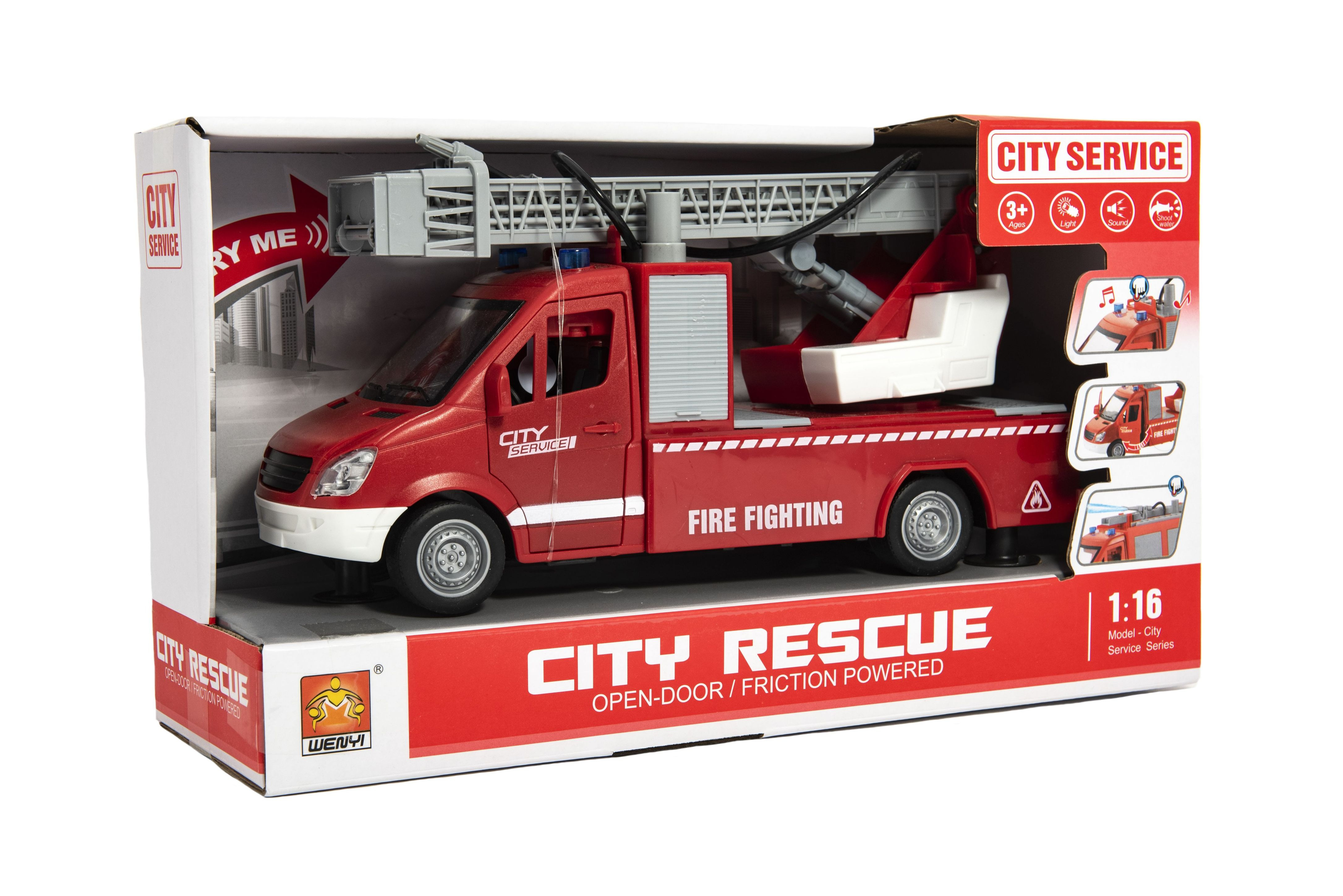 Vyberte si své oblíbené hasičské auto. Auto je na zpětné natažení. Varianta se žebříkem má vysouvací