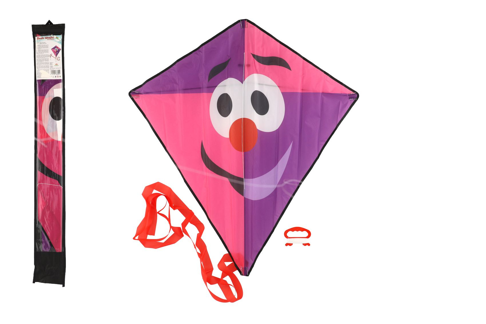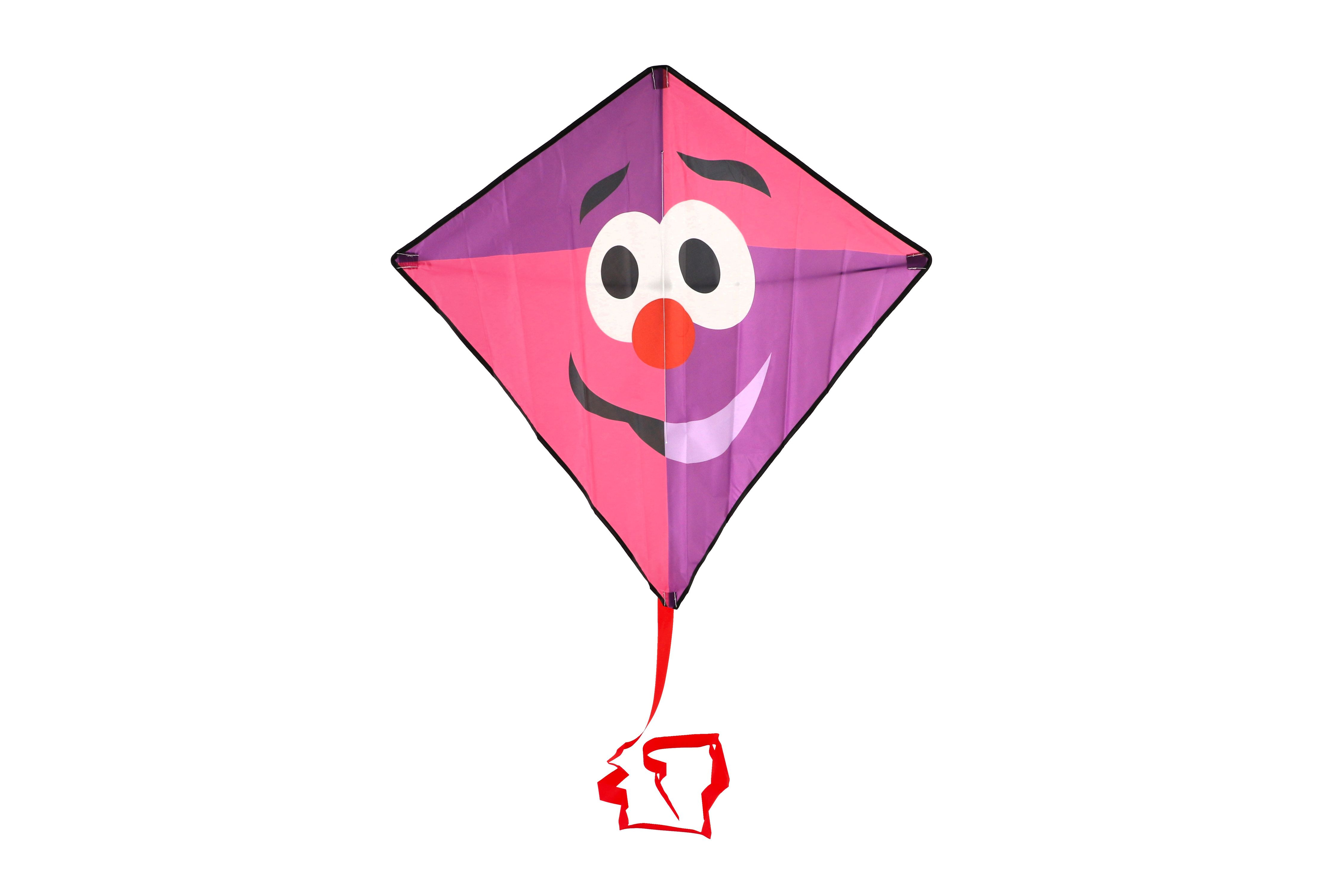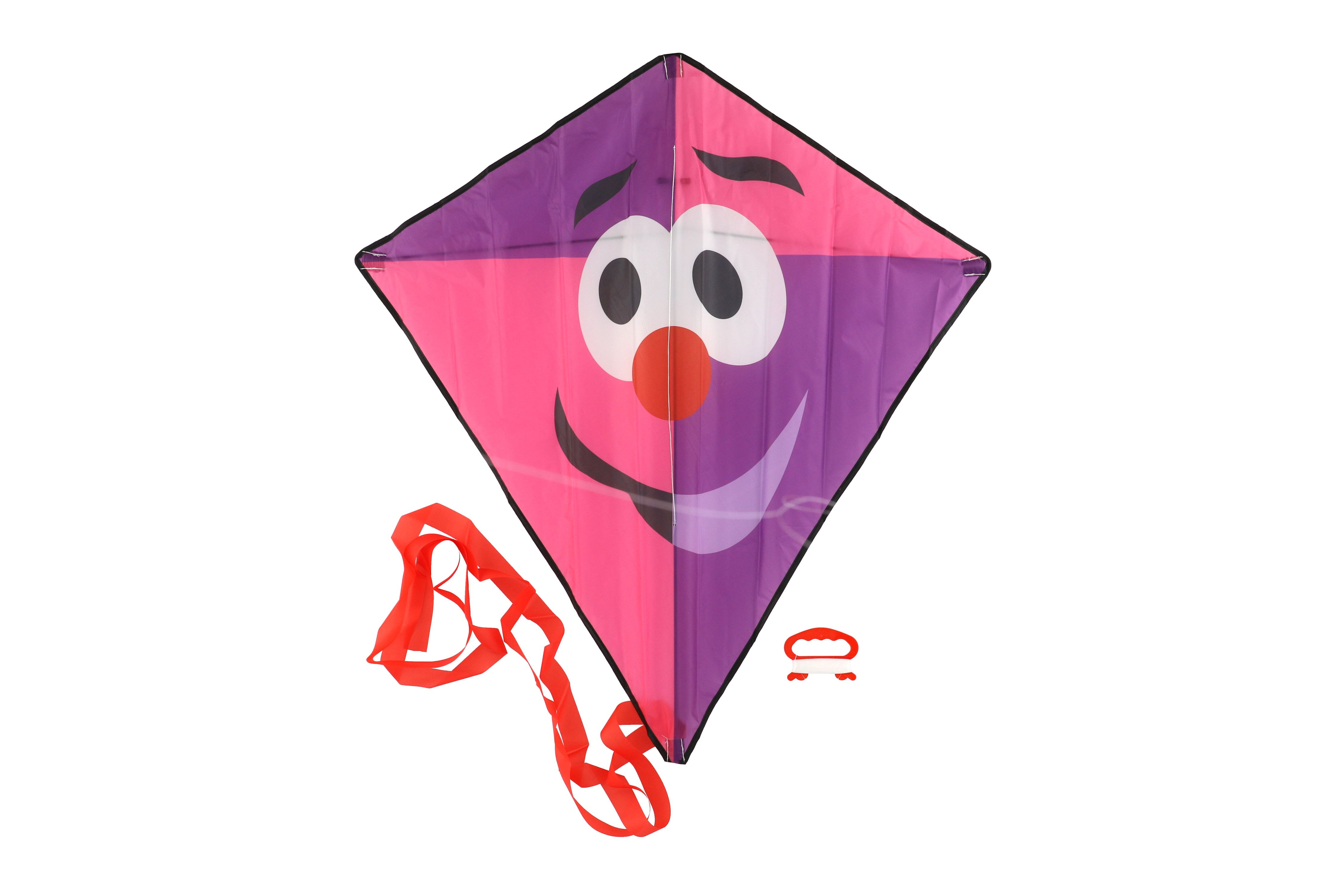 Teddies Flugdrachen Clown Nylon 78x86cm pink-lila im Stoffbeutel 11x90x2cm