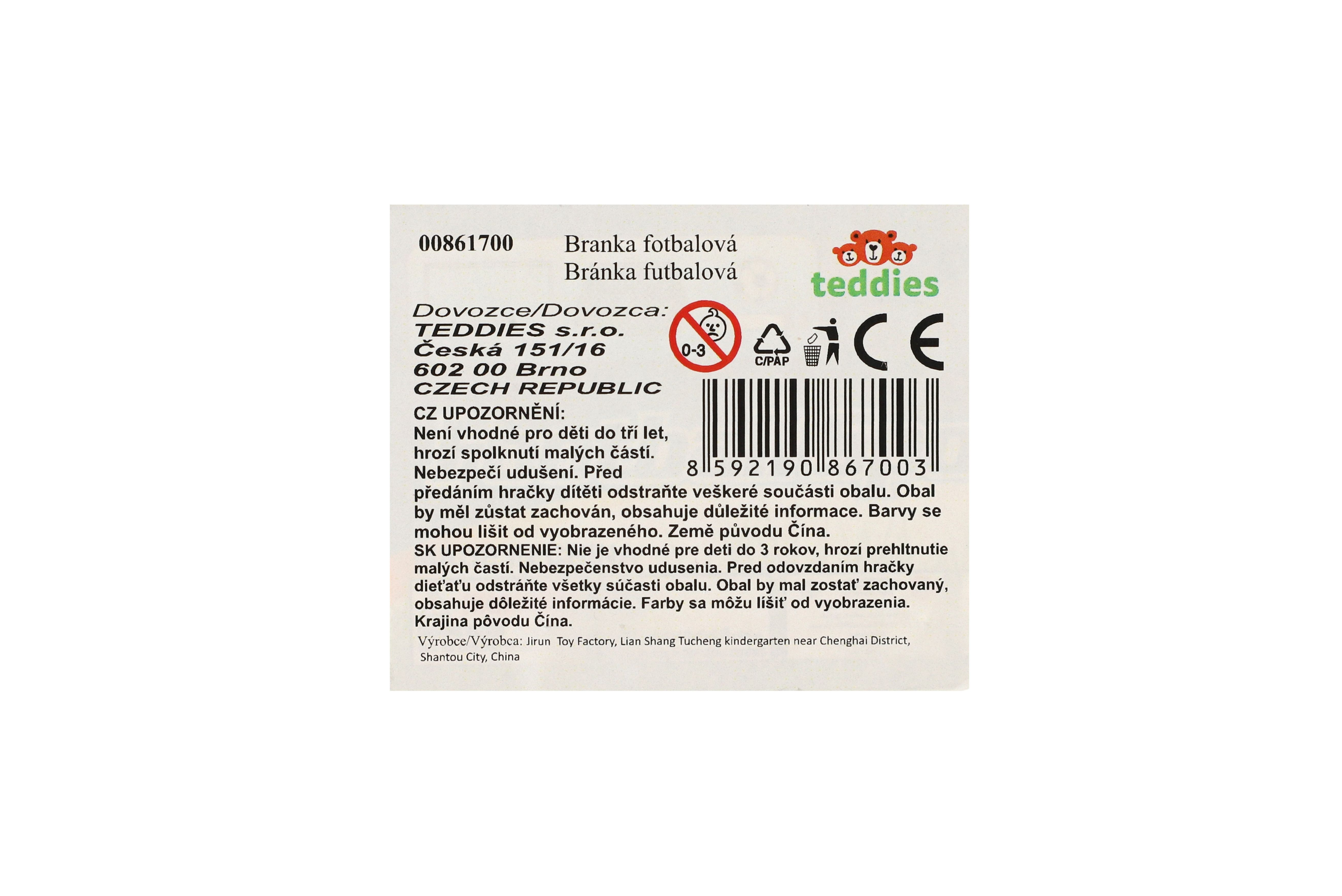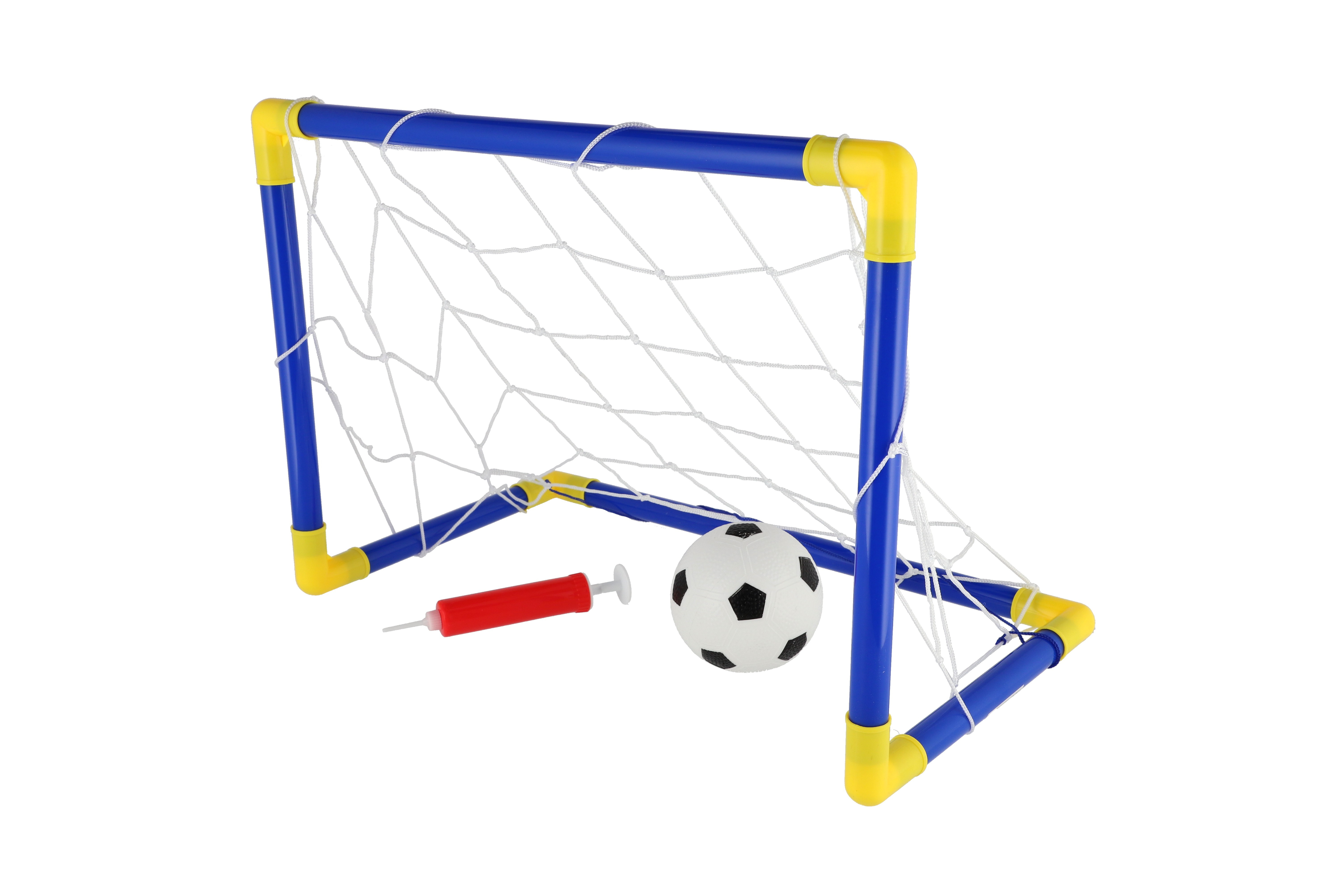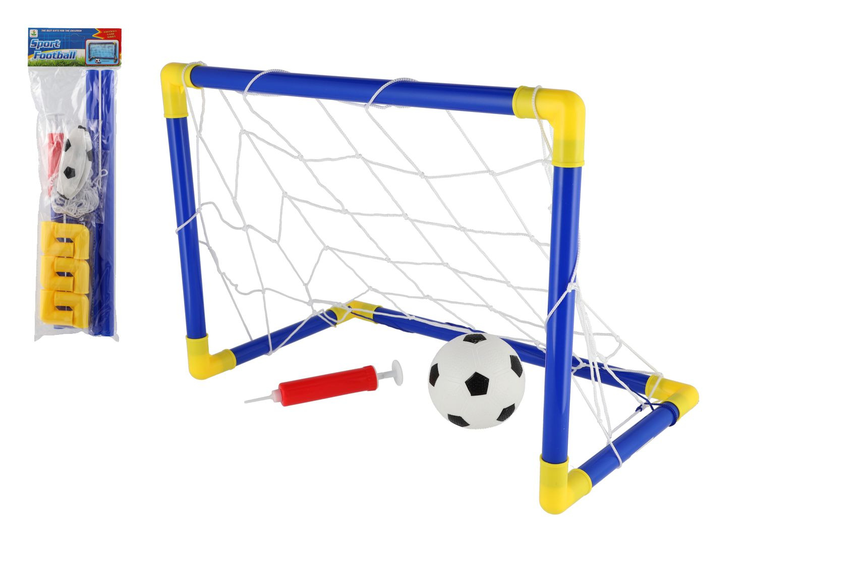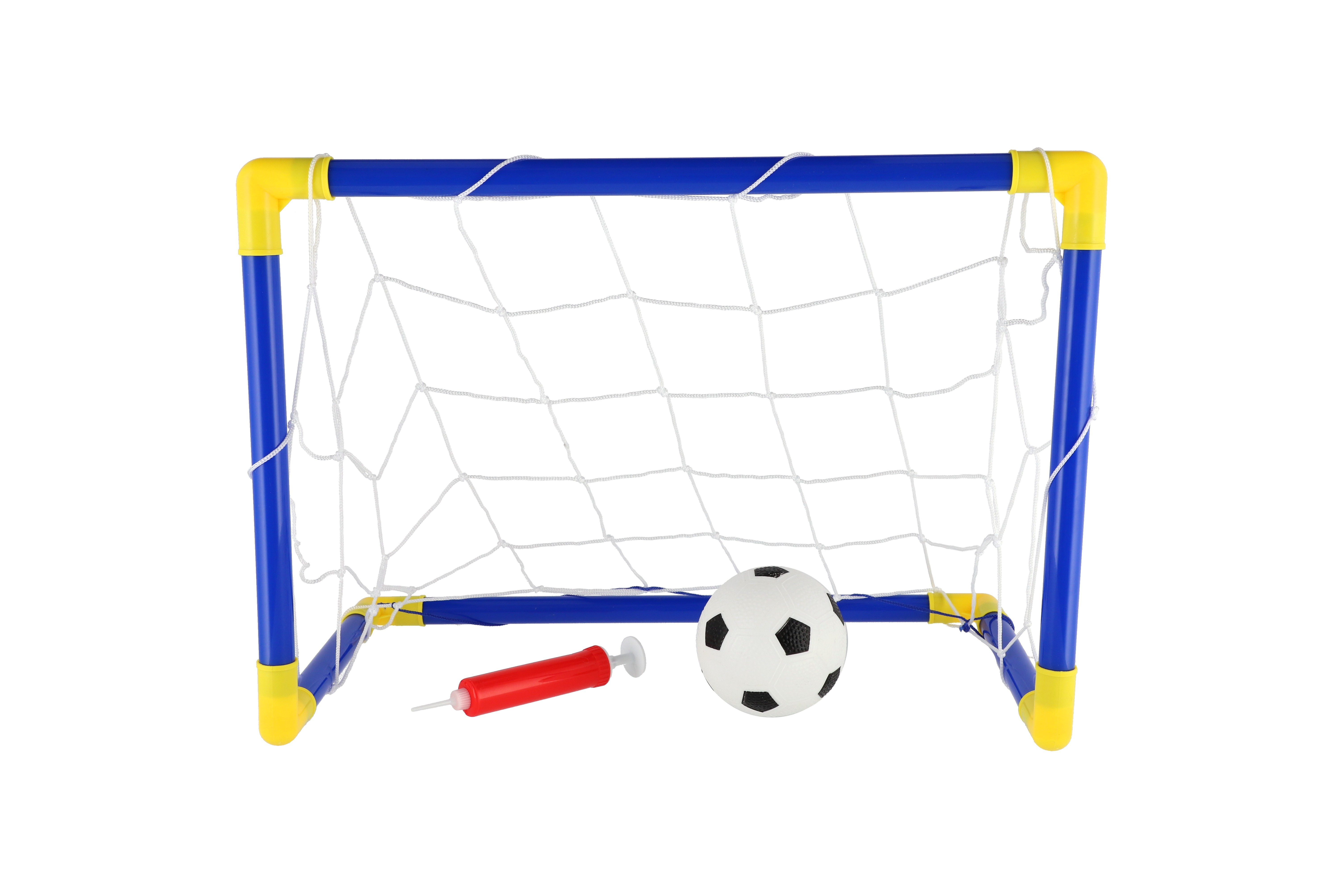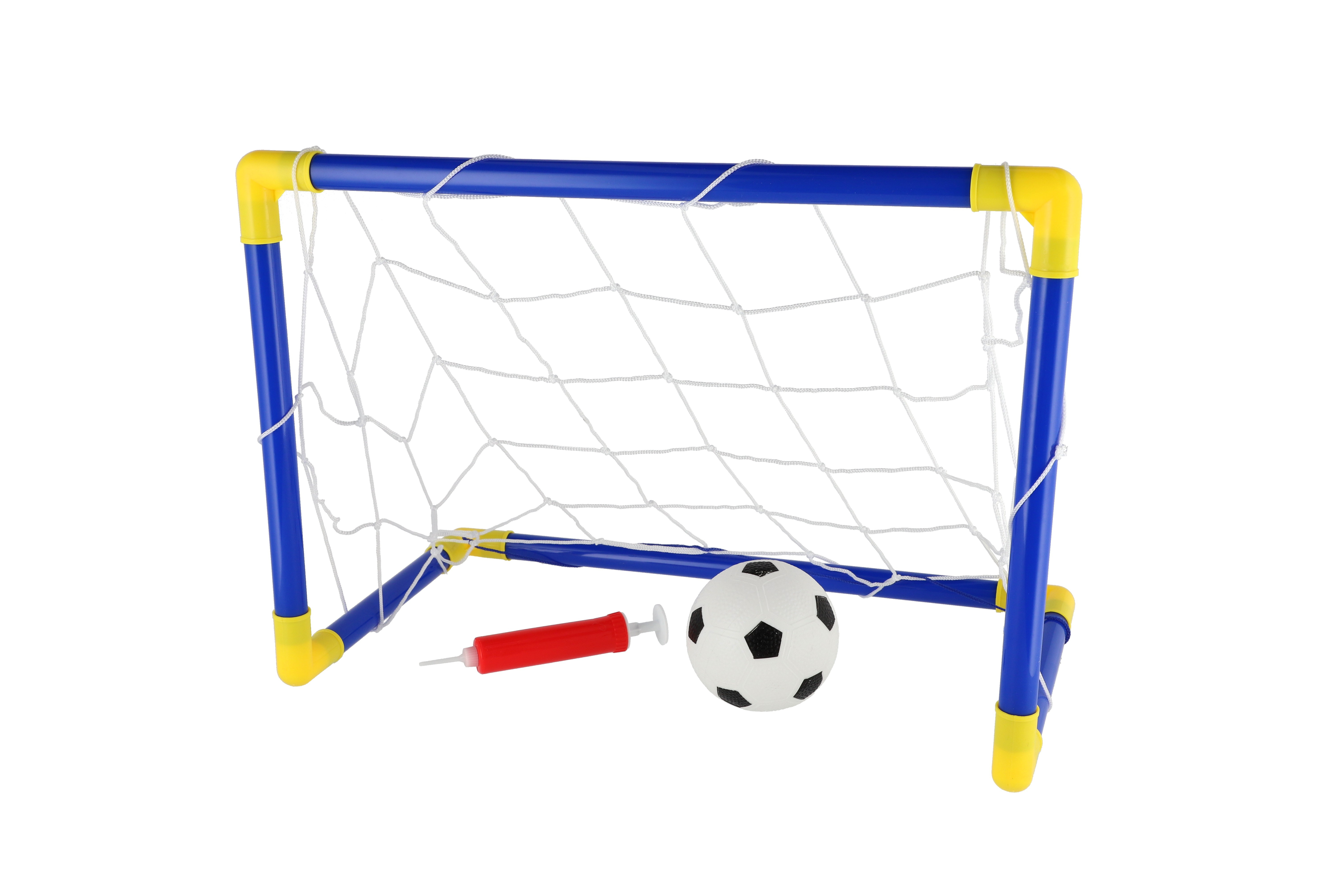 Beschreibung Teddies Fußballtor aus Kunststoff 44x31cm mit Ball und Pumpe im Beutel 14x46x4cm