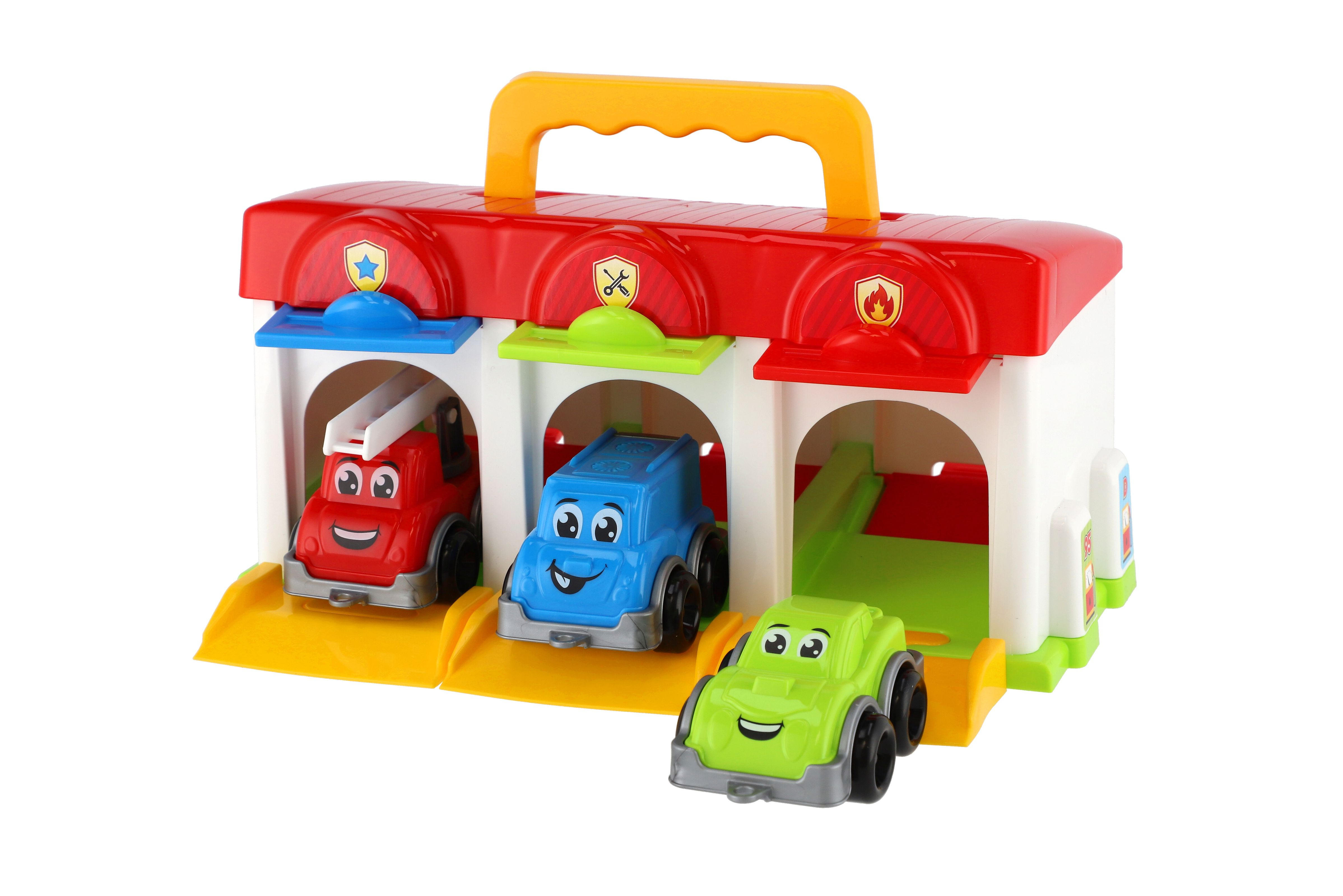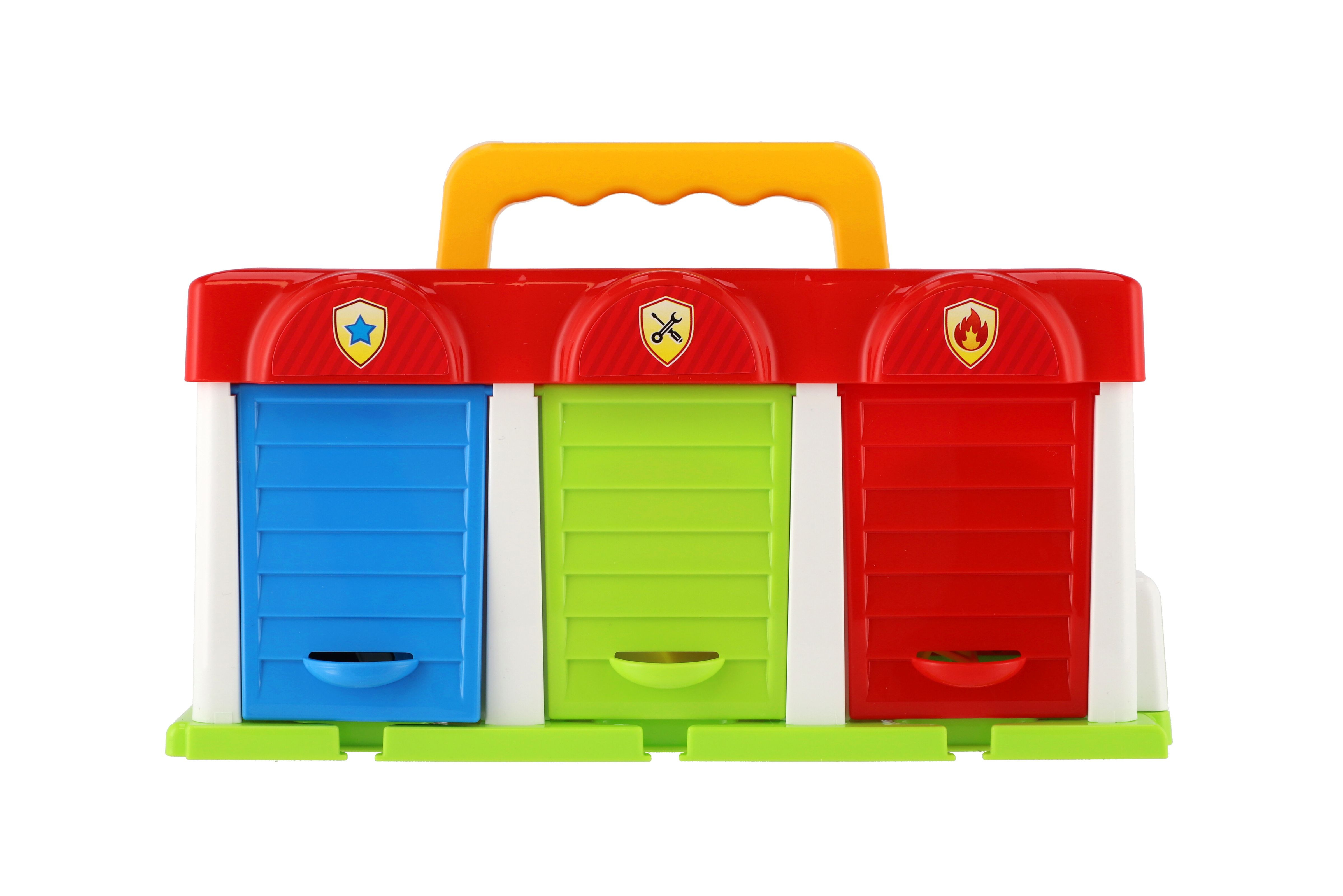 Müssen Sie Ihre Spielzeugautos griffbereit und sicher aufbewahren? Dann ist diese Garage mit Spielzeugautos und praktischem Tragegriff genau das Richtige! Unter drei Türen sind drei Autos versteckt – ein Feuerwehrauto, ein Personenwagen und ein Lieferwagen. In der Garage finden Sie einen Bereich, der das Ein- und Ausfahren der Autos zu Ihrem Stellplatz erleichtert. Mit diesen Plastikautos mit Garage werden Sie jede Menge Spaß haben! Kartonmaße: 27 x 14 x 15 cm. Geeignet für Kinder ab 3 Jahren.