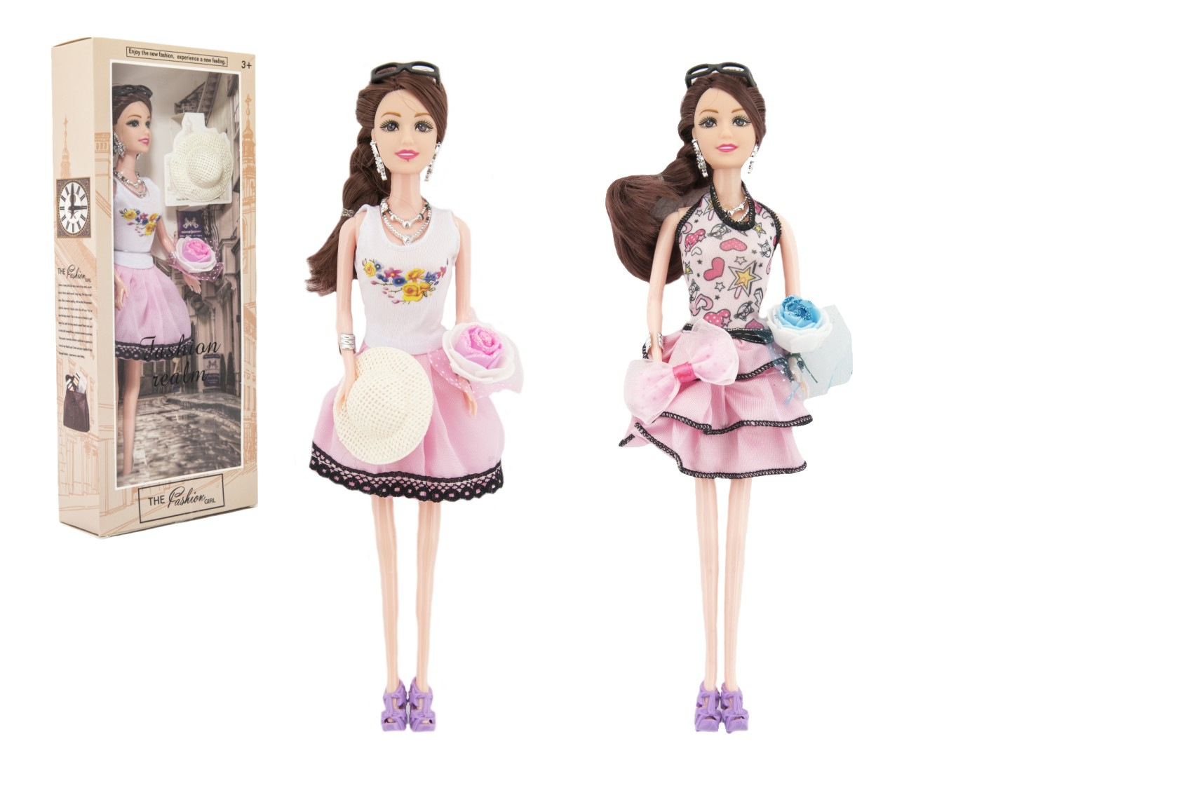 Teddies Puppe Model Plastik 30 cm mit Kleidung und Zubehör in Schachtel 32x33x6cm