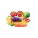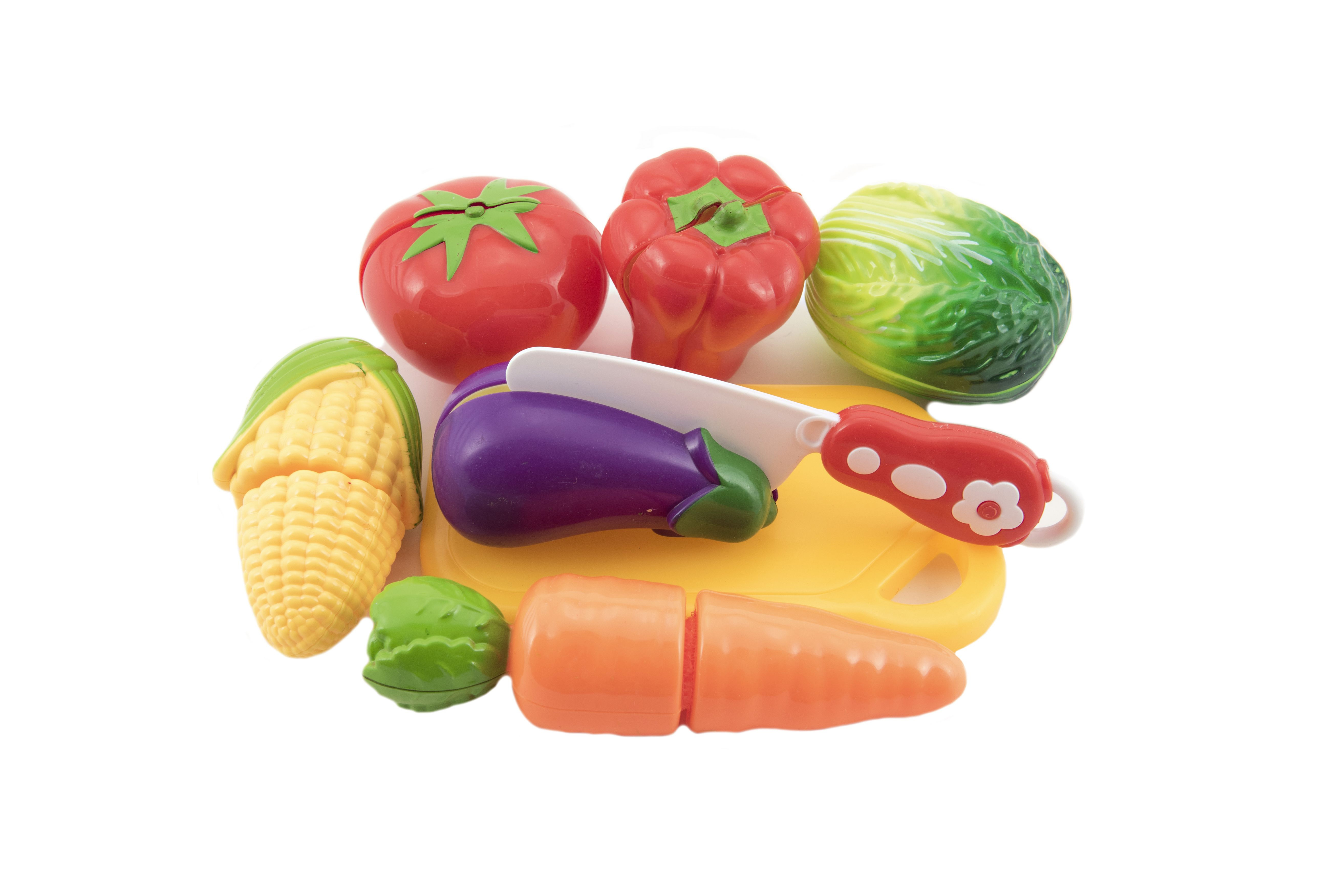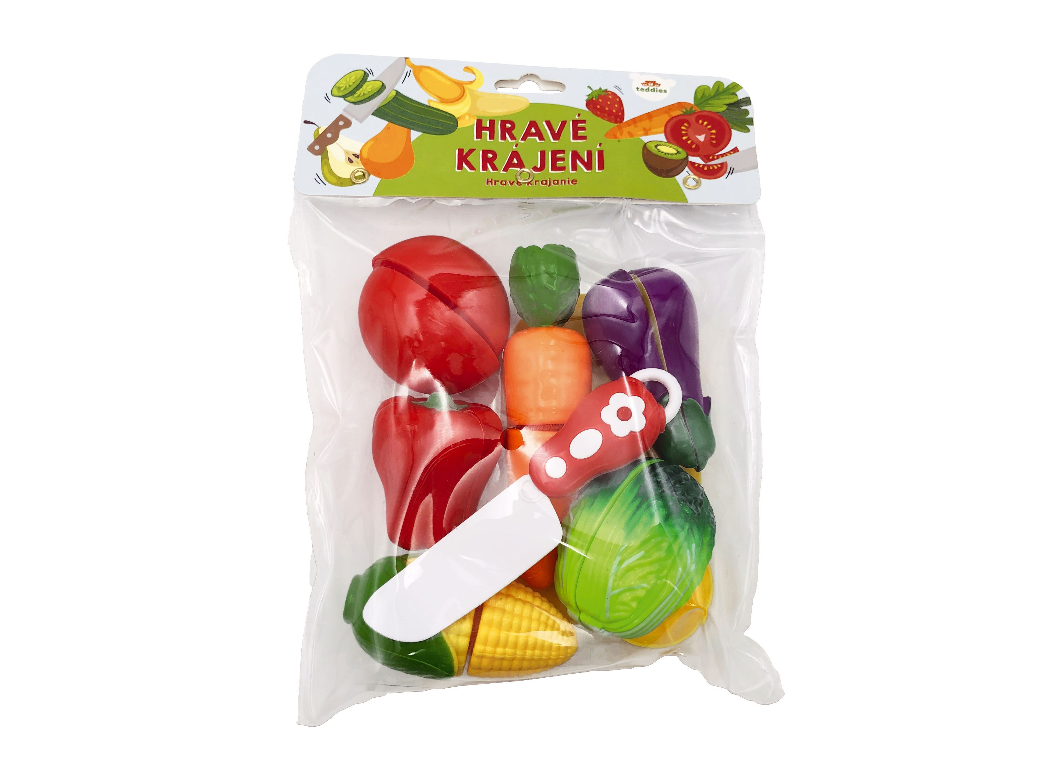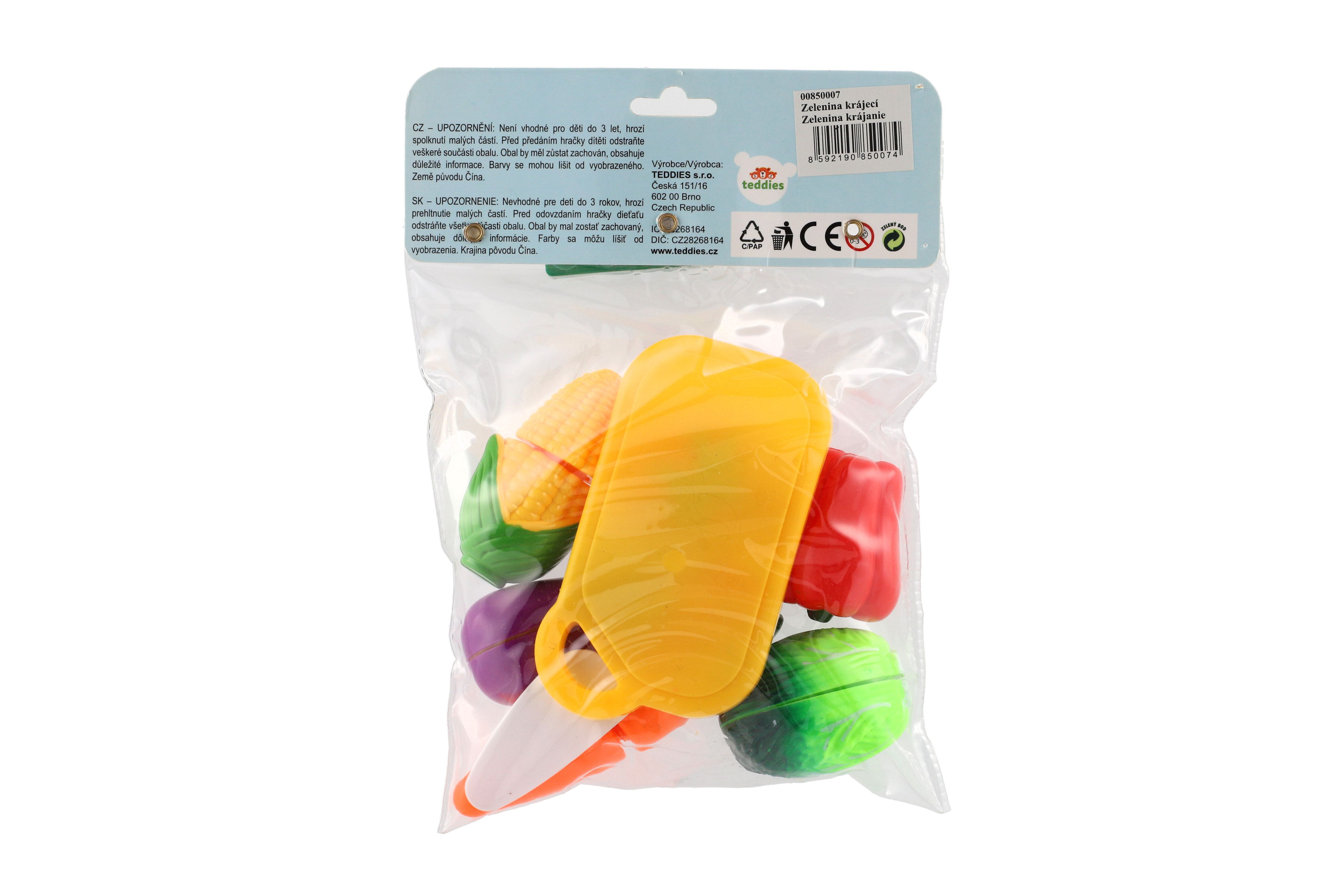Beschreibung Teddies Gemüse zum Schneiden aus Kunststoff mit Schneidebrett 13,5x8cm mit Messer im Beutel 18x26x5cm