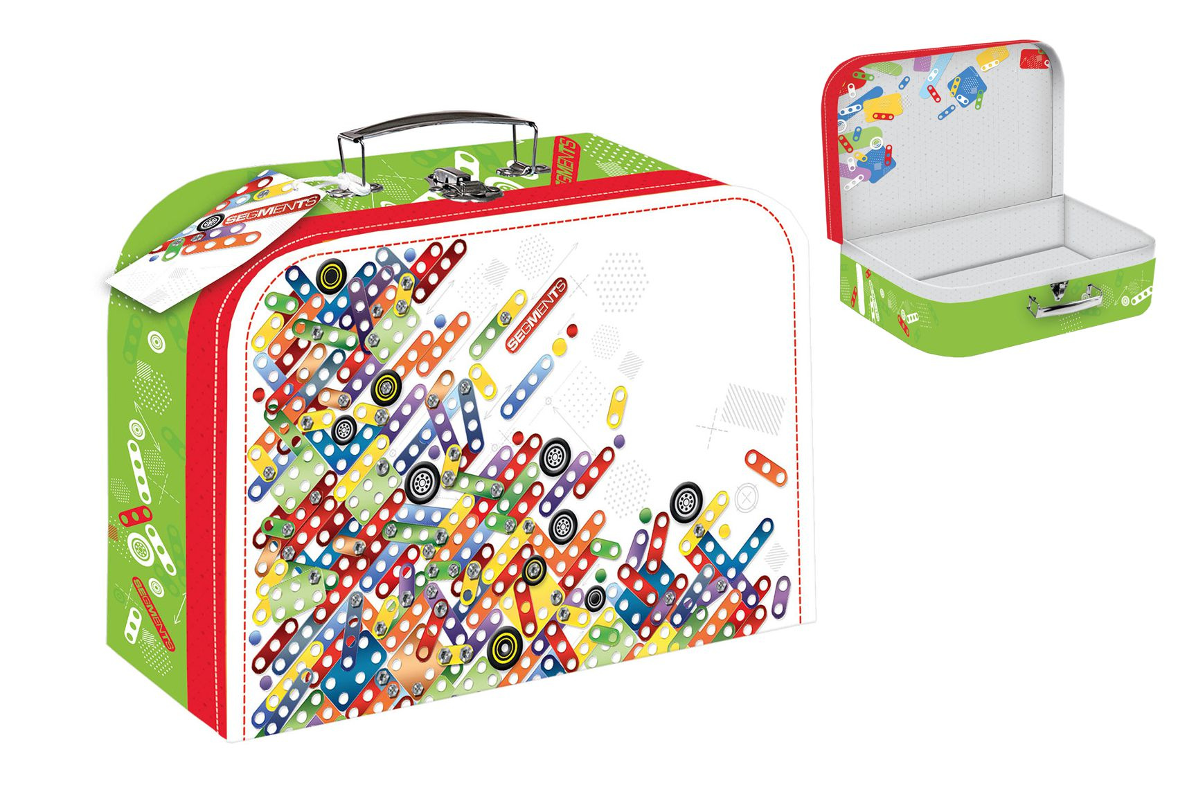Papírový školní kufřík, šířka 25 cm, kovová rukojeť. Ideální pro uložení výtvarných potřeb, školních