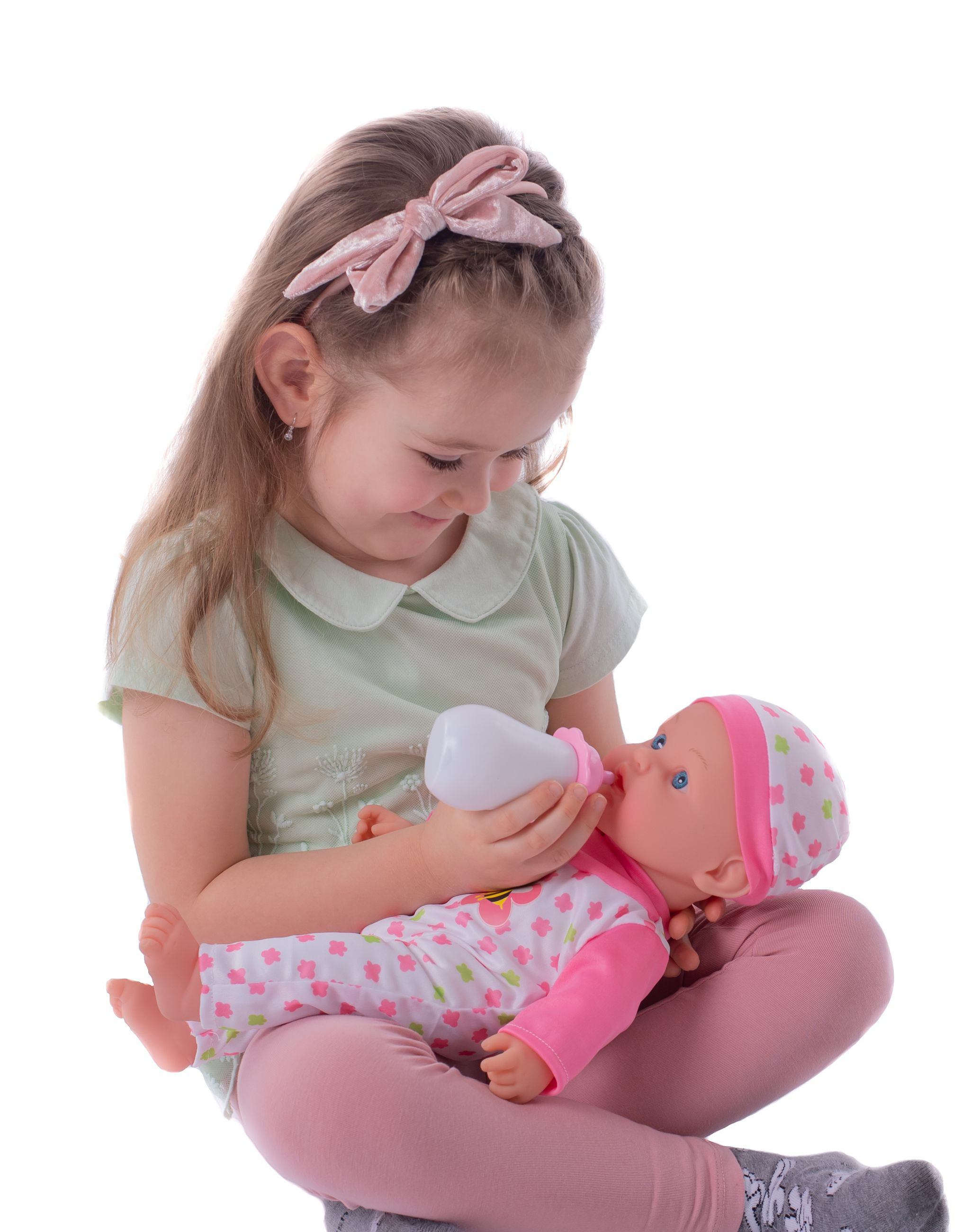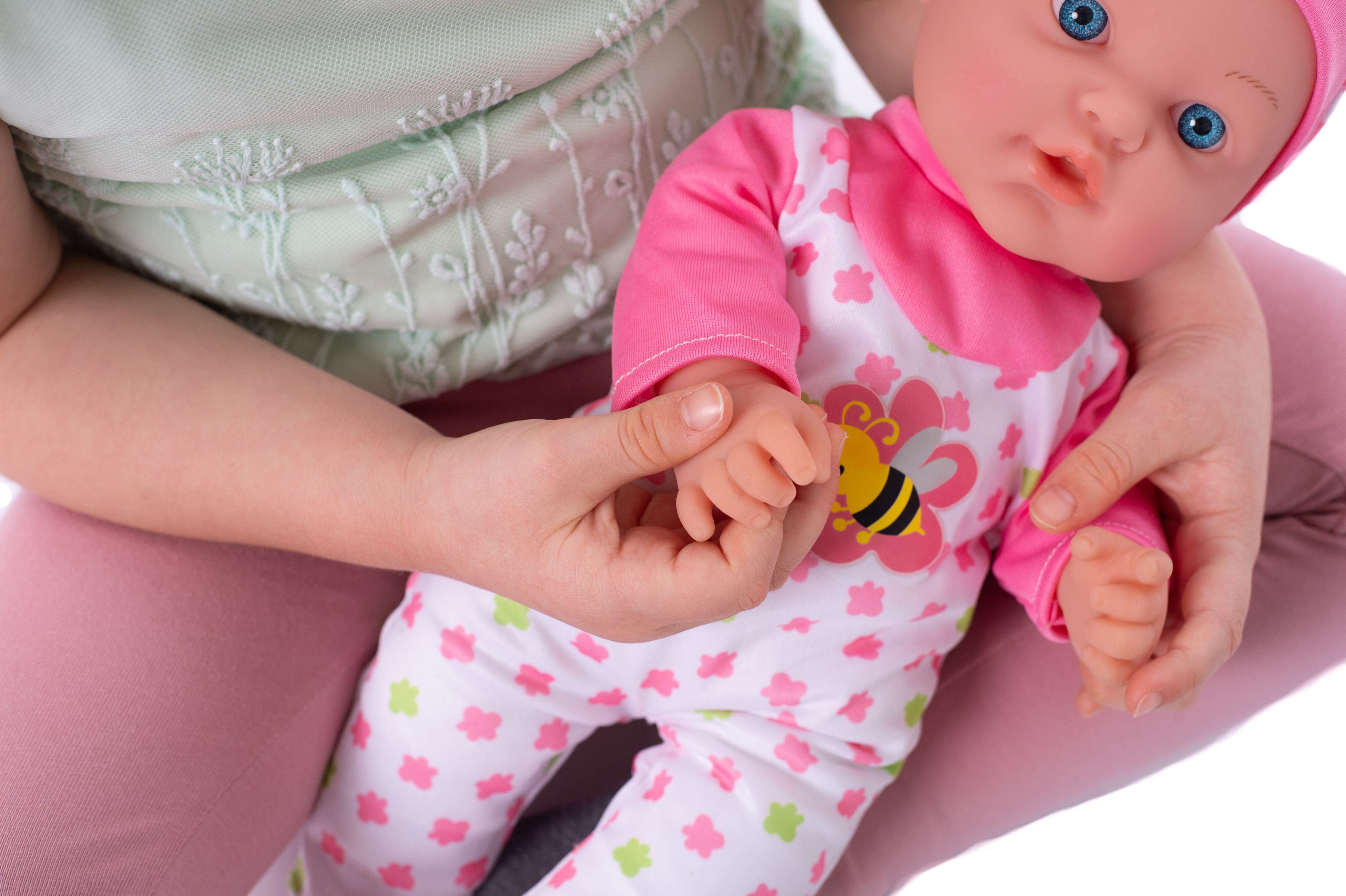 Nemocné miminko, které potřebuje pomoc od malých maminek či budoucích lékařek. K tomu jsou potřeba zdravotnické potřeby, které sada obsahuje. Panenka má měkké tělo a je se zvukem a světlem. Po stisknutí ručičky jí zčervenají tvářičky a začne kašlat. Přilož stetoskop na srdíčko a uslyšíš jeho tlukot. Po injekci začne miminko plakat. Dej miminku lahvičku do pusinky a poslouchej, jak pije. Uzdrav svoje miminko. Balení obsahuje stetoskop, injekční stříkačku, kukátko do uší, lahvičku, krabičku s nápisem VITAMÍNY a kartu pacienta. Panenka je velikosti 36 cm. Baterie 3x AG13 jsou součástí balení a slouží pouze pro předváděcí účely, doporučujeme baterie vyměnit za nové. Rozměry balení 37 x 31 x 17 cm Vhodné pro děti od 3 let