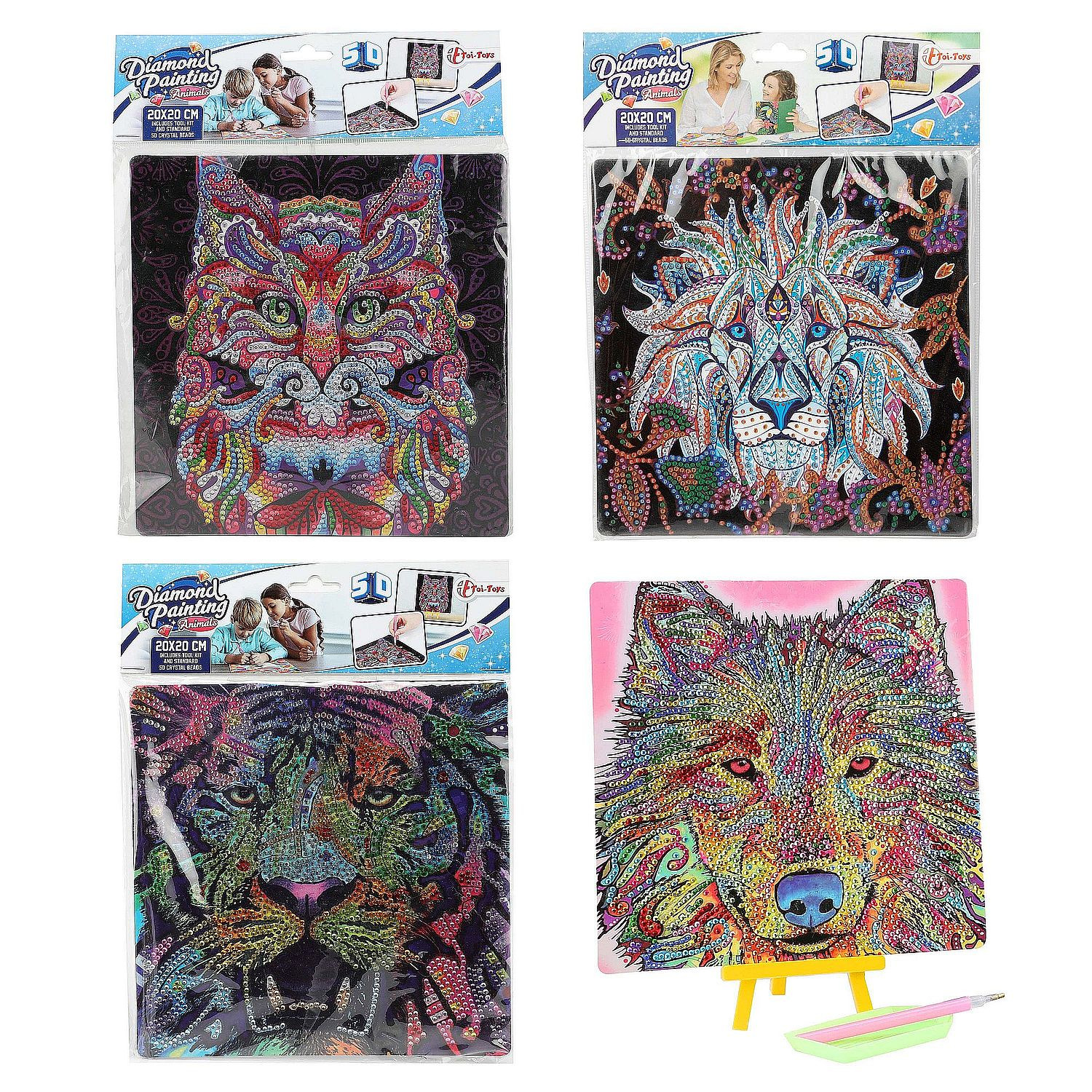 Teddies Kreativ-Set Diamantmalerei Tiere 20x20cm mit selbstklebenden Diamanten 4 Arten auf Karte 21x26cm
