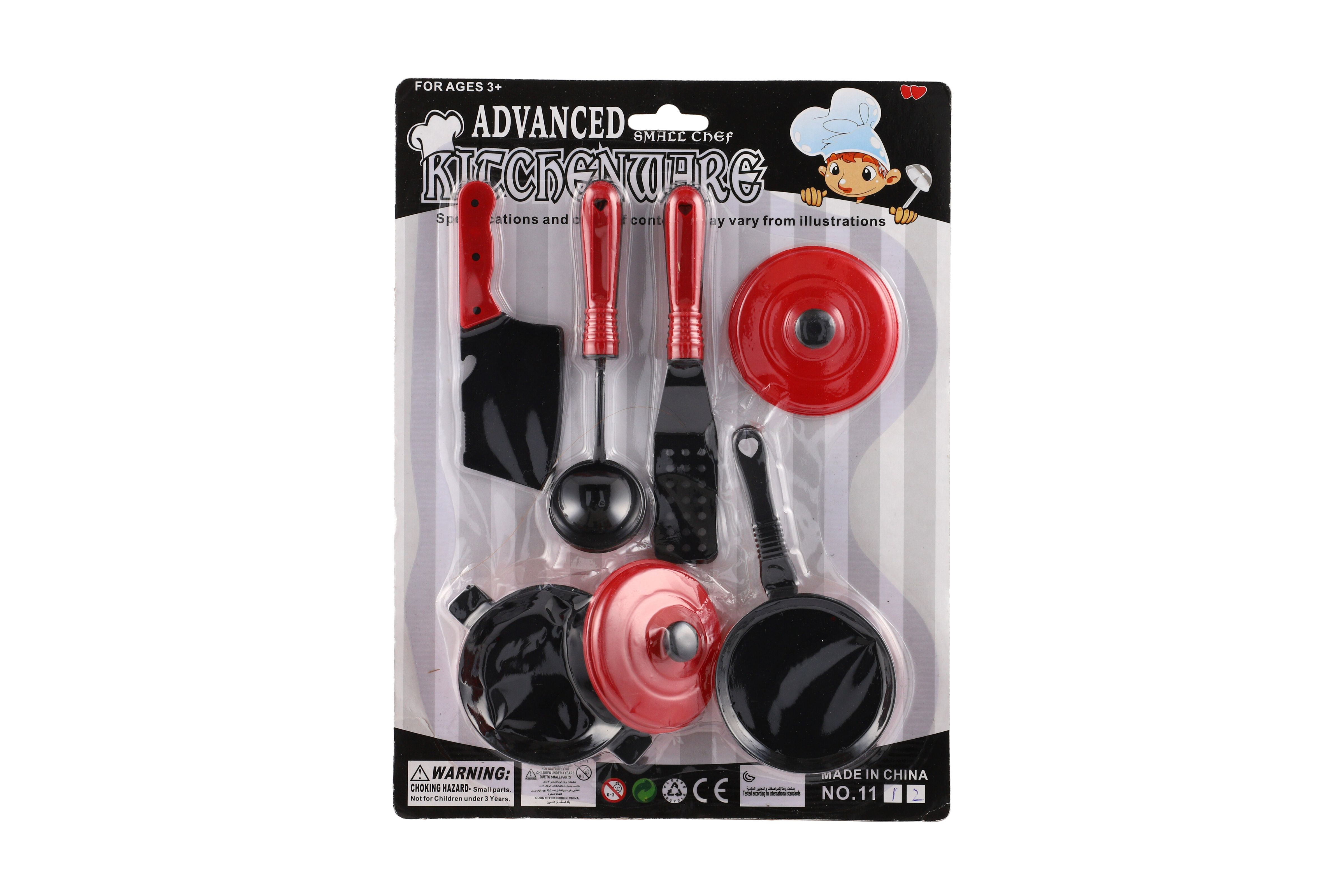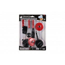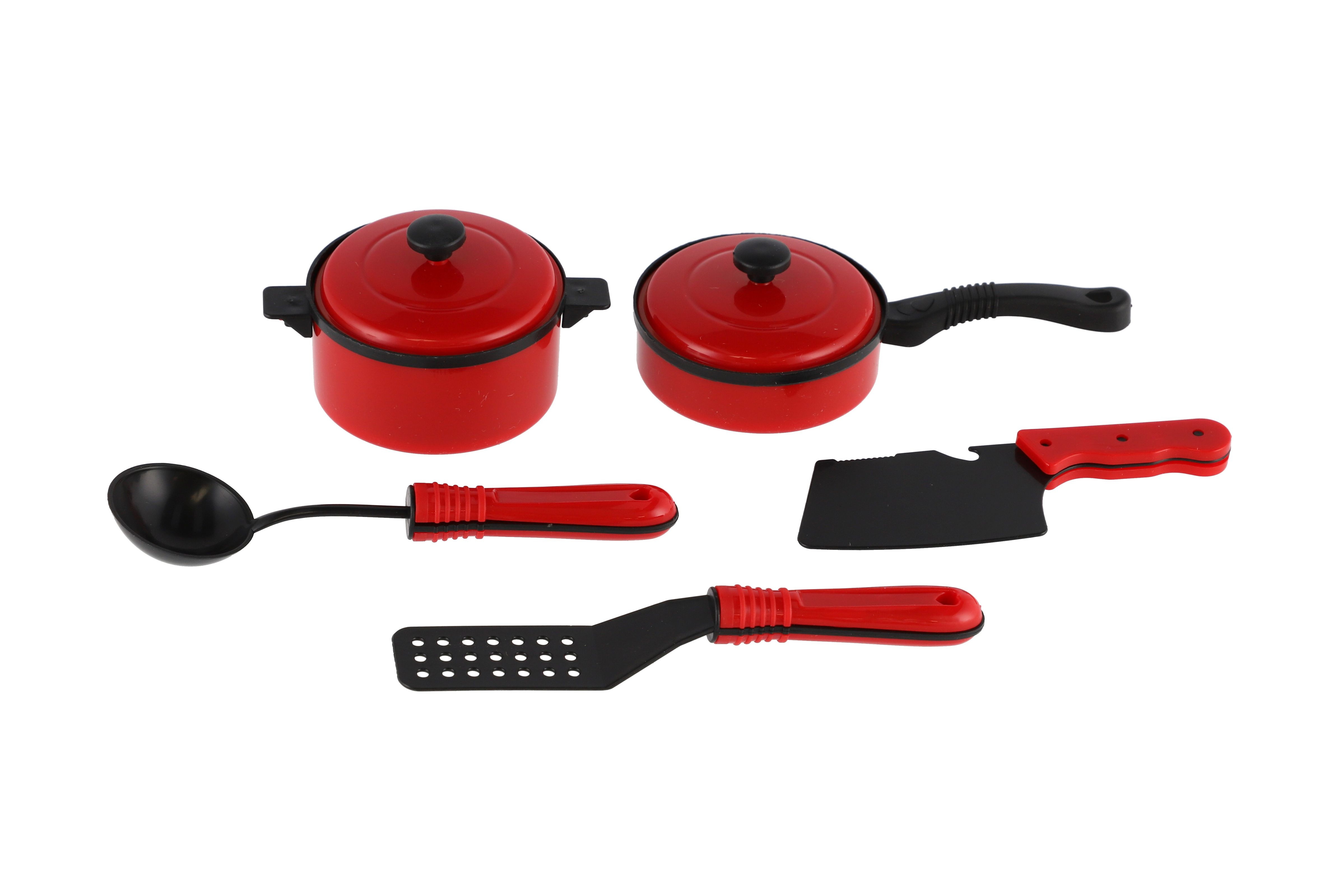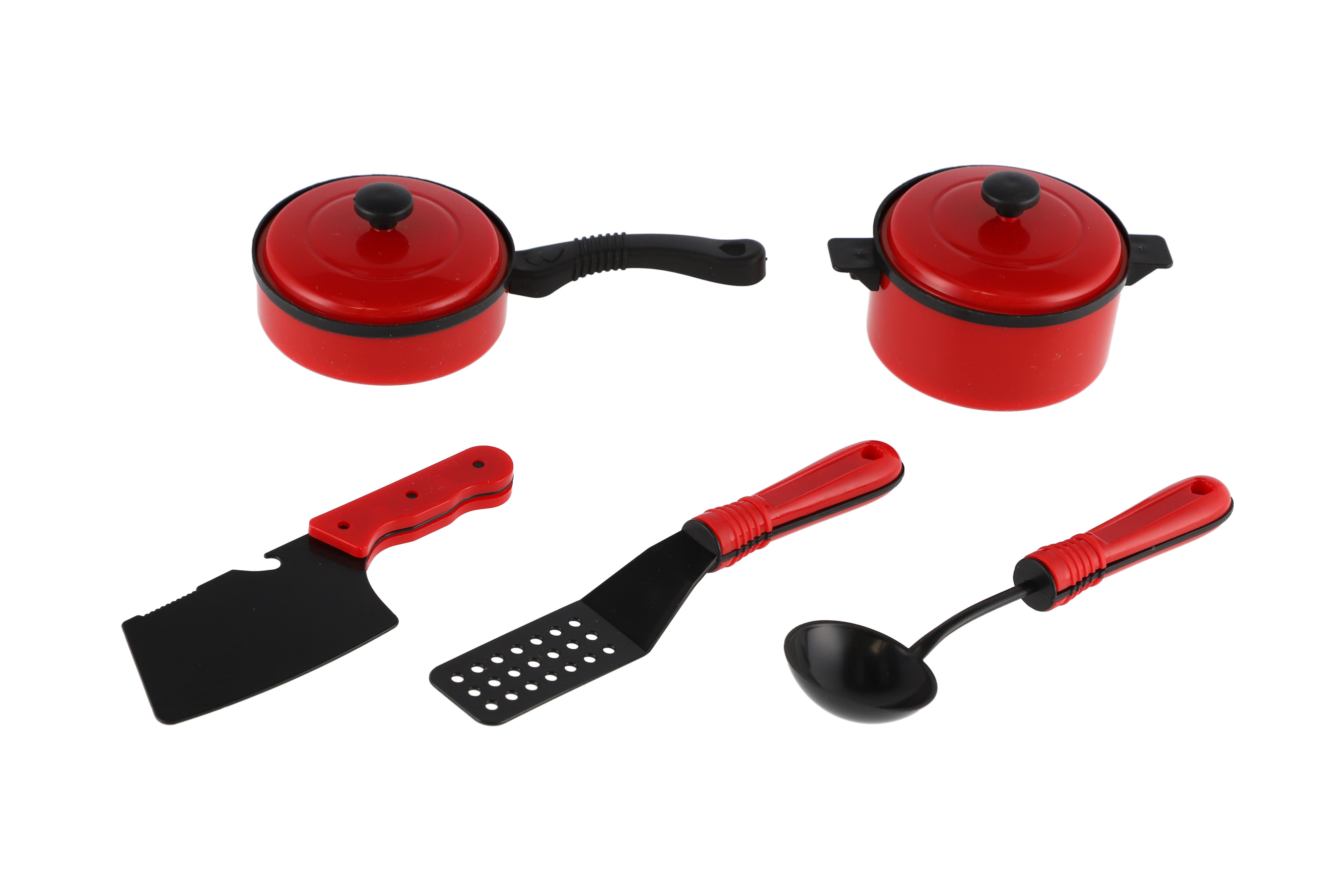 Sada kuchyňského nádobí, které každé dítko potřebuje mít v kuchyňce k přípravě pokrmů pro celou rodinu. Sada obsahuje 7 ks černo-červeného nádobí. Rozměr balení: 21 x 28 cm Vhodné pro děti od 3 let