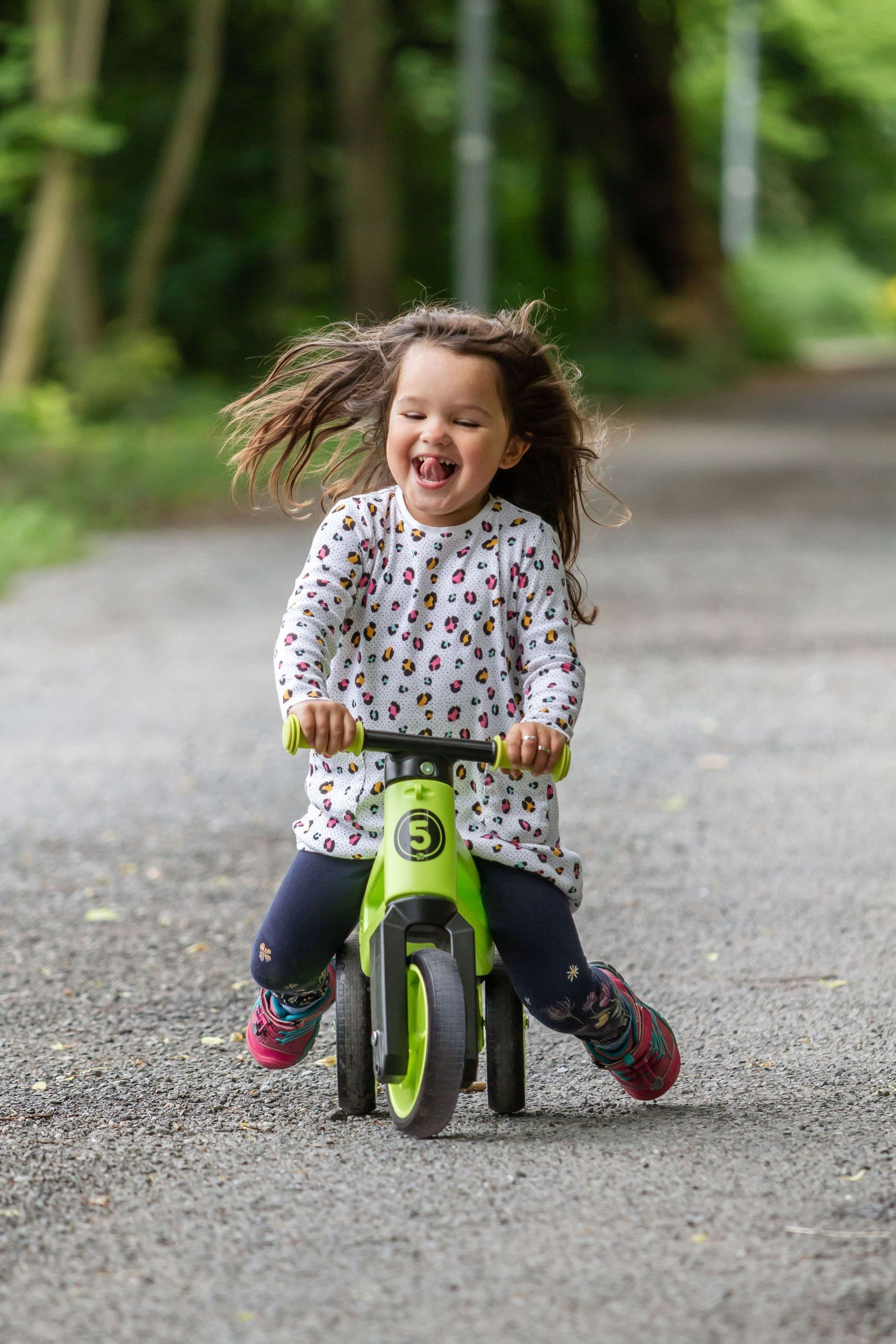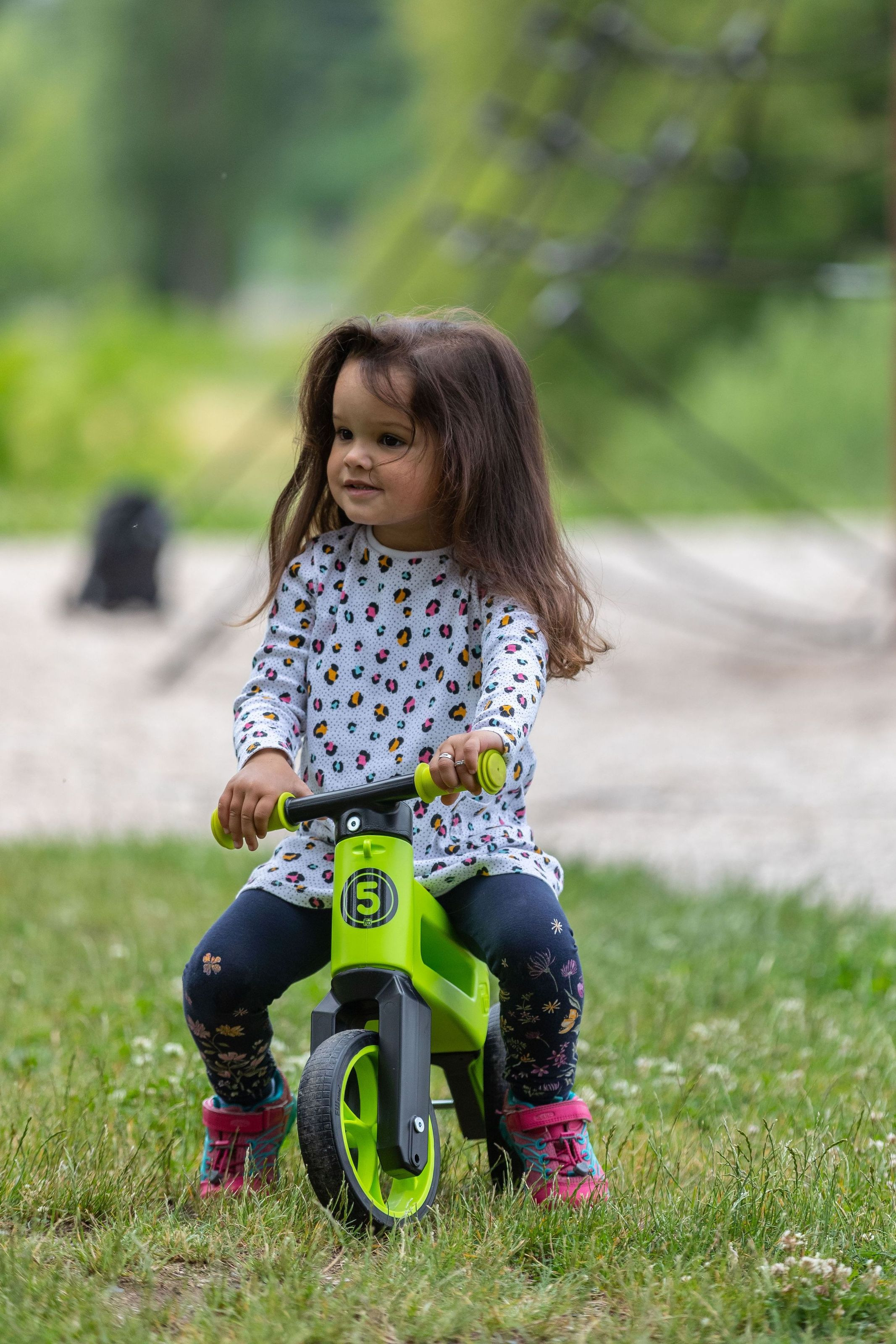 FUNNY WHEELS Rider SuperSport 2-in-1-Laufrad – verwandelt ein Dreirad ganz einfach in ein zweirädriges Laufrad. Das Kind muss sich nicht an ein neues Spielzeug gewöhnen, sondern hat weiterhin die Kontrolle über „seine Maschine“, kann also ohne Angst und entspannt mit der Veränderung umgehen und das Gleichgewicht lernen. Höhenverstellbar – 2 Einstellpositionen an beiden Achsen. Für kleinere und größere Kinder. Designerräder mit weichen REIFEN, die für eine ruhige Fahrt sorgen, keine Spuren auf dem Boden im Inneren hinterlassen und nicht durchstochen werden können (sie sind luftlos). Gurt zum TRAGEN des Laufrads. Sie hängen das Laufrad einfach über die Schulter und haben trotzdem beide Hände frei. Praktisch, wenn Sie das Laufrad ohne den kleinen Fahrer bewegen müssen. Lenkersperre – die Gabel hat einen begrenzten Drehbereich, der Lenker lässt sich nicht drehen. Der Verschluss verhindert Verletzungen am Babybauch. Der Lenker ist mit farbenfrohen, superweichen Griffen ausgestattet, die an den Enden verbreitert sind, um Kinderhände vor Verletzungen zu schützen. In Zusammenarbeit mit Orthopäden entwickelt. Hergestellt in der Tschechischen Republik aus langlebigem und unbedenklichem Kunststoff mit glatten Fugen. Zertifiziert in der Tschechischen Republik. Altersempfehlung: ab 18 Monaten (bzw. ab 80 cm Körpergröße) Belastbarkeit: 25 kg Sattelhöhe: 28/30 cm Lenkerbreite: 30 cm Hinterradabstand: 20 cm Gewicht Laufrad: 1,9 kg Verpackungsmaße 56 x 27 x 14,5 cm.