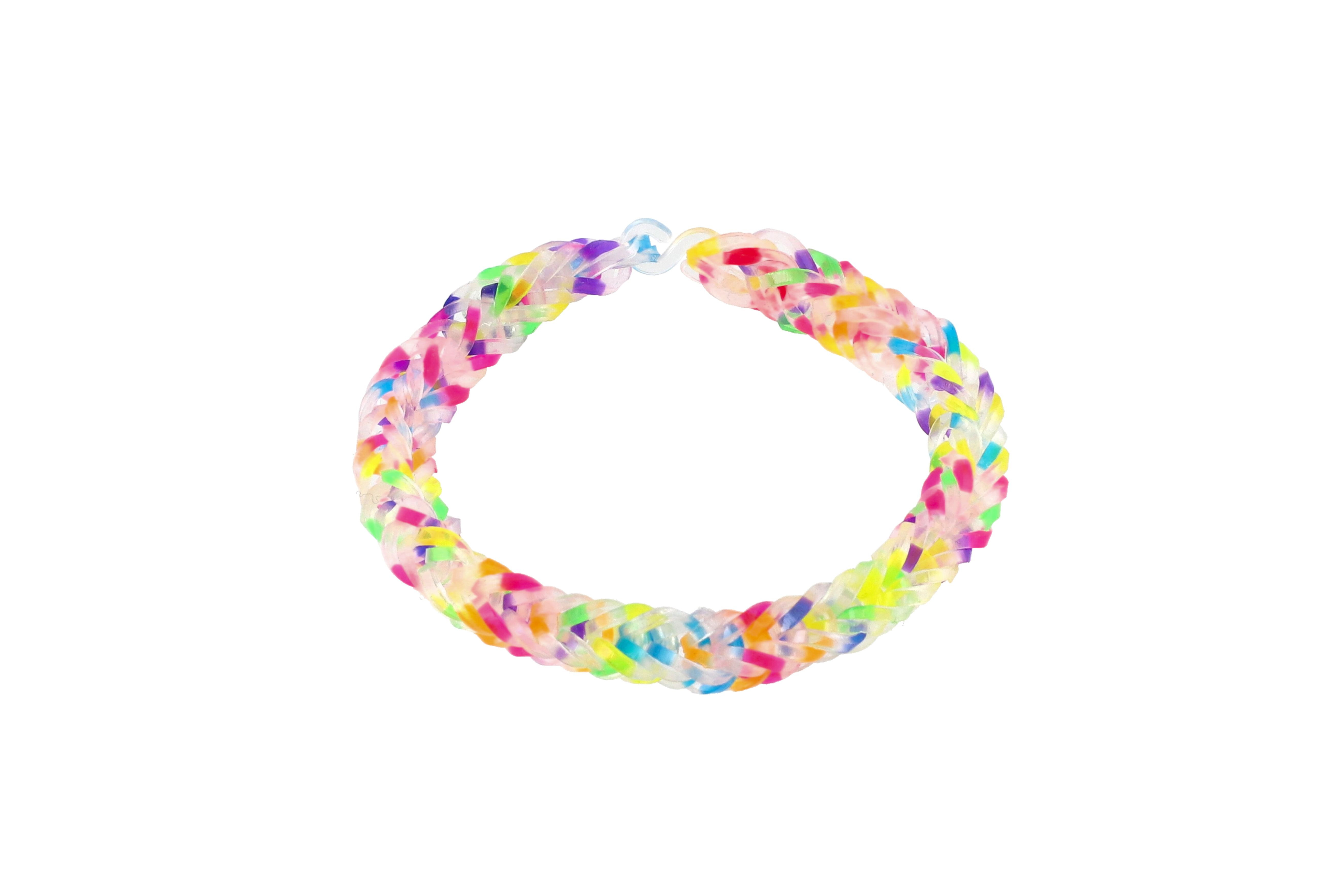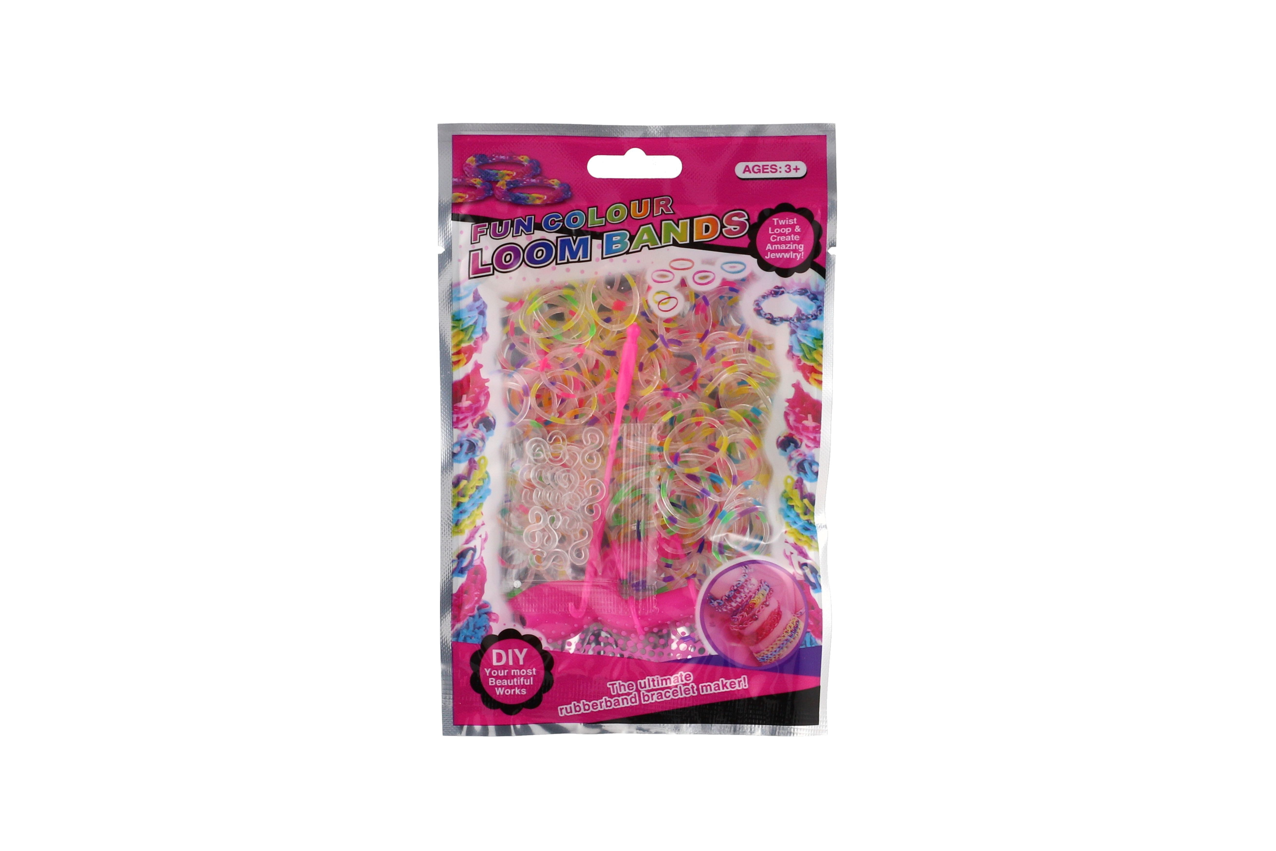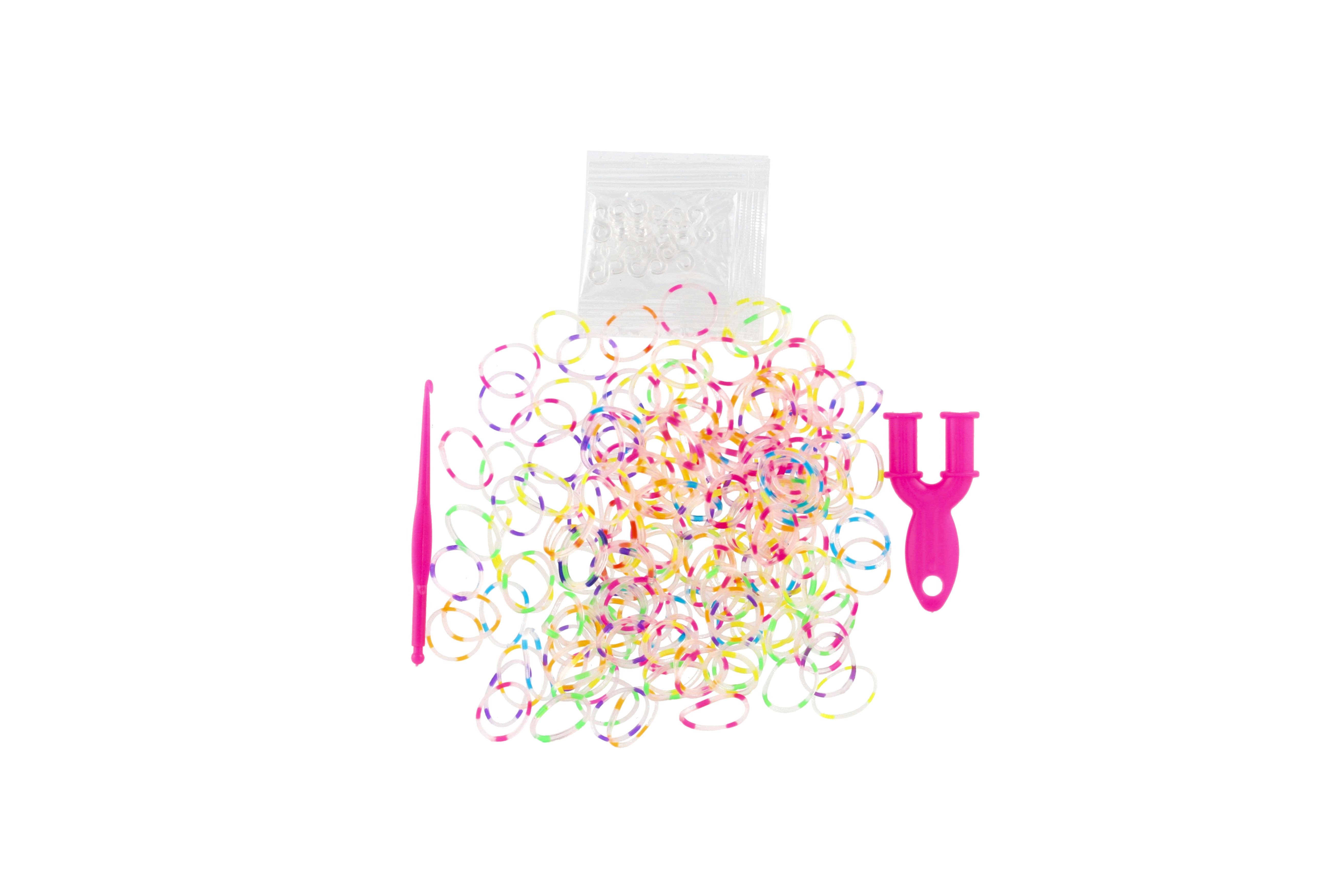 Teddies Mache dein eigenes Armband - 200 Regenbogen-Gummibänder + Werkzeug im Beutel 10x16cm