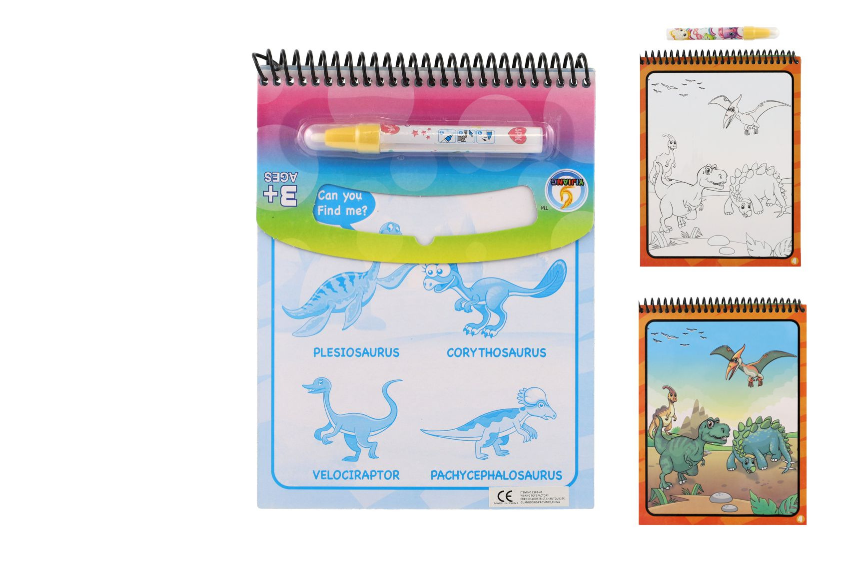 Teddies Magisches Malen mit Wasser/Block mit Stift Dinosaurier, 4 Blätter im Beutel 17x23x2cm
