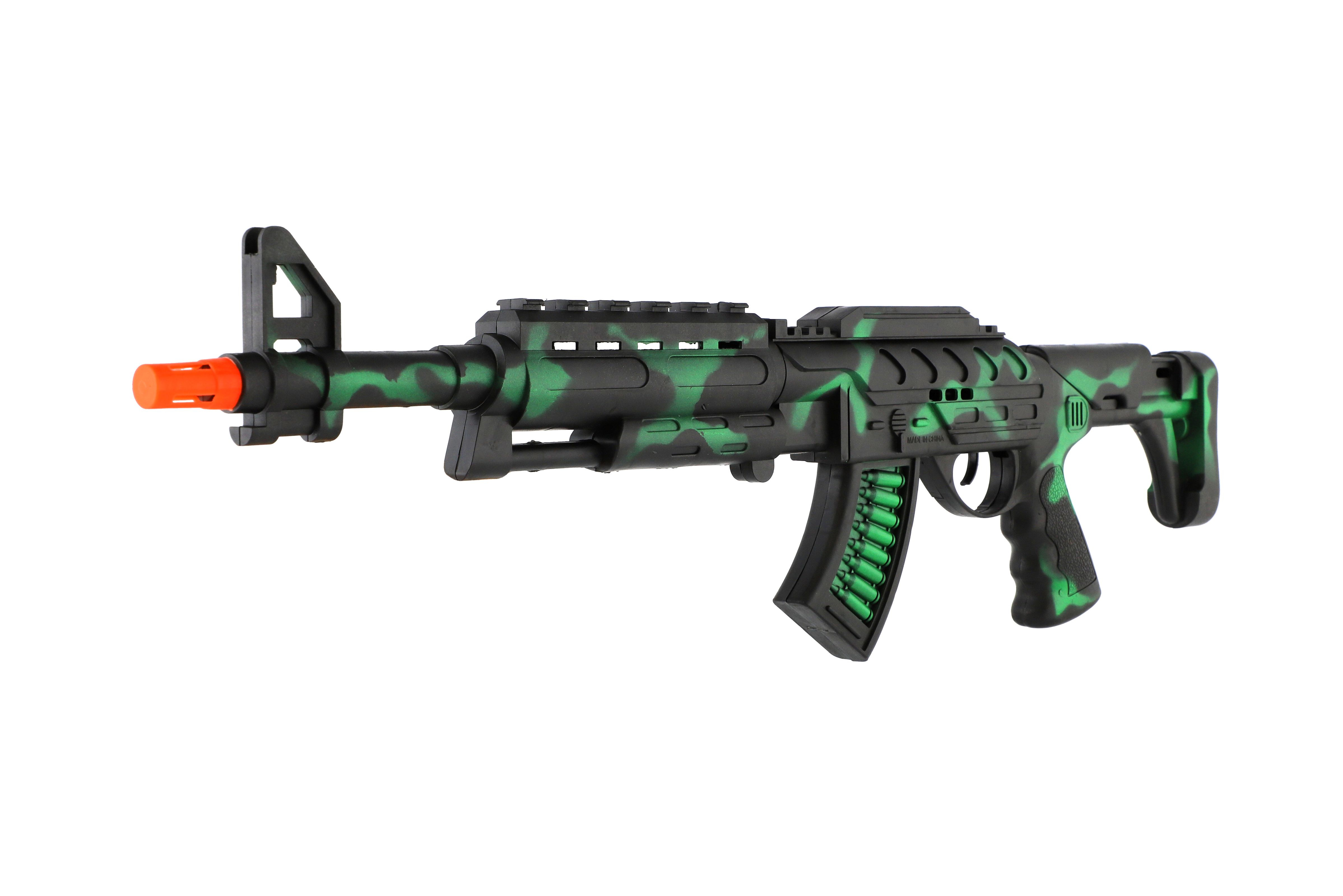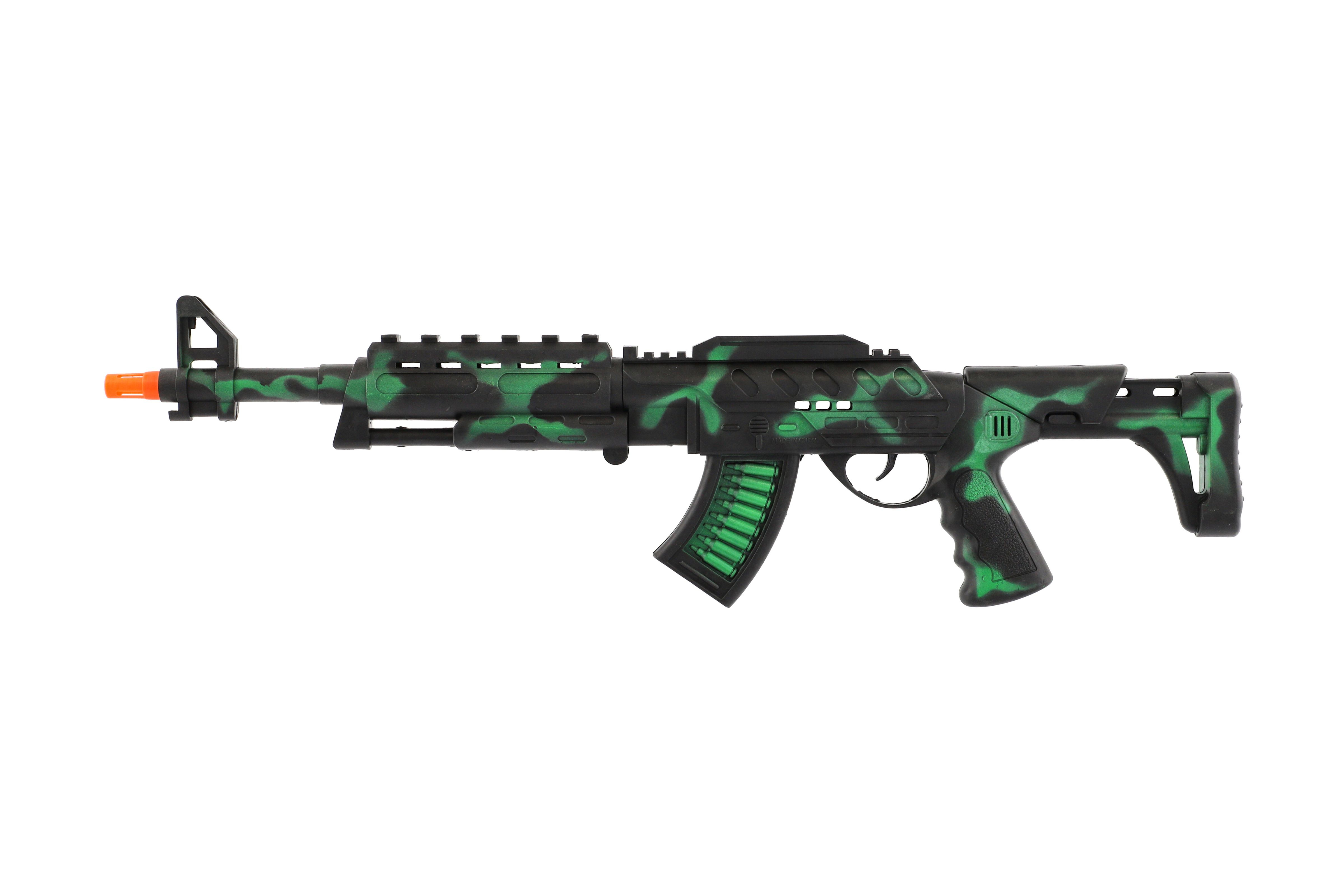 Ein schönes Modell einer militärischen Maschinenpistole wird jeden Jungen begeistern, der Waffen mag. Diese realistische Maschinenpistole funkelt und wird durch ein Schwungrad angetrieben. Ziehst du in die Schlacht? Diese Waffe können Sie nicht verfehlen! Pistolengröße: 62 cm Verpackungsgröße: 18 x 67 cm Geeignet für Kinder ab 3 Jahren
