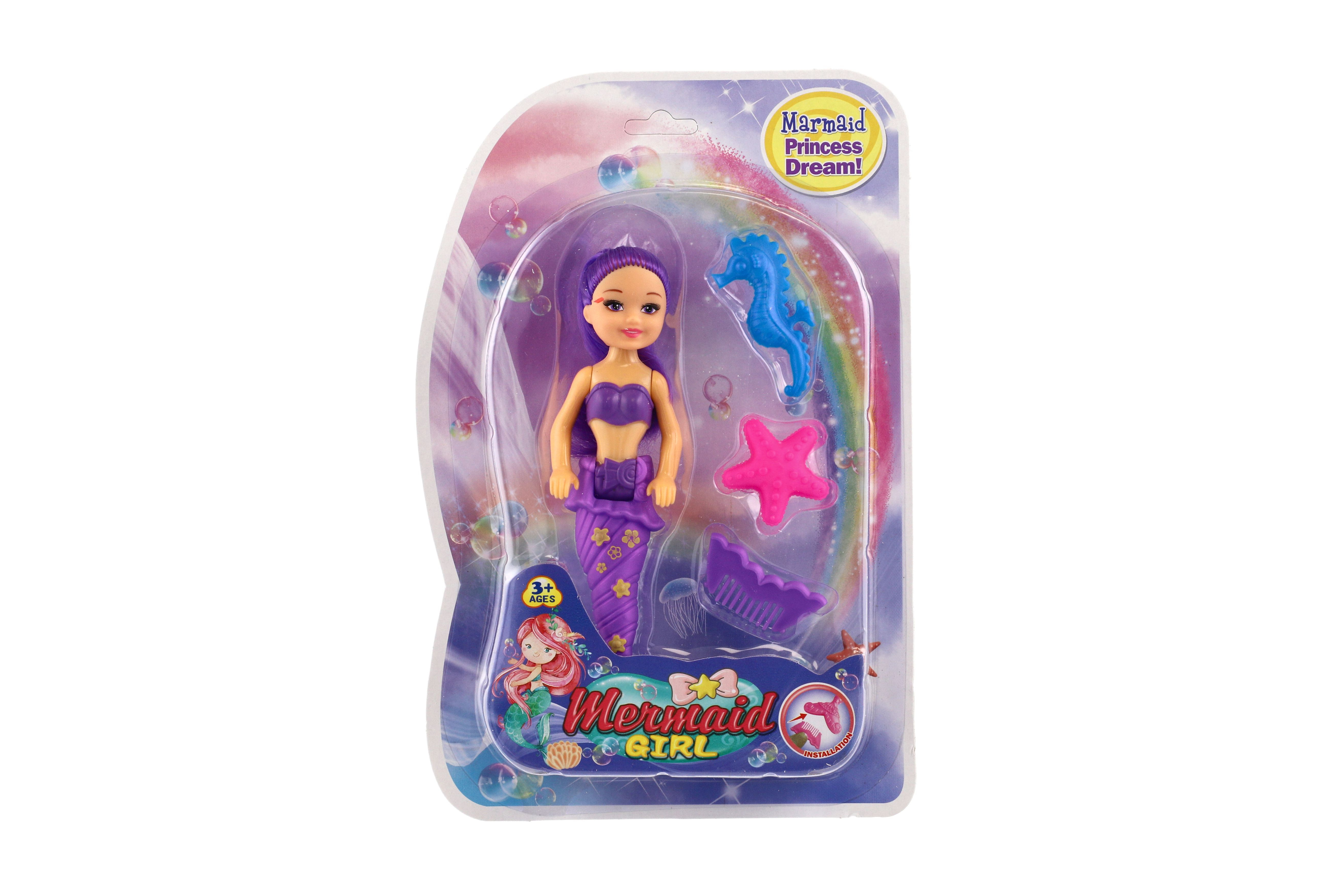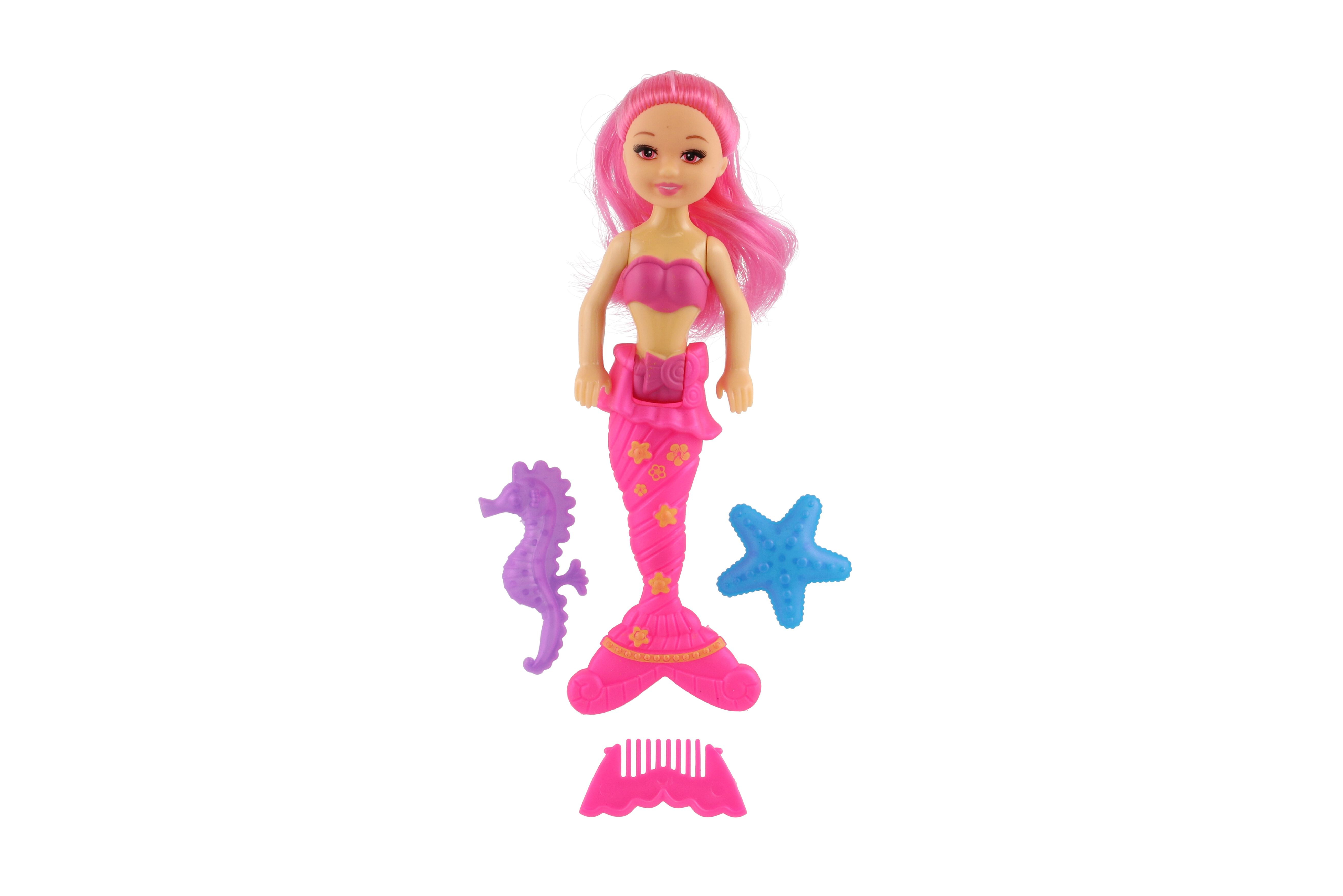 Eine Meerjungfrauenpuppe aus Kunststoff, die Sie nirgendwo übersehen dürfen. Erleben Sie mit einer Meerjungfrau ein Abenteuer auf dem Meeresgrund! Das Paket enthält 3 Zubehörteile. Packungsgröße: 15 cm. Geeignet für Kinder ab 3 Jahren.