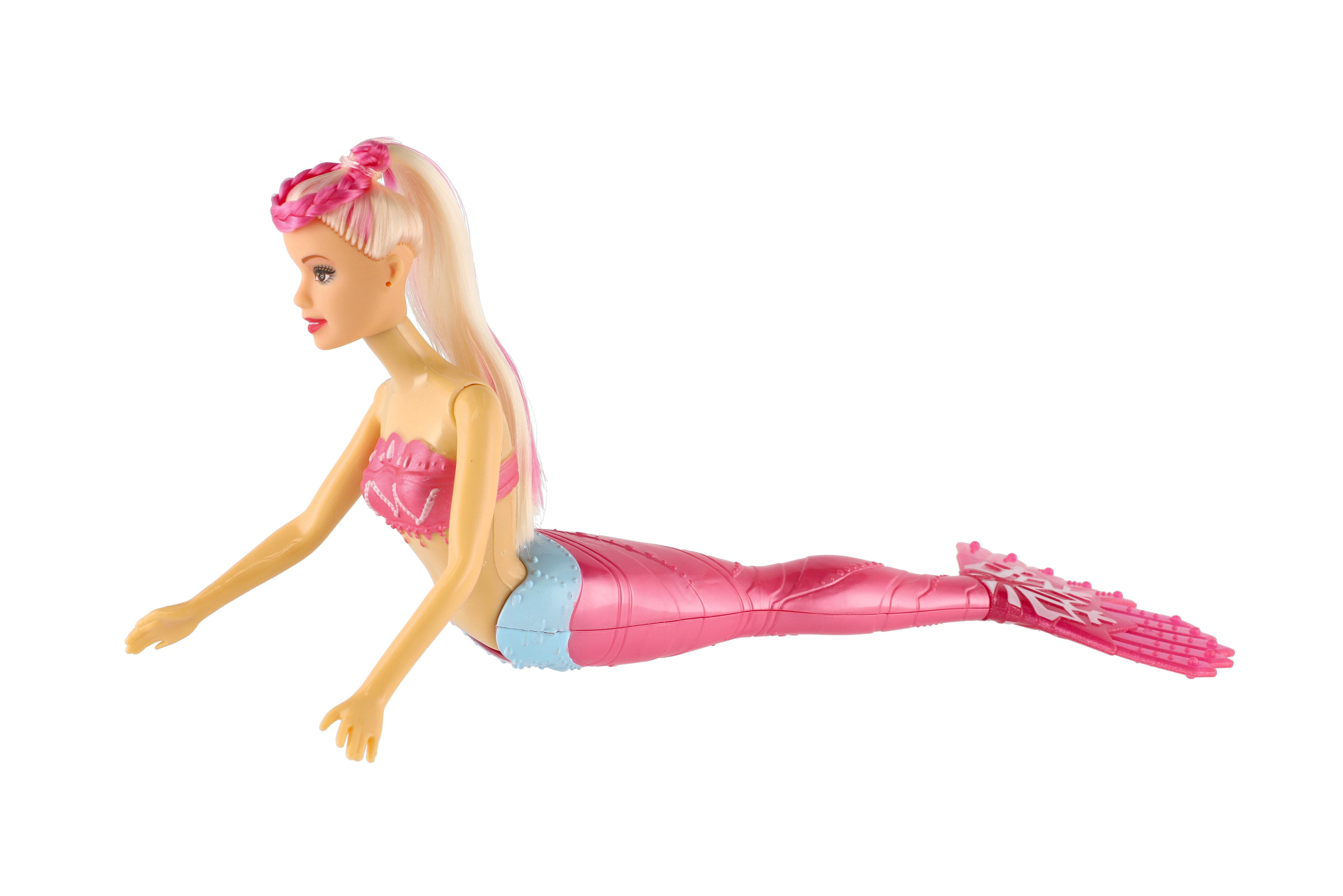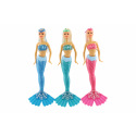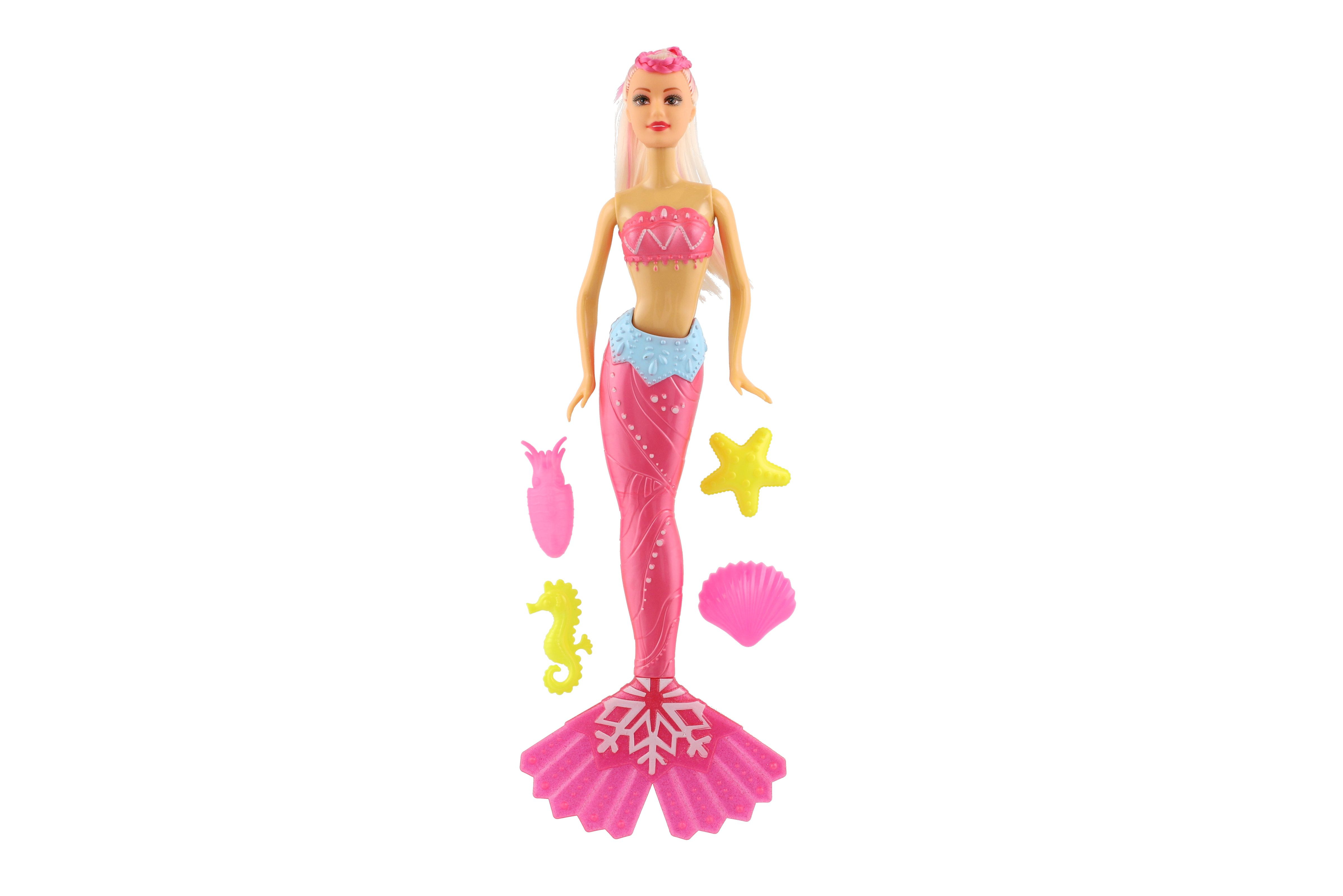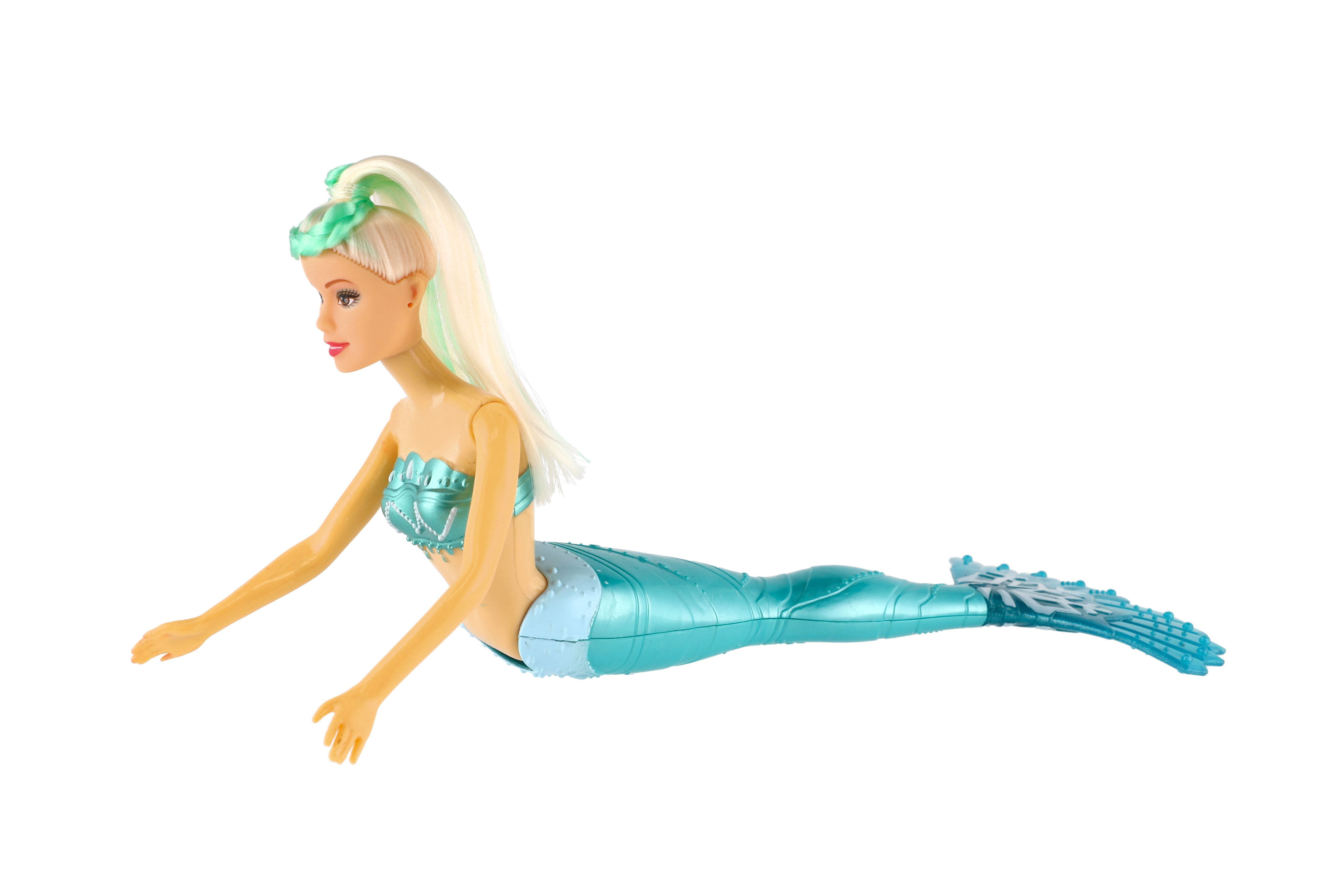 Meerjungfrauenpuppe aus Plastik. Erleben Sie mit einer Meerjungfrau ein Abenteuer auf dem Meeresgrund! Bringen Sie der Puppe bei, ihr langes Haar zu kämmen, damit es die gesamte Unterwasserwelt verzaubert! Im Lieferumfang sind außerdem 4 Zubehörteile enthalten, die Lamelle ist um 360 °C drehbar. Packungsgröße: 34 cm. Geeignet für Kinder ab 3 Jahren.