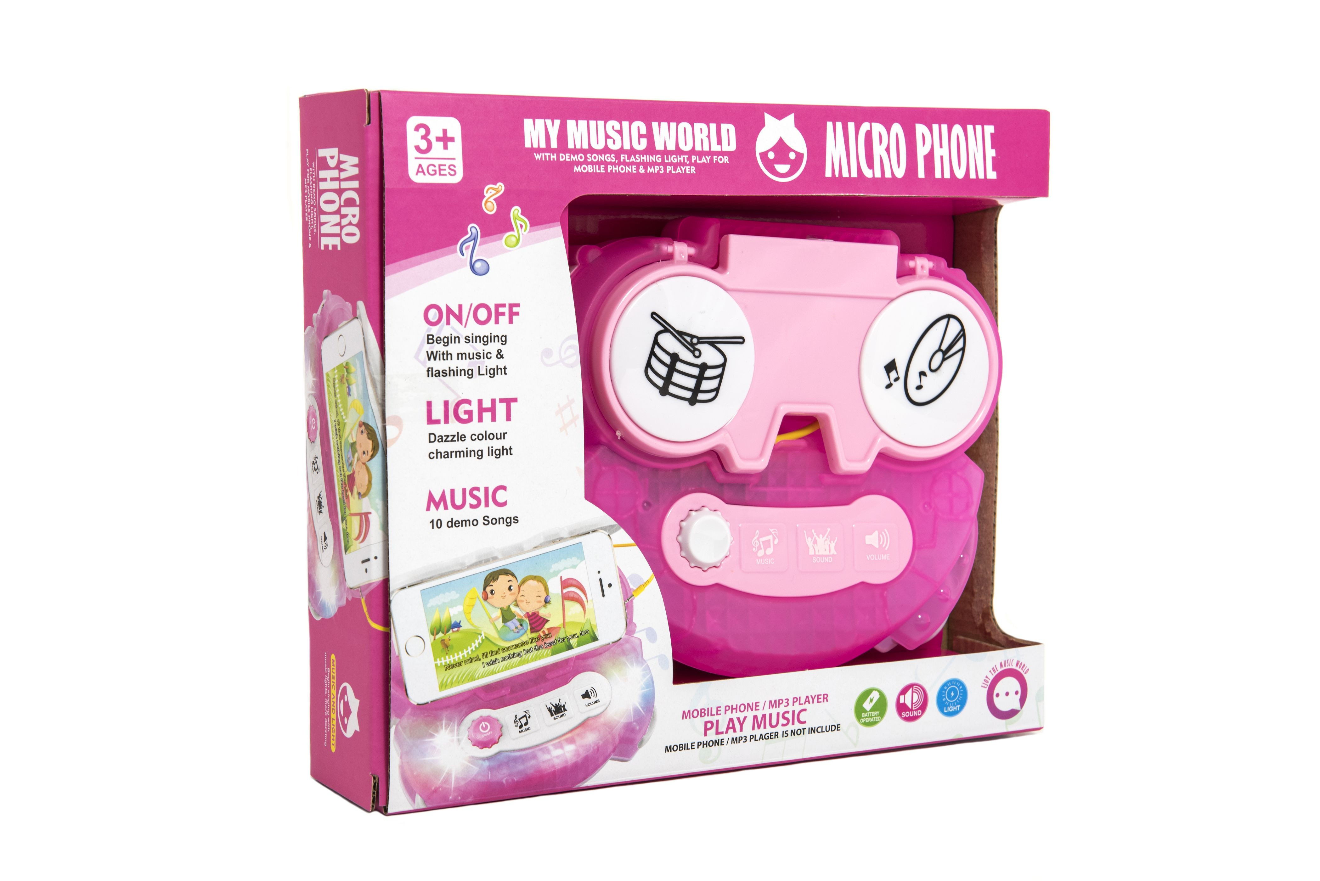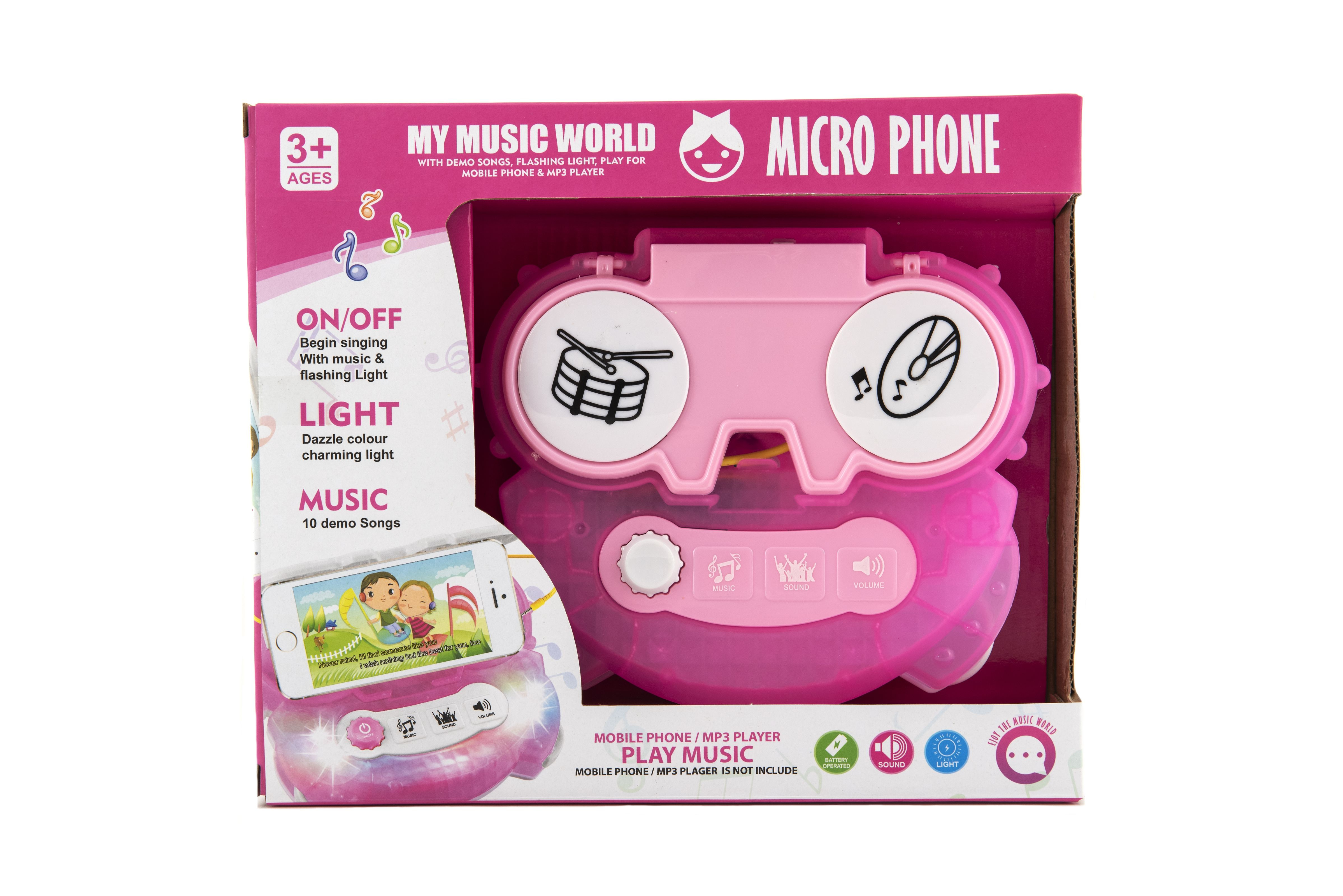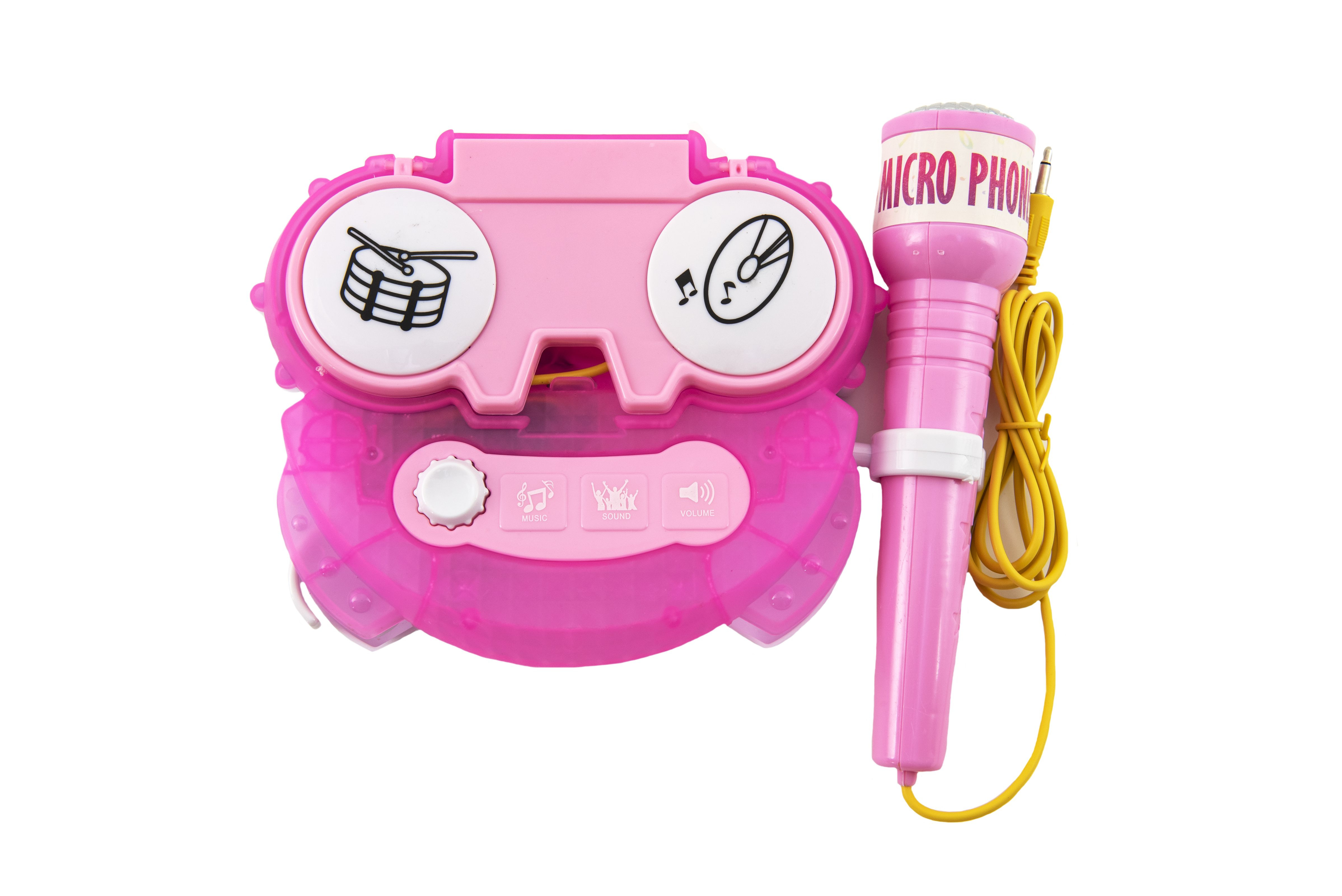 Beschreibung Teddies Mikrofon Karaoke rosa Kunststoff auf Batterien mit Licht in Schachtel 24x21x5,5cm