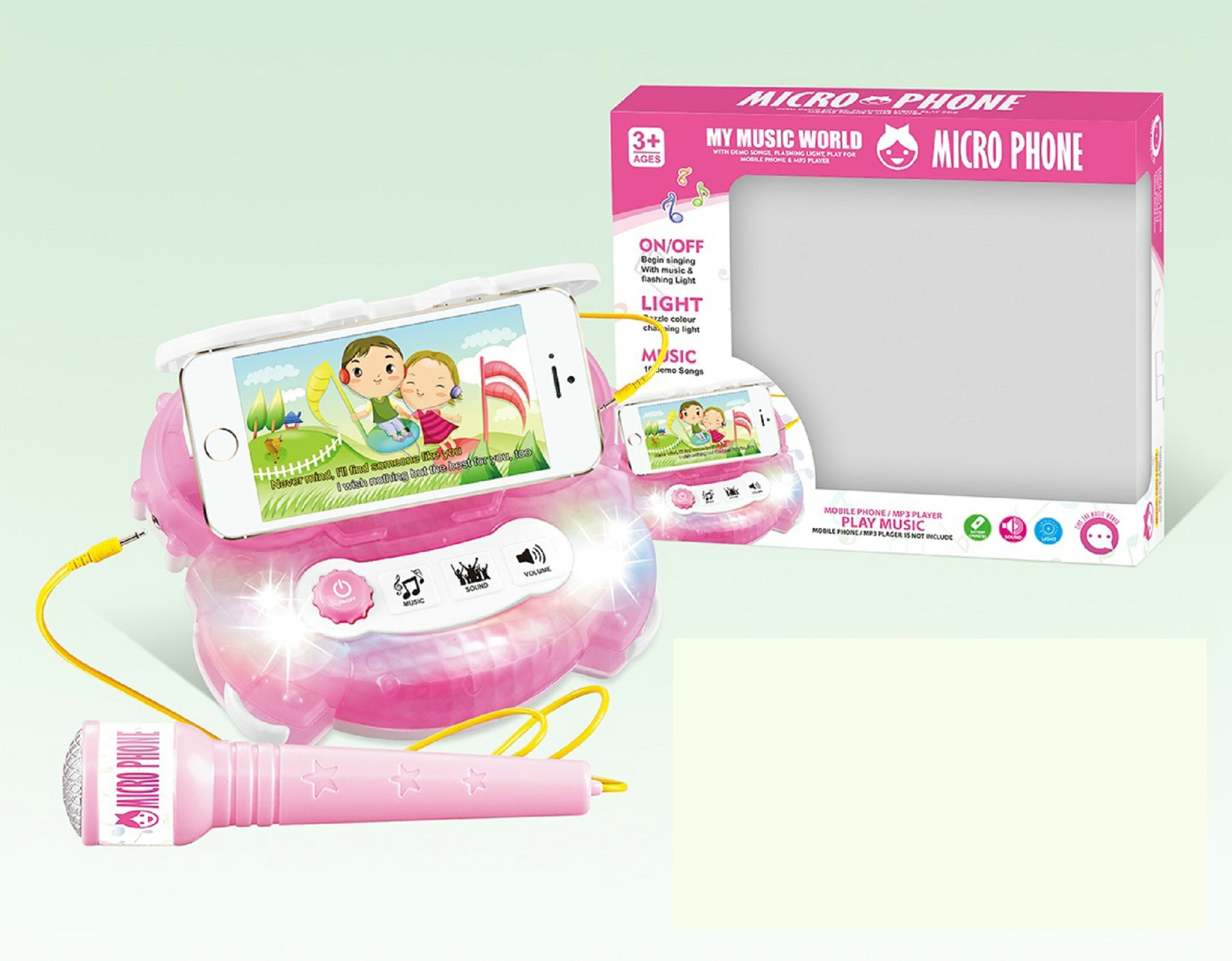 Genießen Sie eine Karaoke-Party zu Hause! Das pinkfarbene Karaoke-Mikrofon spielt Melodien zum Mitsingen für Kinder oder man schließt ein Handy an und spielt von dort aus eigene Musik ab. Auch das Mikrofon leuchtet. 3x AA-Batterien sind nicht im Lieferumfang enthalten. Verpackungsmaße 24 x 20 x 6 cm. Geeignet für Kinder ab 3 Jahren.
