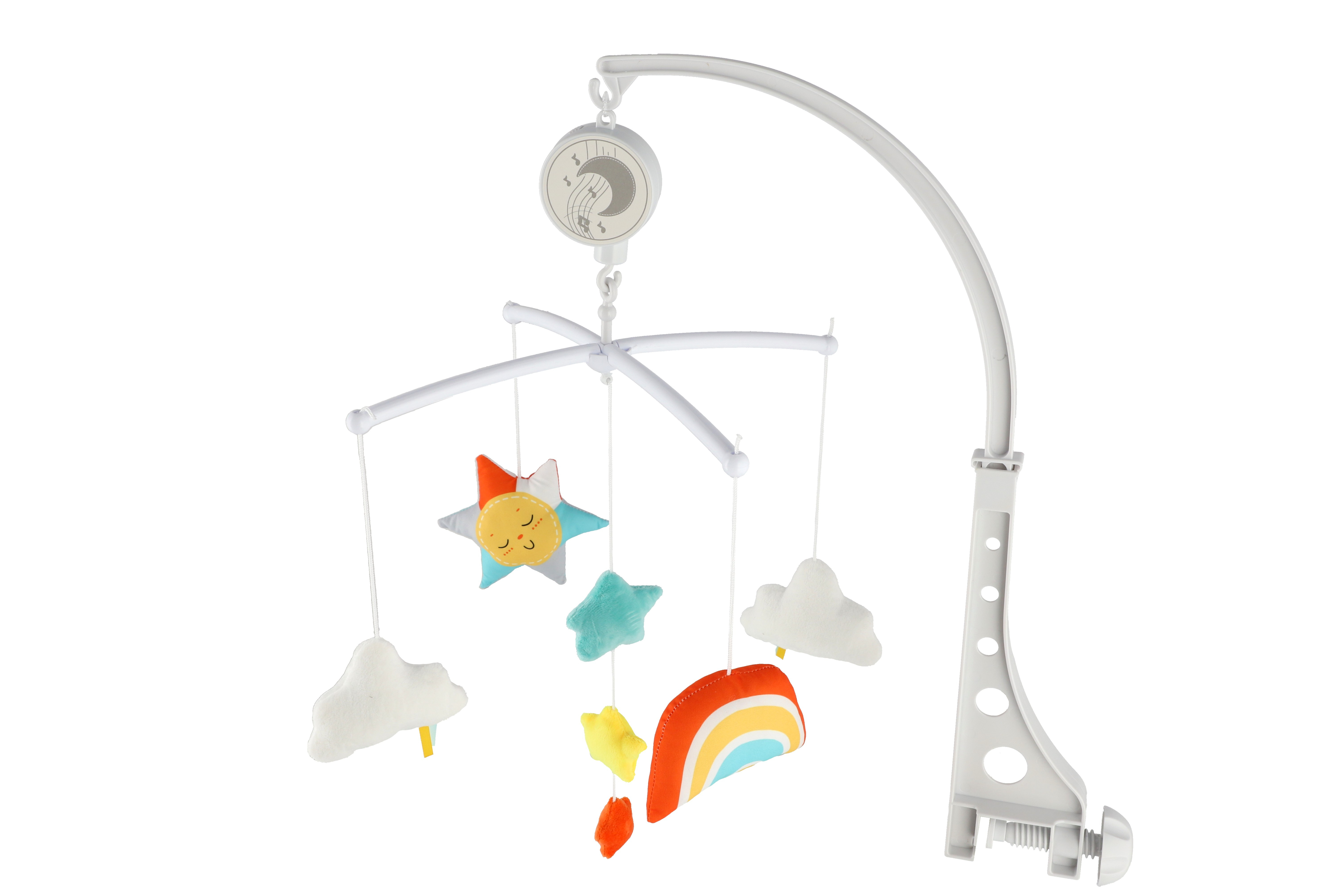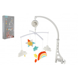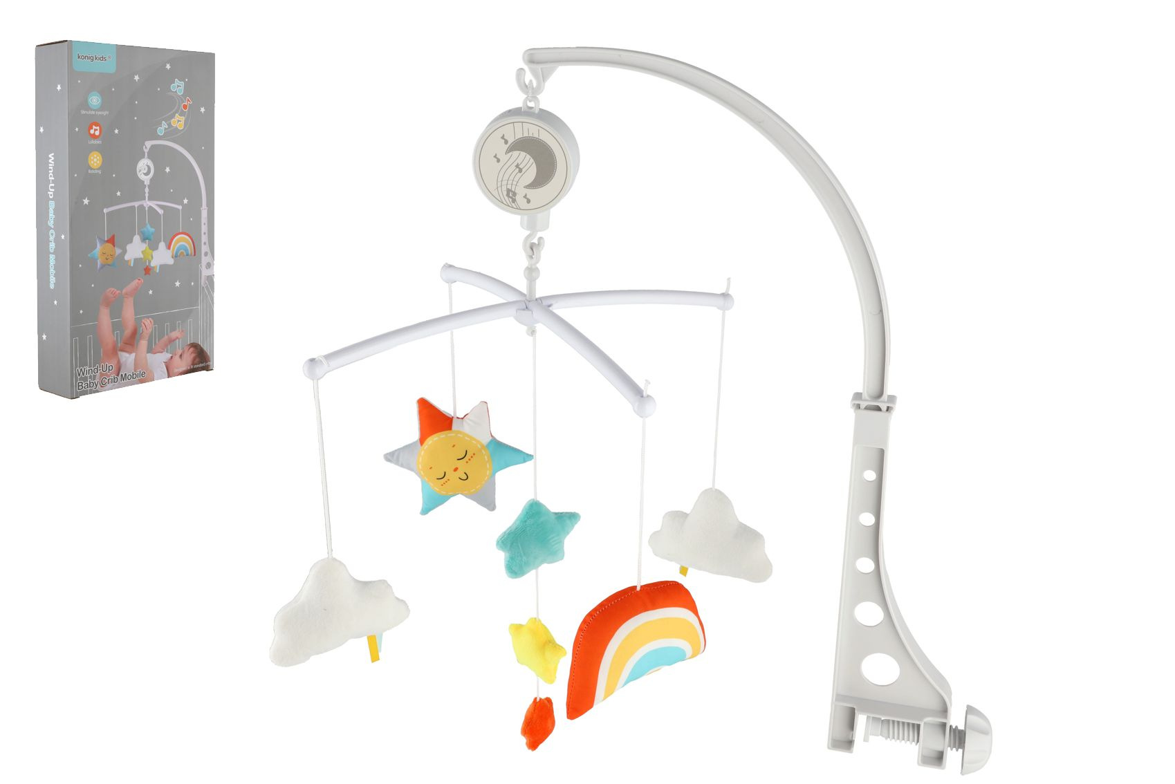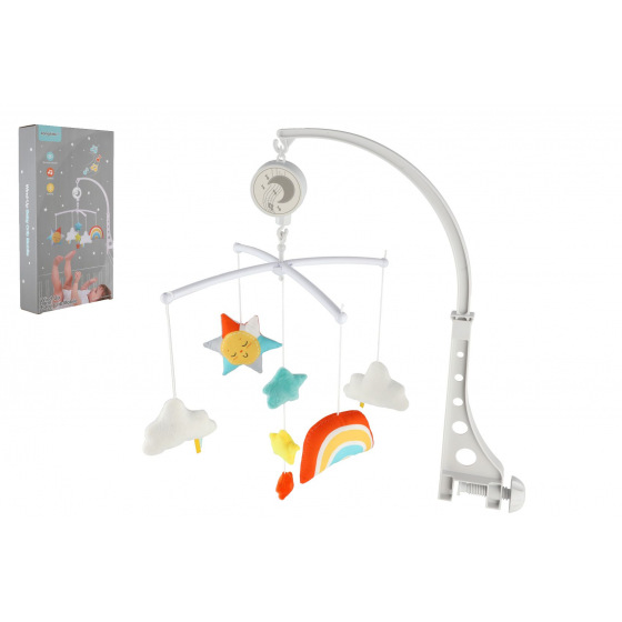 Ein Mobile über dem Bettchen mit bunten Plüschspielzeugen unterhält das Baby und hilft ihm beim Einschlafen. Auf jedem der vier Plastikarme finden Sie einen Regenbogen, eine Sonne, Wolken und Sterne. Das Karussell spielt eine angenehme Melodie - es hat ein Aufziehwerk. Abmessungen der Schachtel: 19 x 33 x 5,5 cm Geeignet ab 6 Monaten