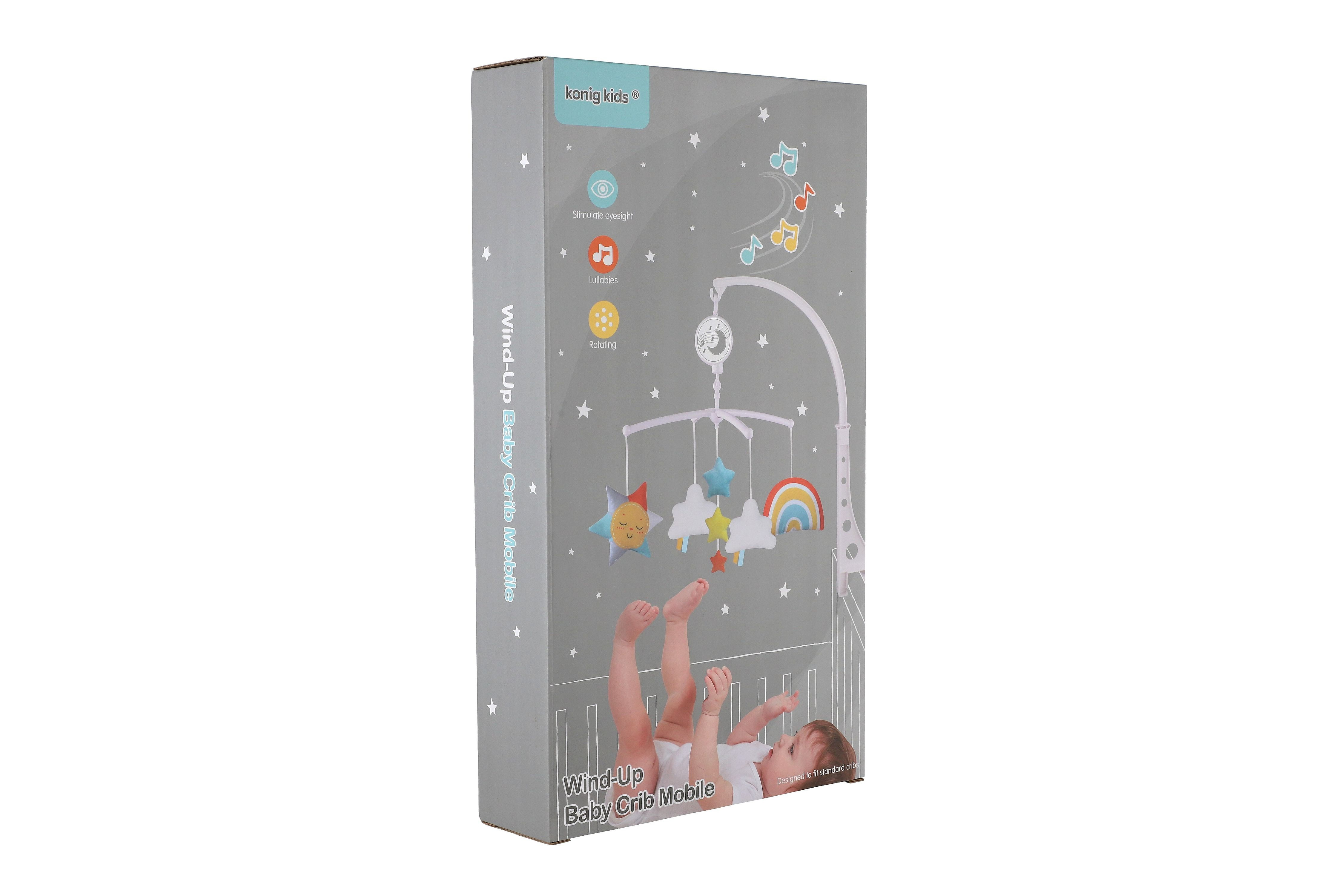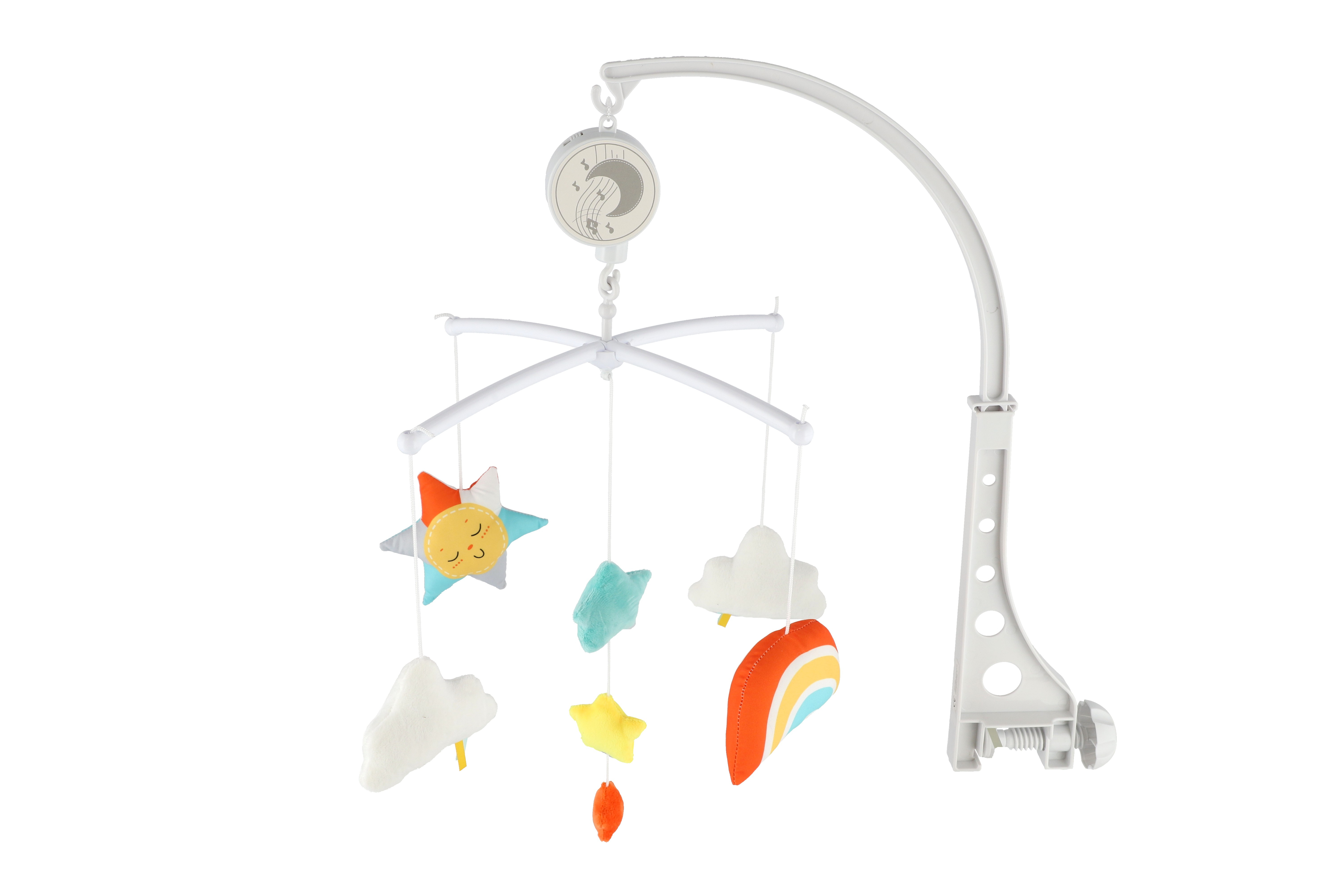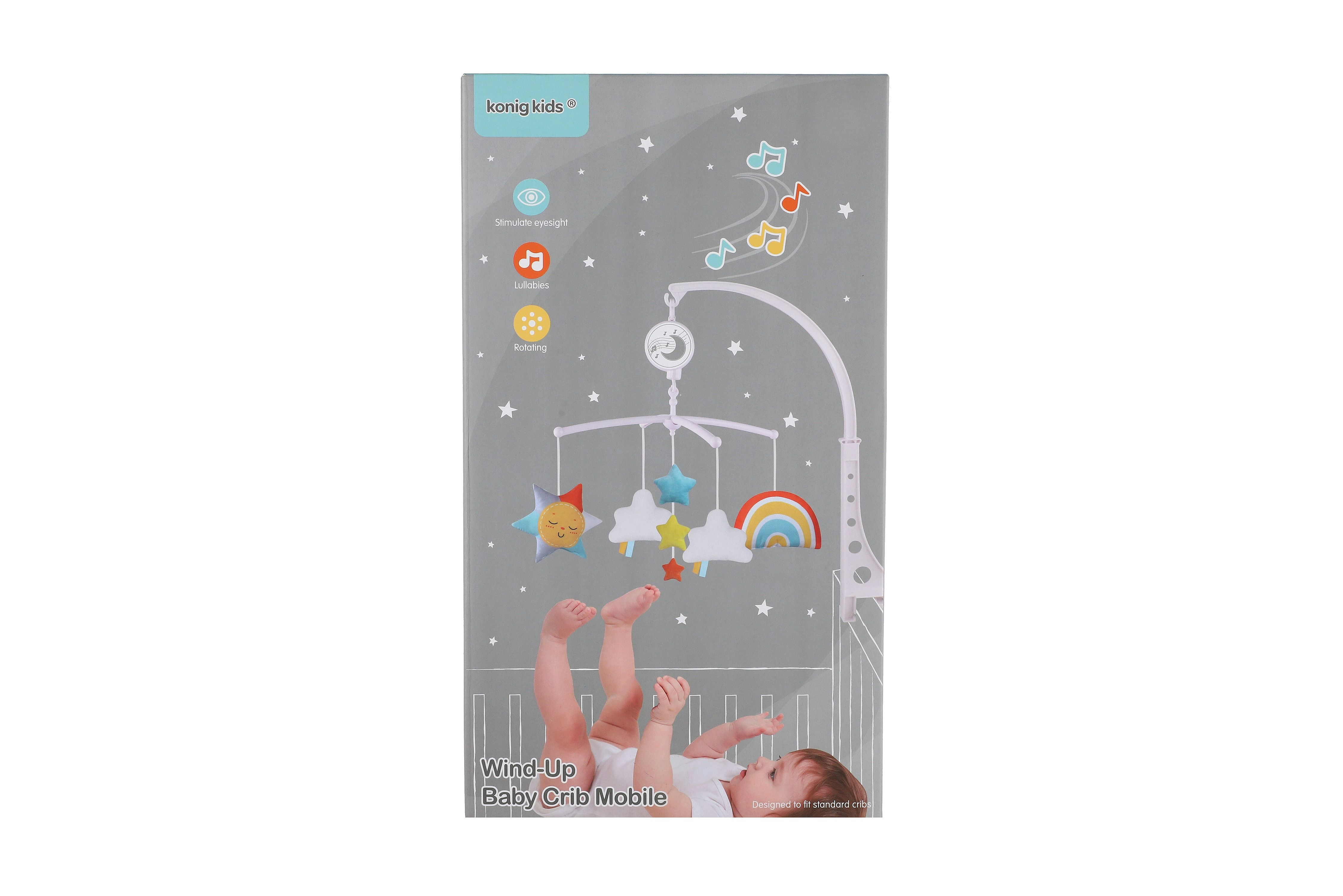 Ein Mobile über dem Bettchen mit bunten Plüschspielzeugen unterhält das Baby und hilft ihm beim Einschlafen. Auf jedem der vier Plastikarme finden Sie einen Regenbogen, eine Sonne, Wolken und Sterne. Das Karussell spielt eine angenehme Melodie - es hat ein Aufziehwerk. Abmessungen der Schachtel: 19 x 33 x 5,5 cm Geeignet ab 6 Monaten