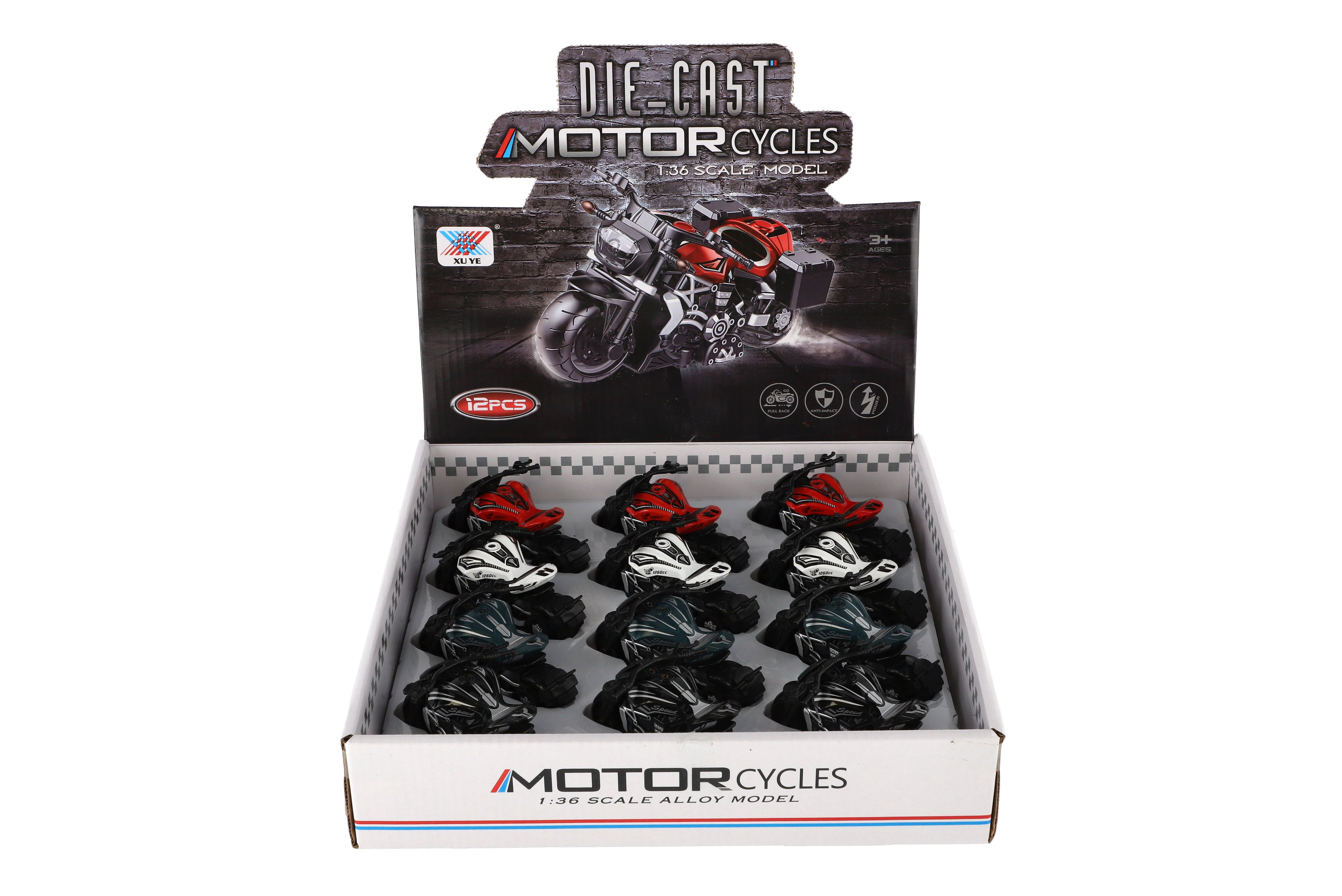 Ein wunderschönes Motorradmodell mit authentischem Aufziehdesign. Ein Spielzeug, das jeder kleine Rennfahrer, Fahrer oder Biker zu schätzen weiß. Es läuft mit Rückstoß. Motorradgröße: 10 cm. Geeignet für Kinder ab 3 Jahren.