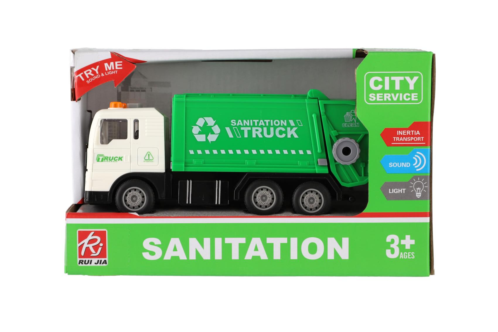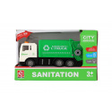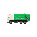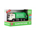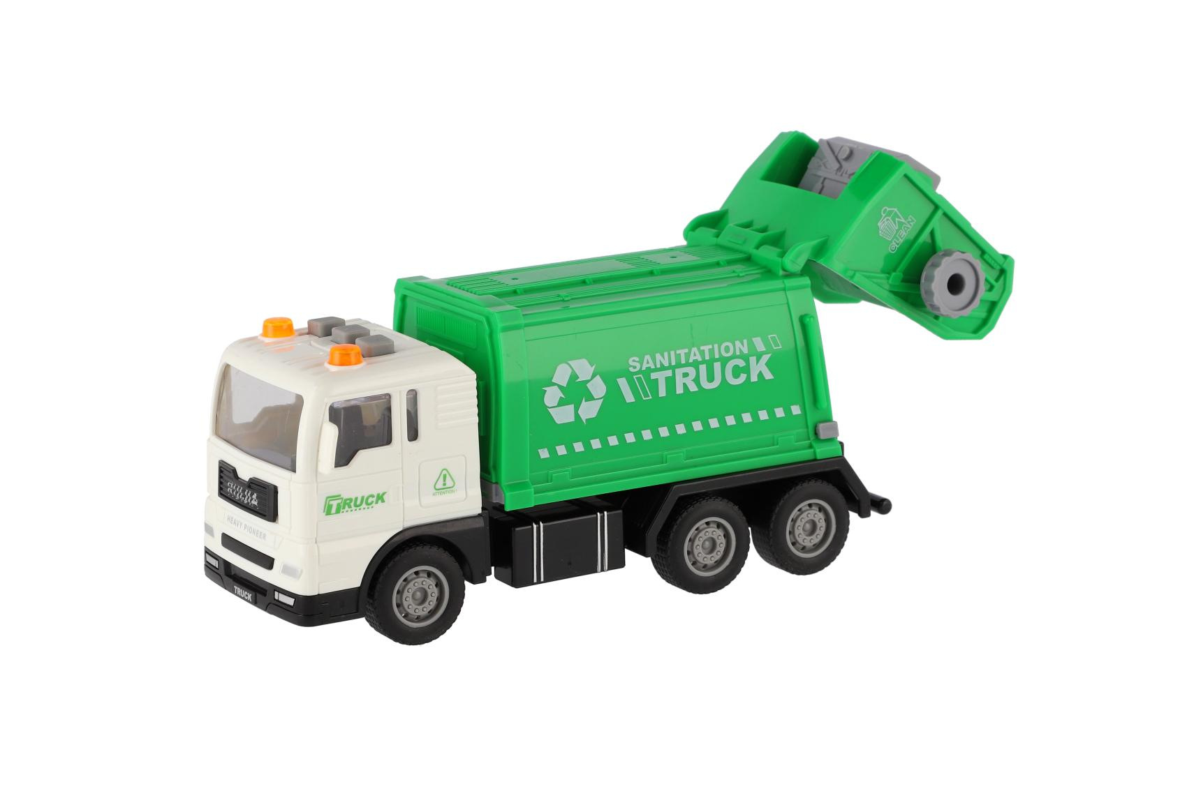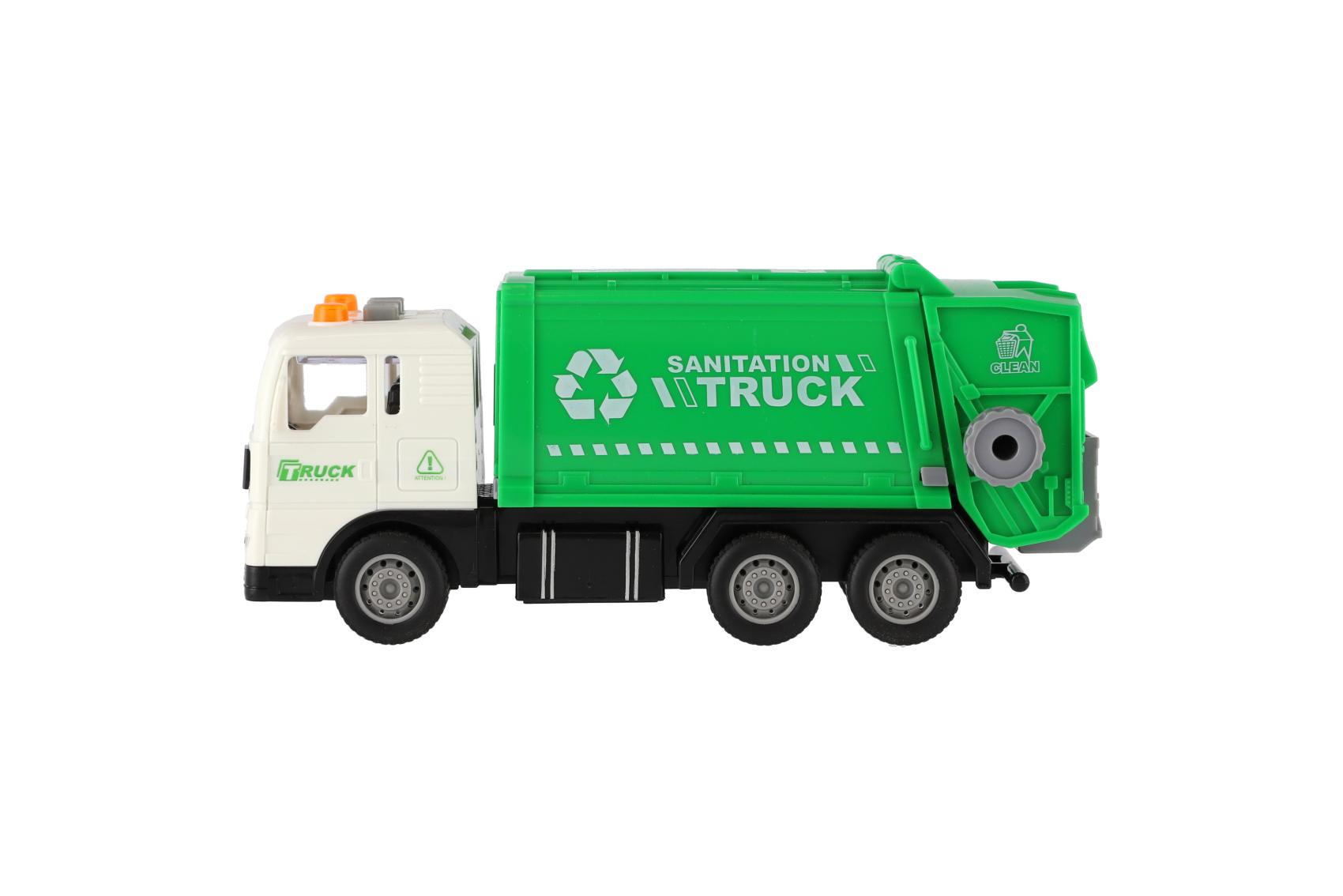 Teddies Müllauto aus Kunststoff 17cm mit Schwungrad, batteriebetrieben mit Licht und Sound in Schachtel 21x13x9cm