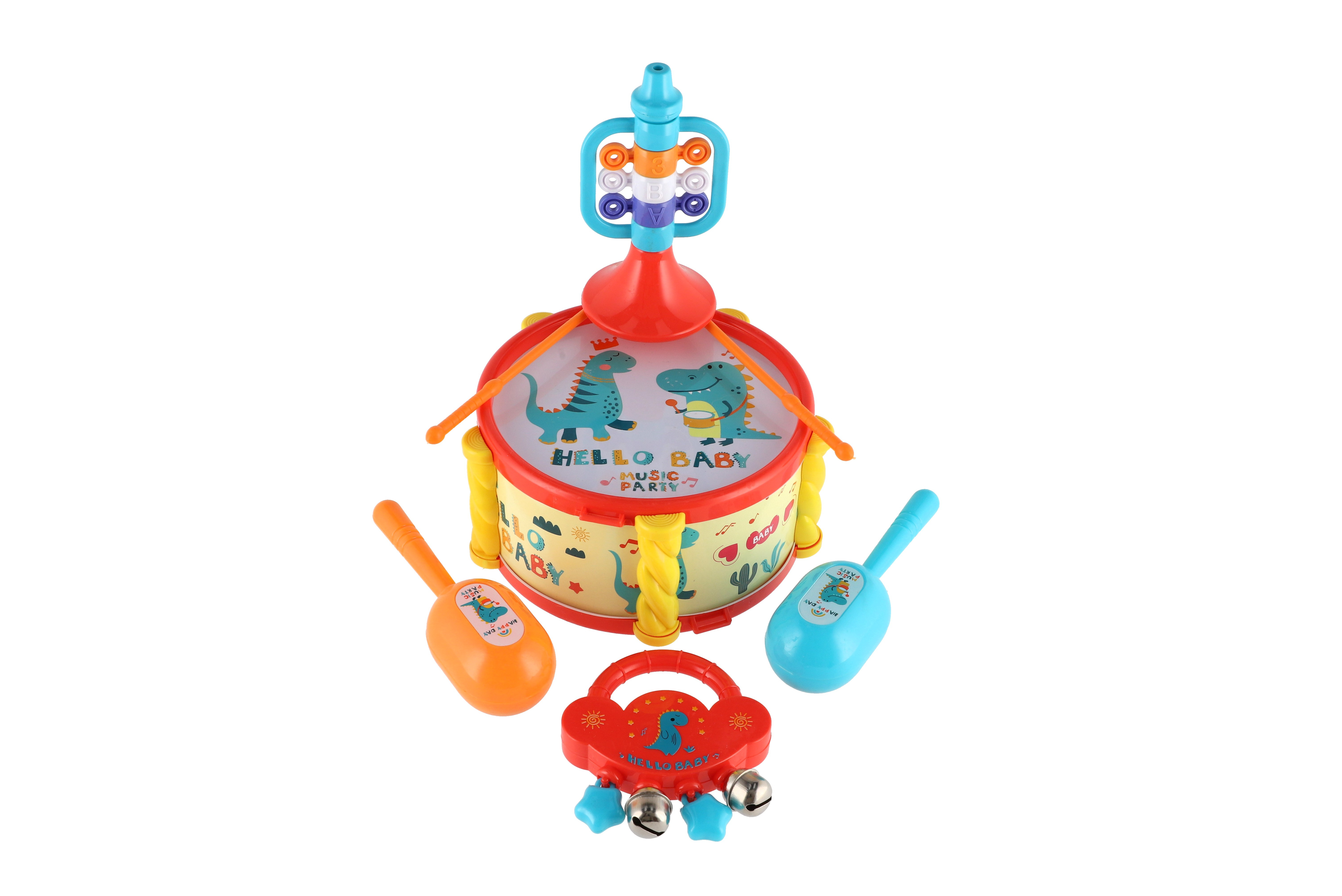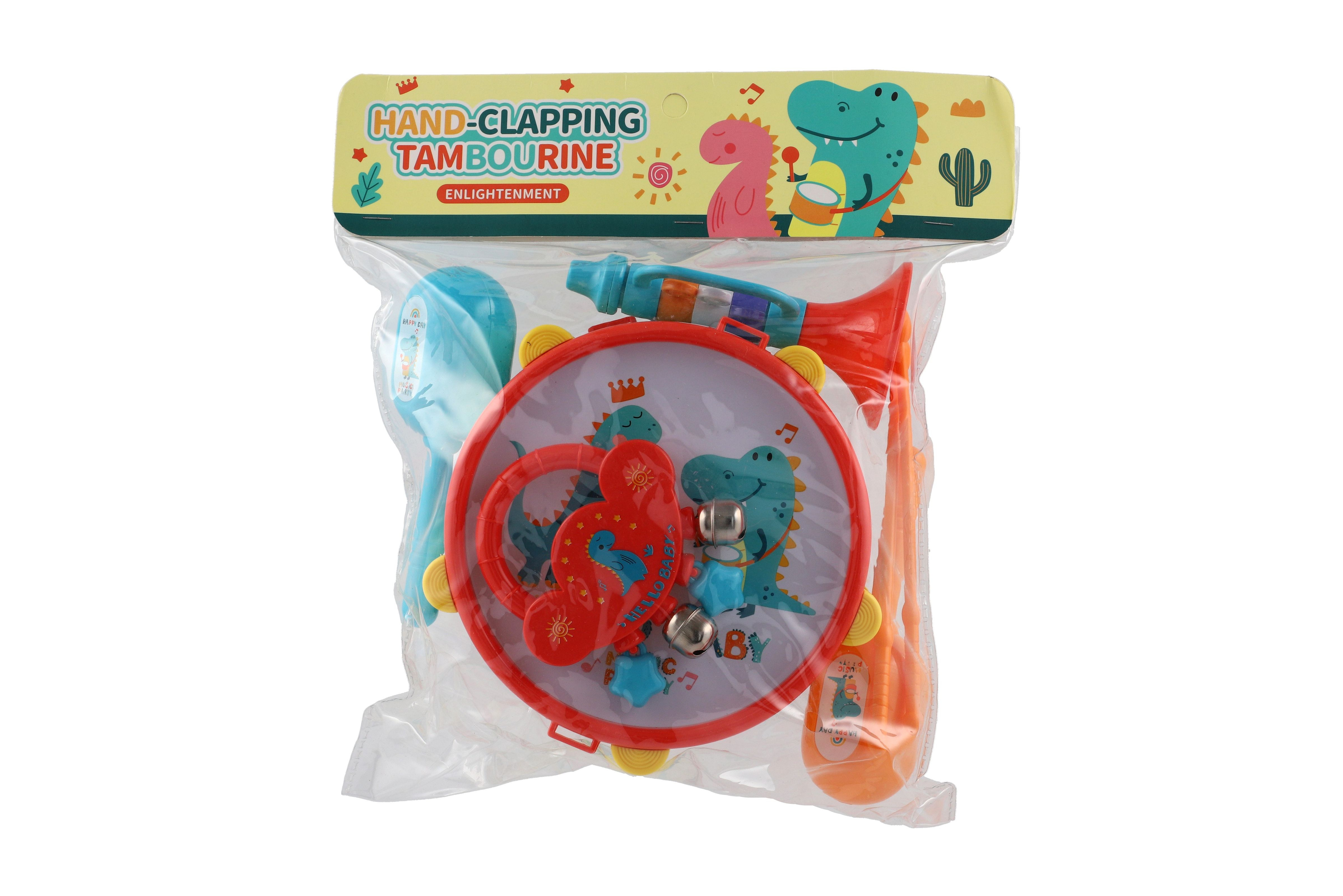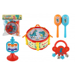 Zabavte své děti se sadou hudebních nástrojů s roztomilým dinosaurem. Tato sada je skvělým způsobem, jak jim představit svět hudby a kreativity. Sada obsahuje: bubínek, rumba koule, tamburínku a trumpetu. Rozměr balení: 27,5 x 28 cm Vhodné pro děti od 3 měsíců