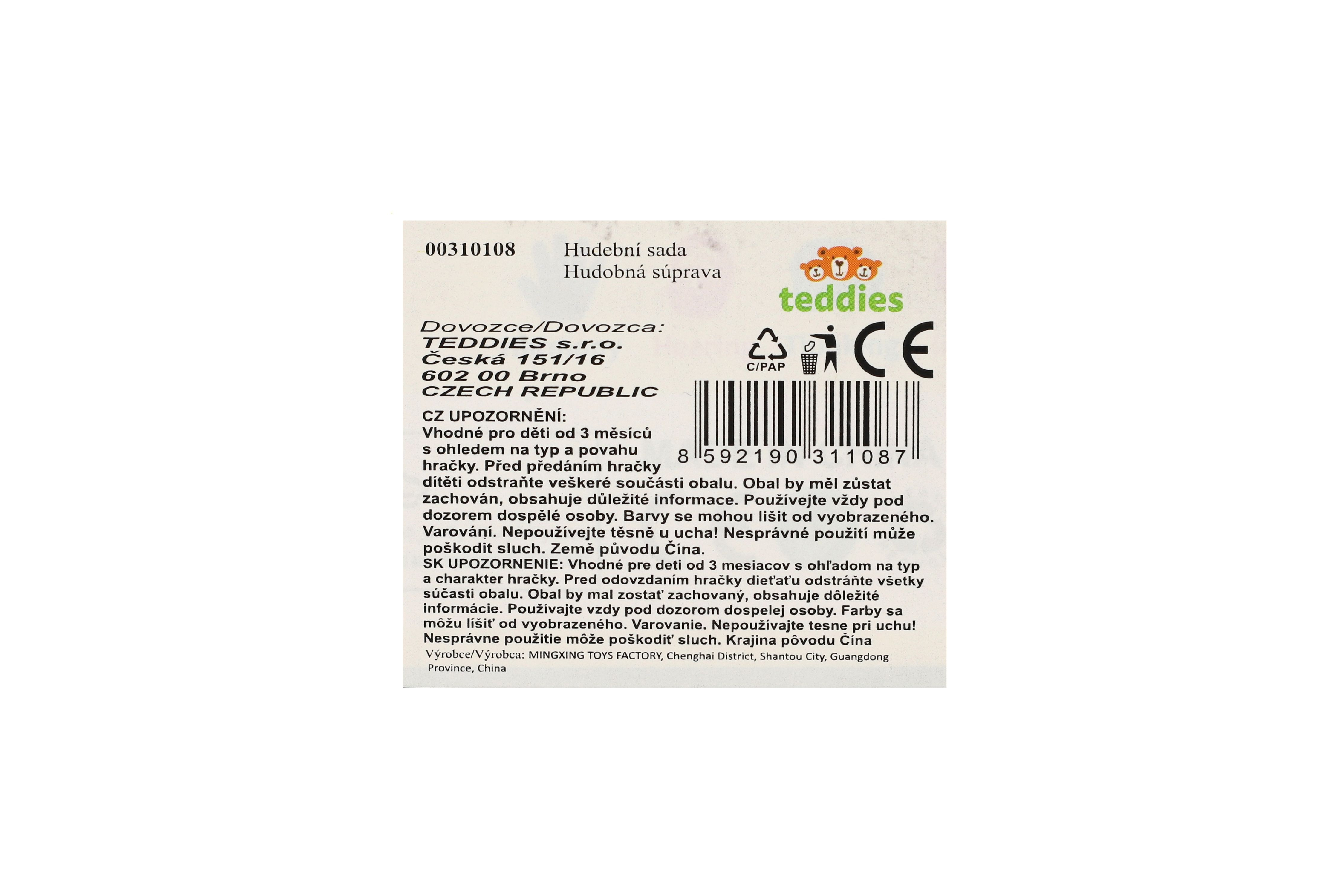 Beschreibung Teddies Musikinstrumente/Set aus Kunststoff 5 Stück in Schachtel 2 Farben im Beutel 27,5x28cm 3m+