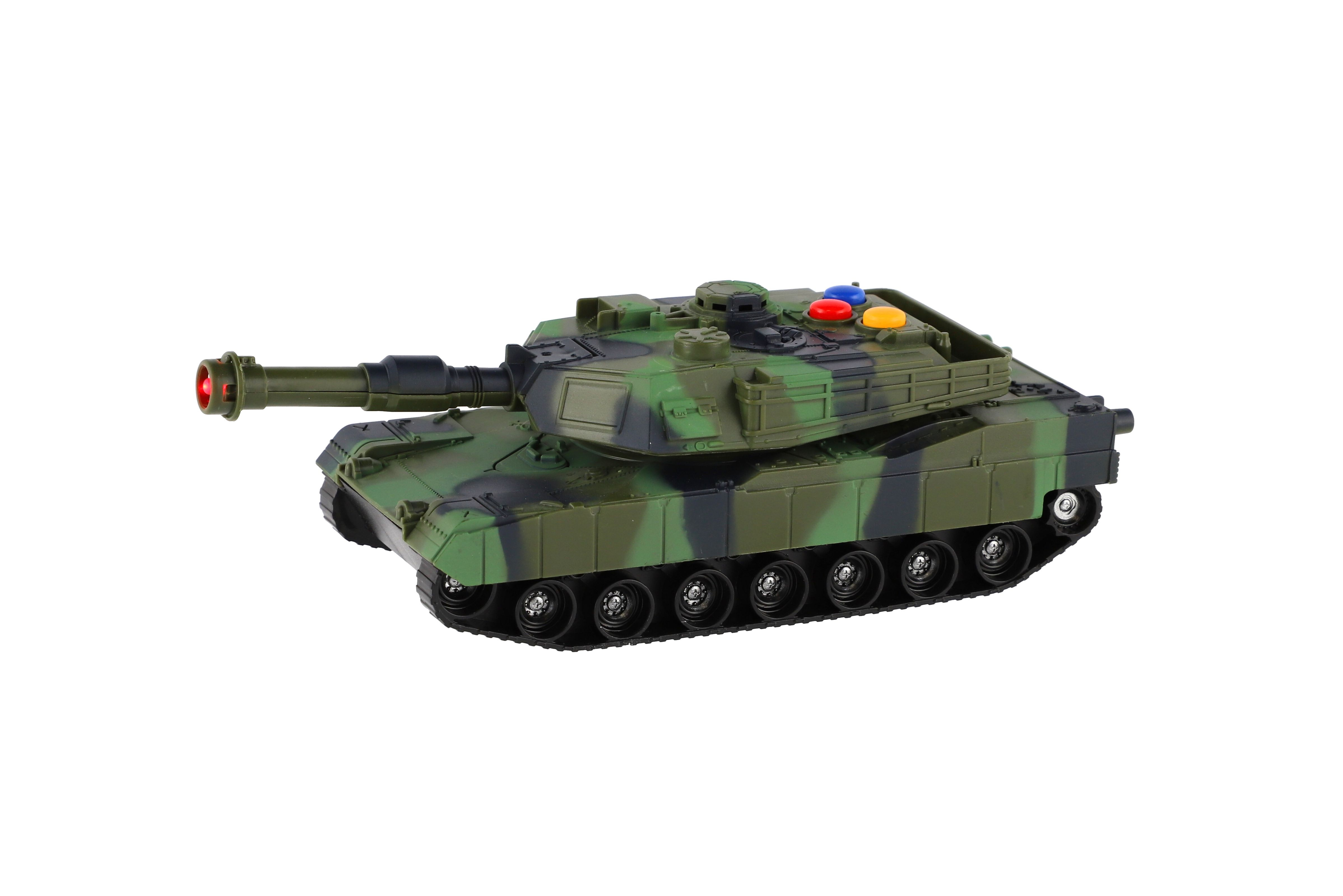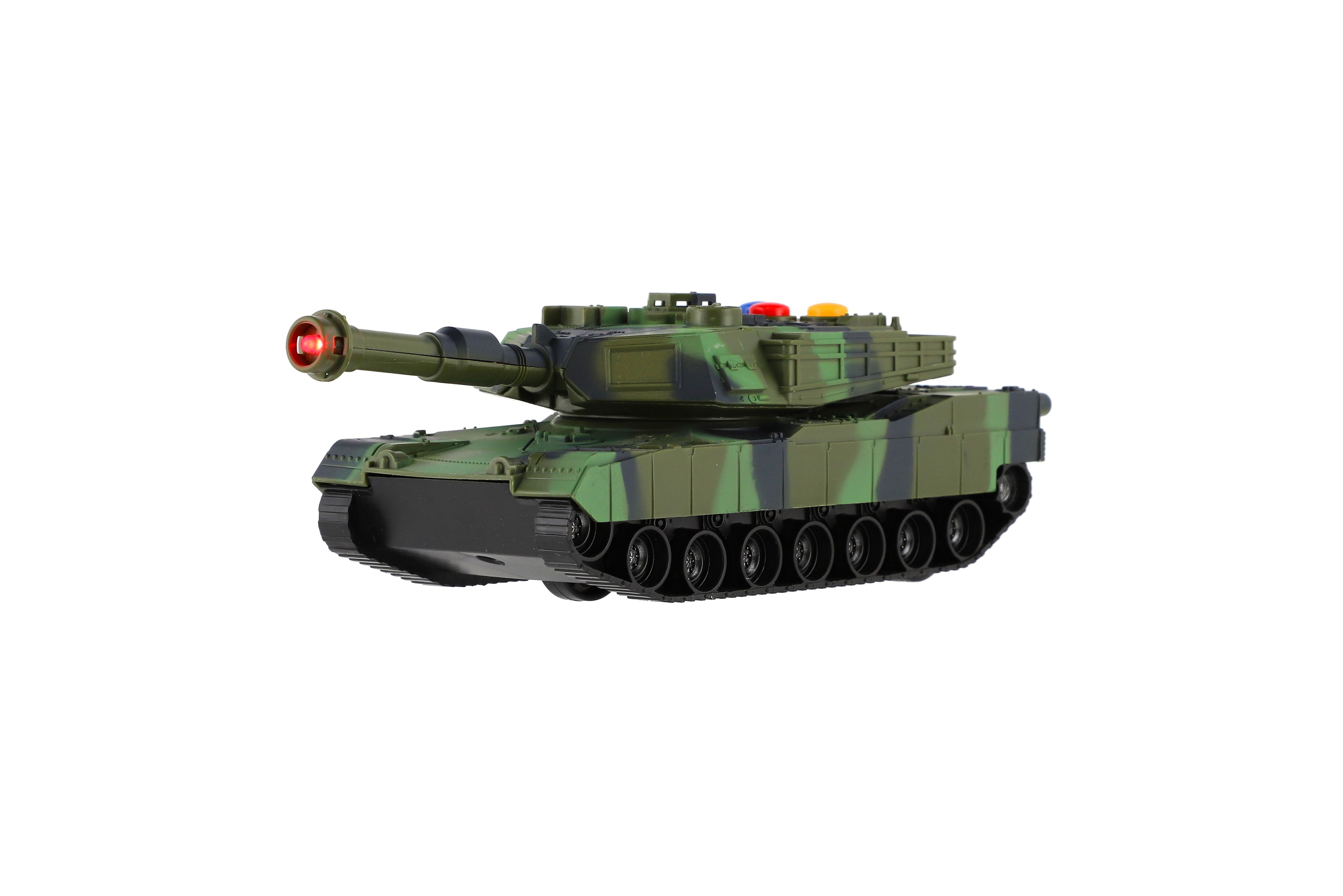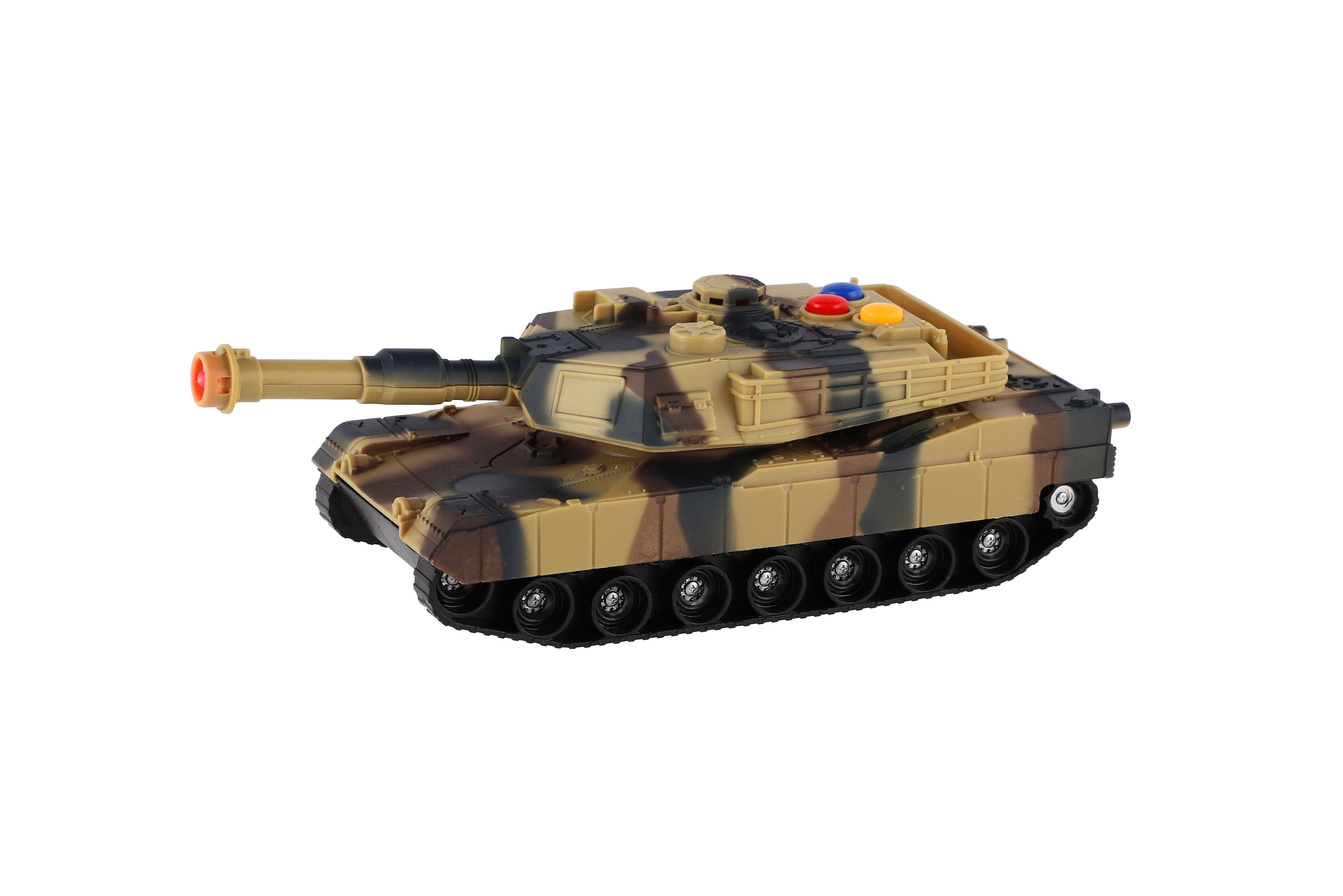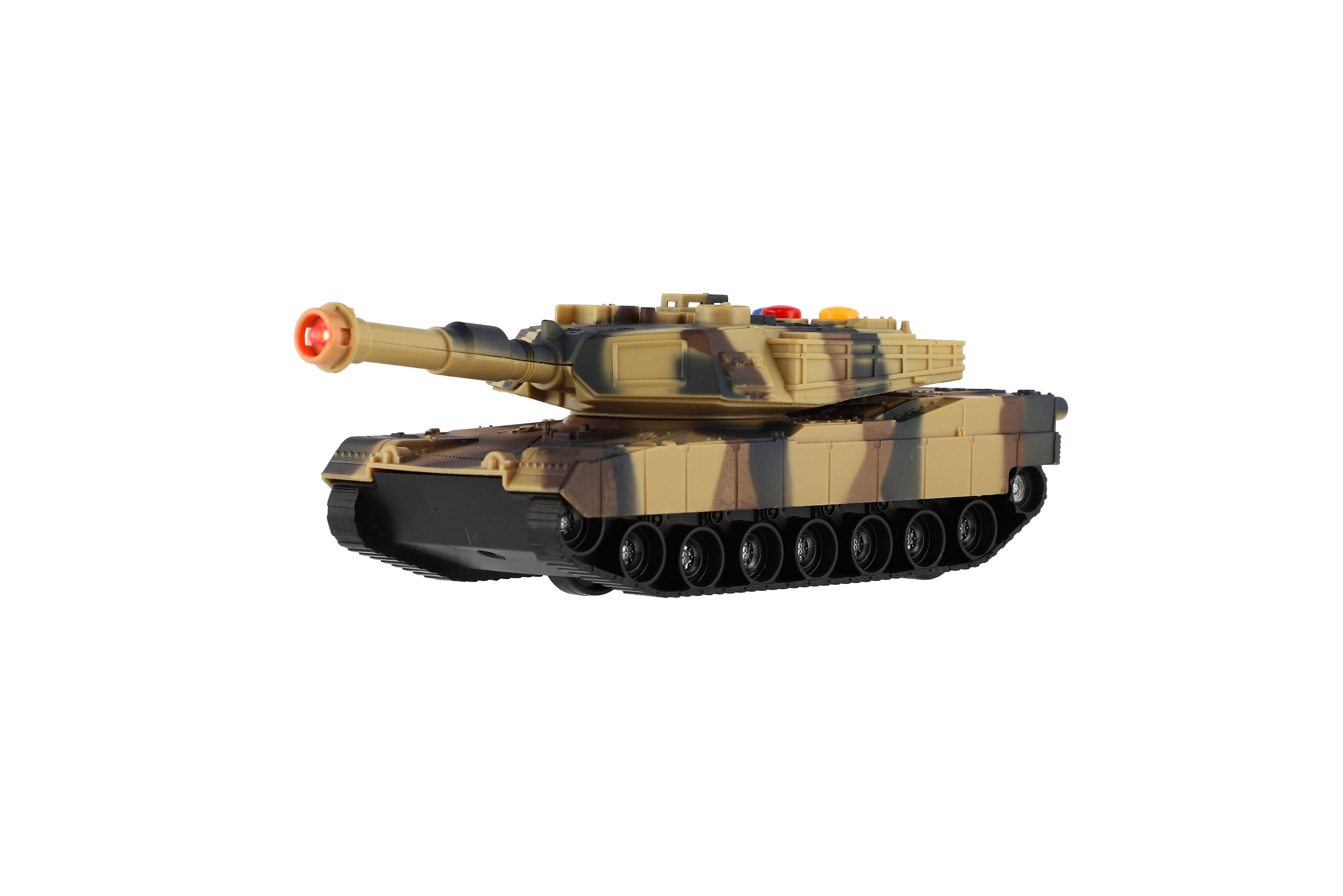 Beschreibung Teddies Panzer aus Kunststoff 17cm mit Schwungrad, batteriebetrieben mit Licht und Sound, 2 Farben in Schachtel 20x11x9cm