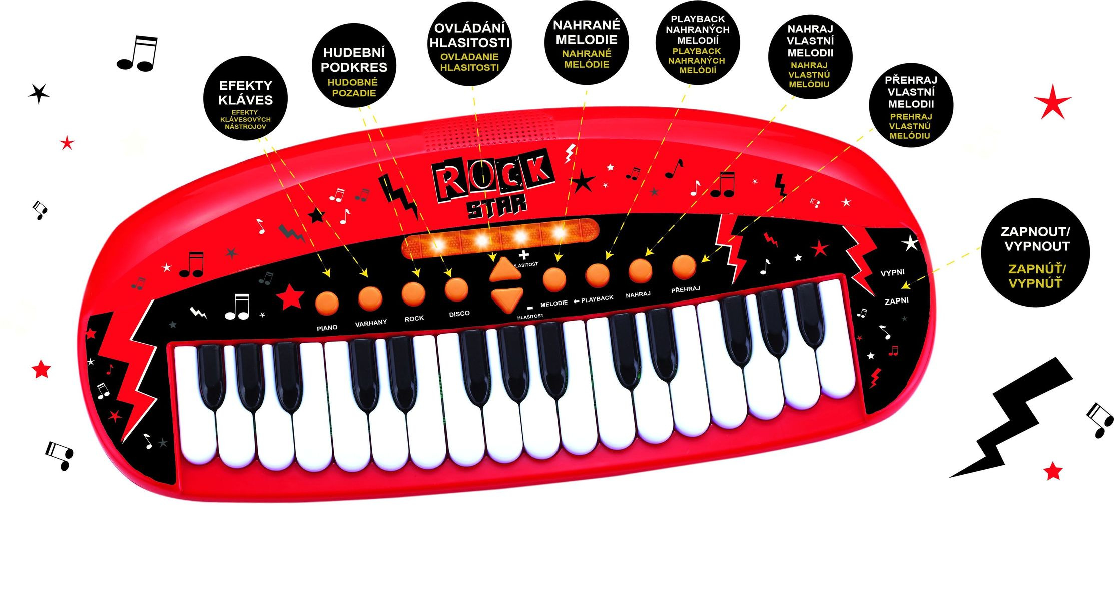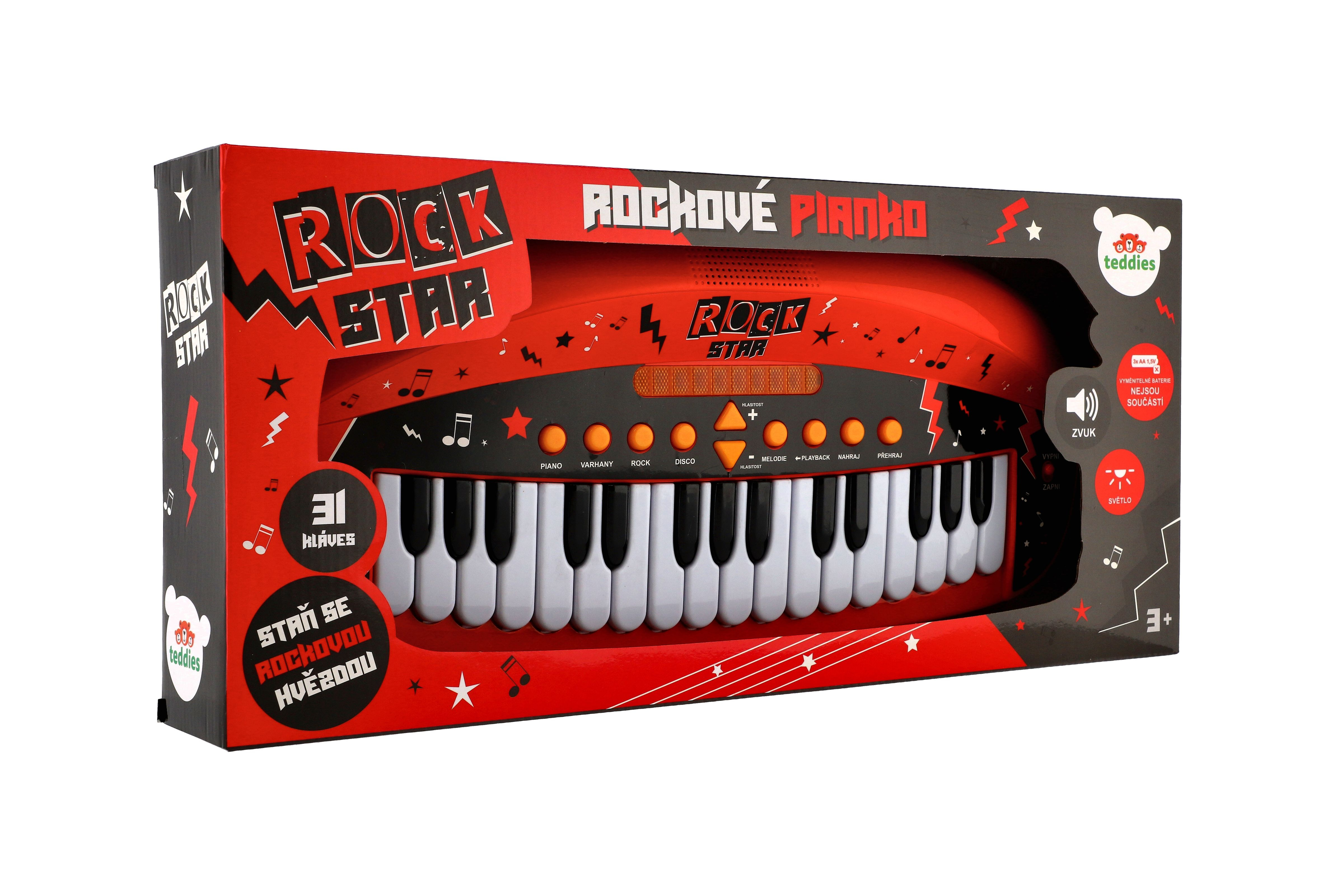 Teddies Pianko ROCK STAR 31 Tasten Kunststoff 46cm mit Batterie, mit Sound und Licht in Schachtel 52x24x8cm