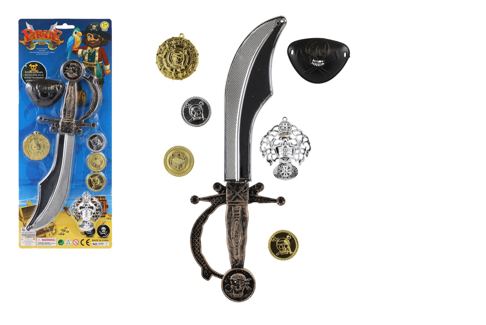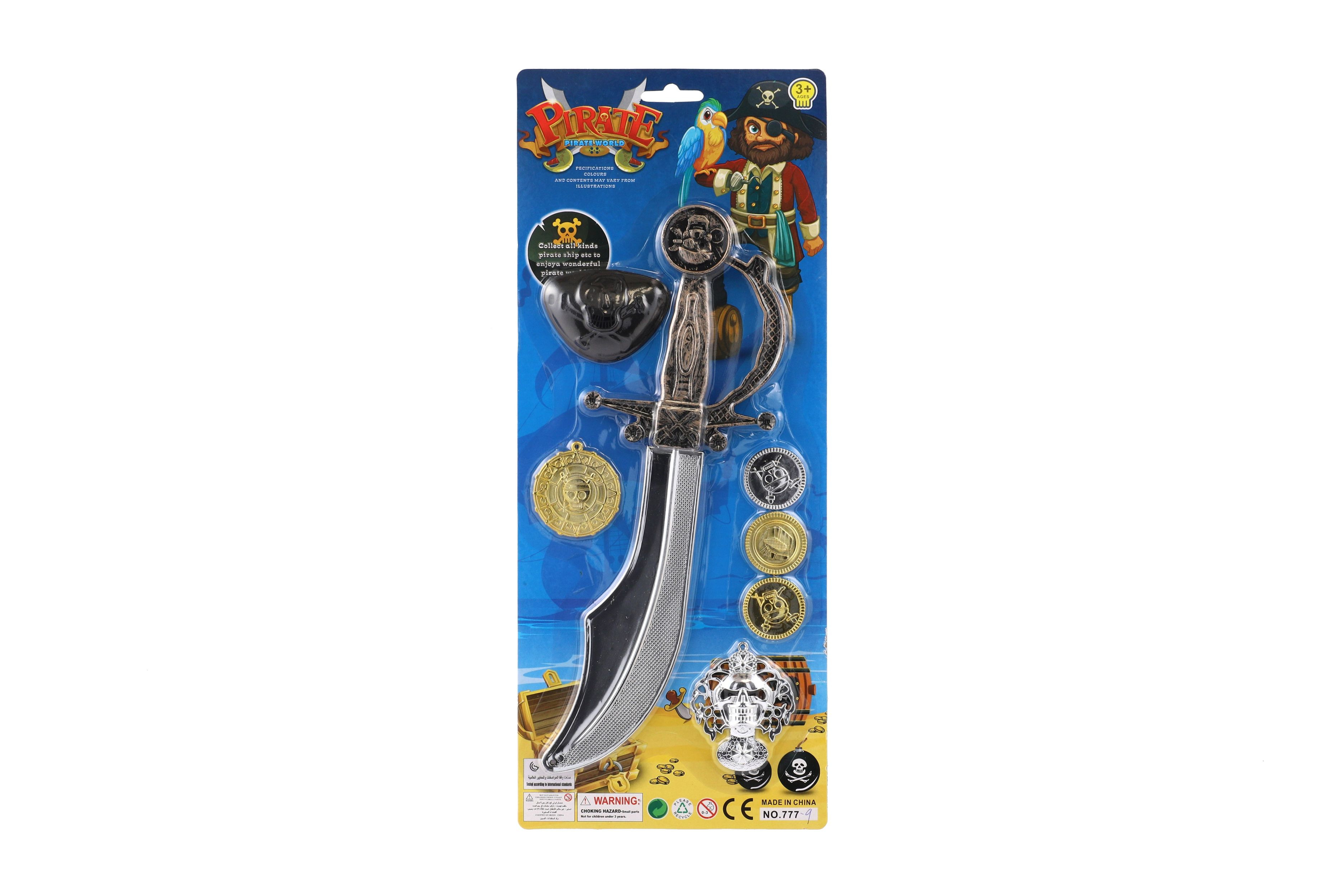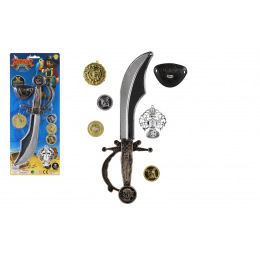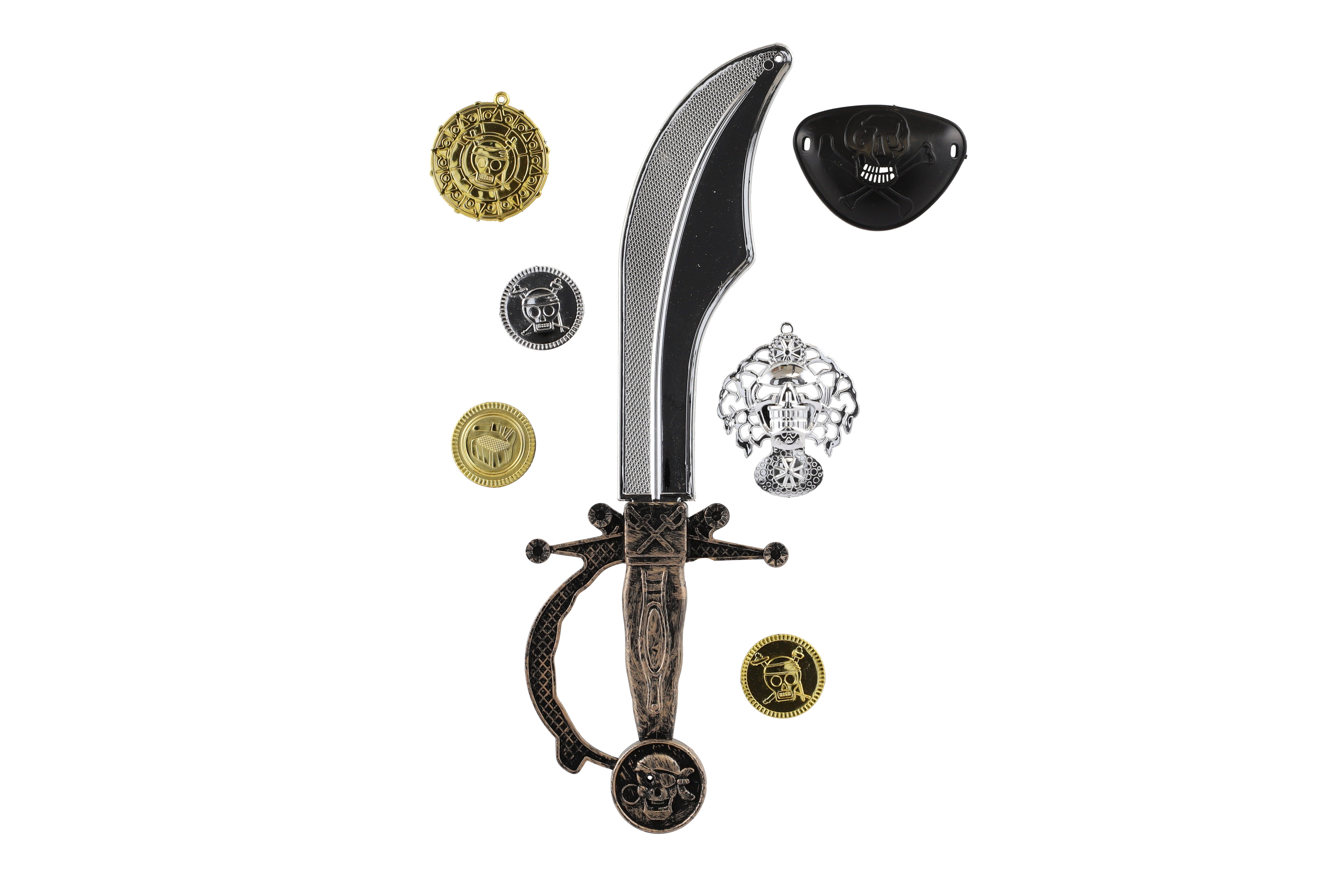 Beschreibung Teddies Piratenset Schwert mit Zubehör aus Kunststoff auf Karte 17x41cm