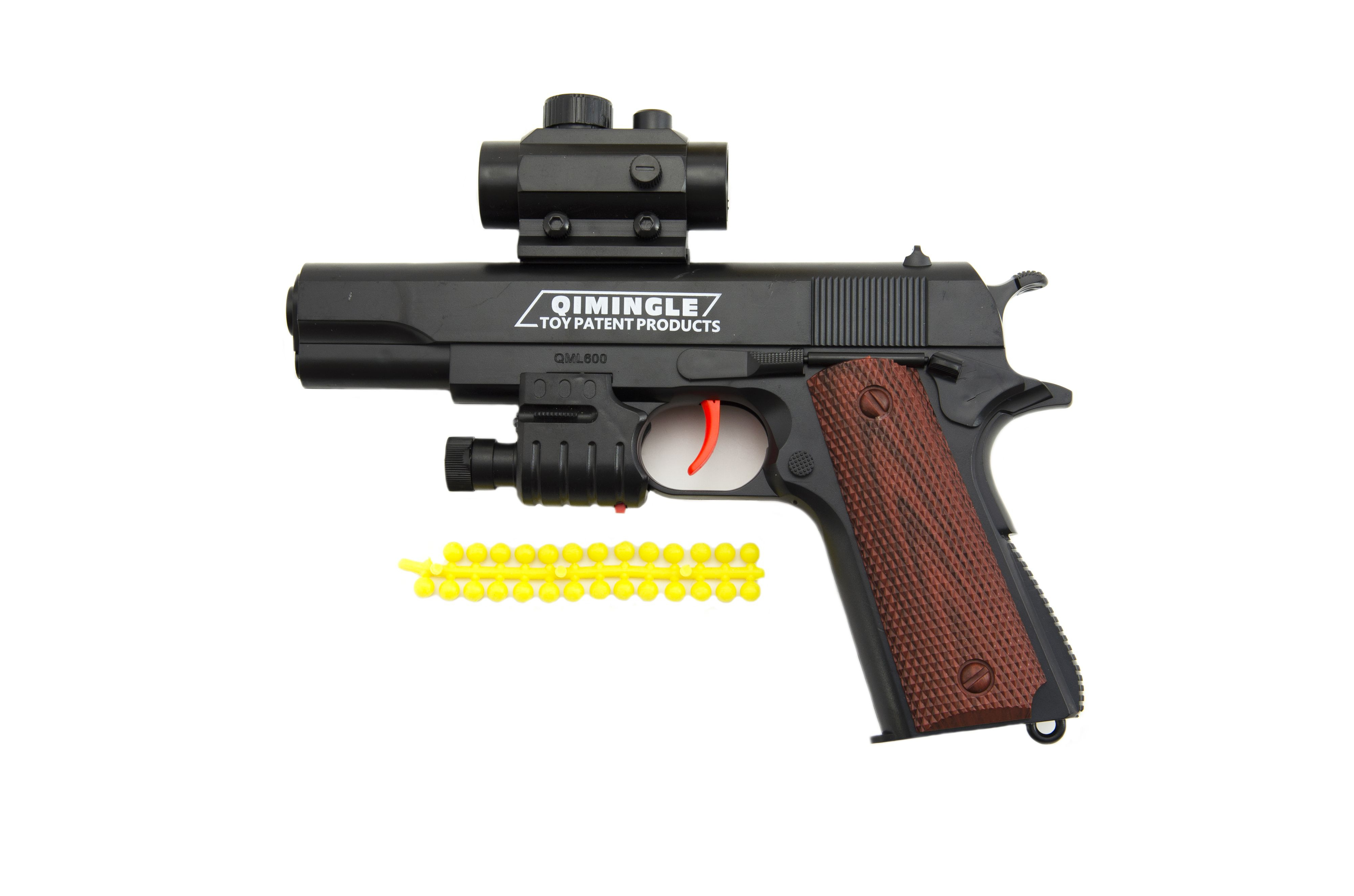 Teddies Pistole Metall/Plastik 11cm für Kugeln, verschiedene Arten im Karton 15x12cm
