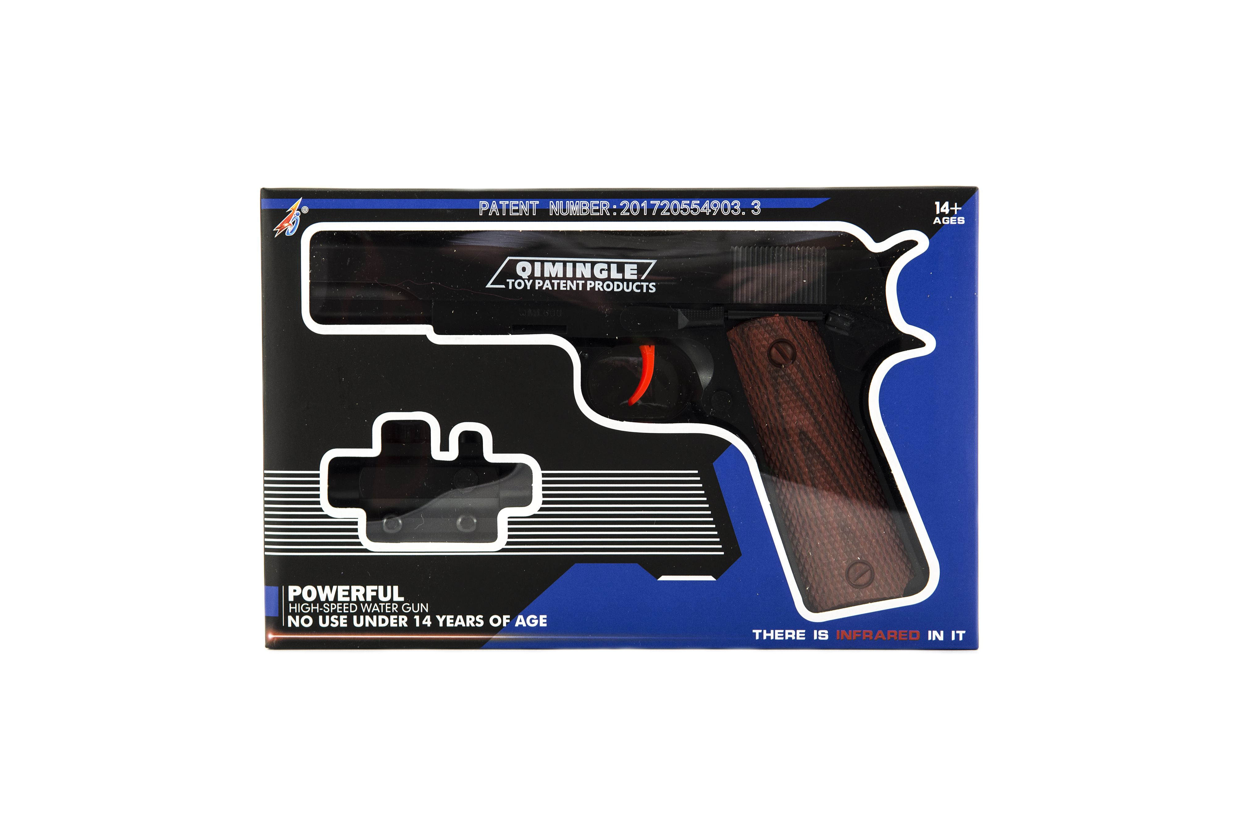 Teddies Pistole aus Kunststoff für 6mm Kugeln mit Zielscheibe in Schachtel 45x29x5cm