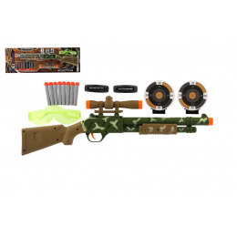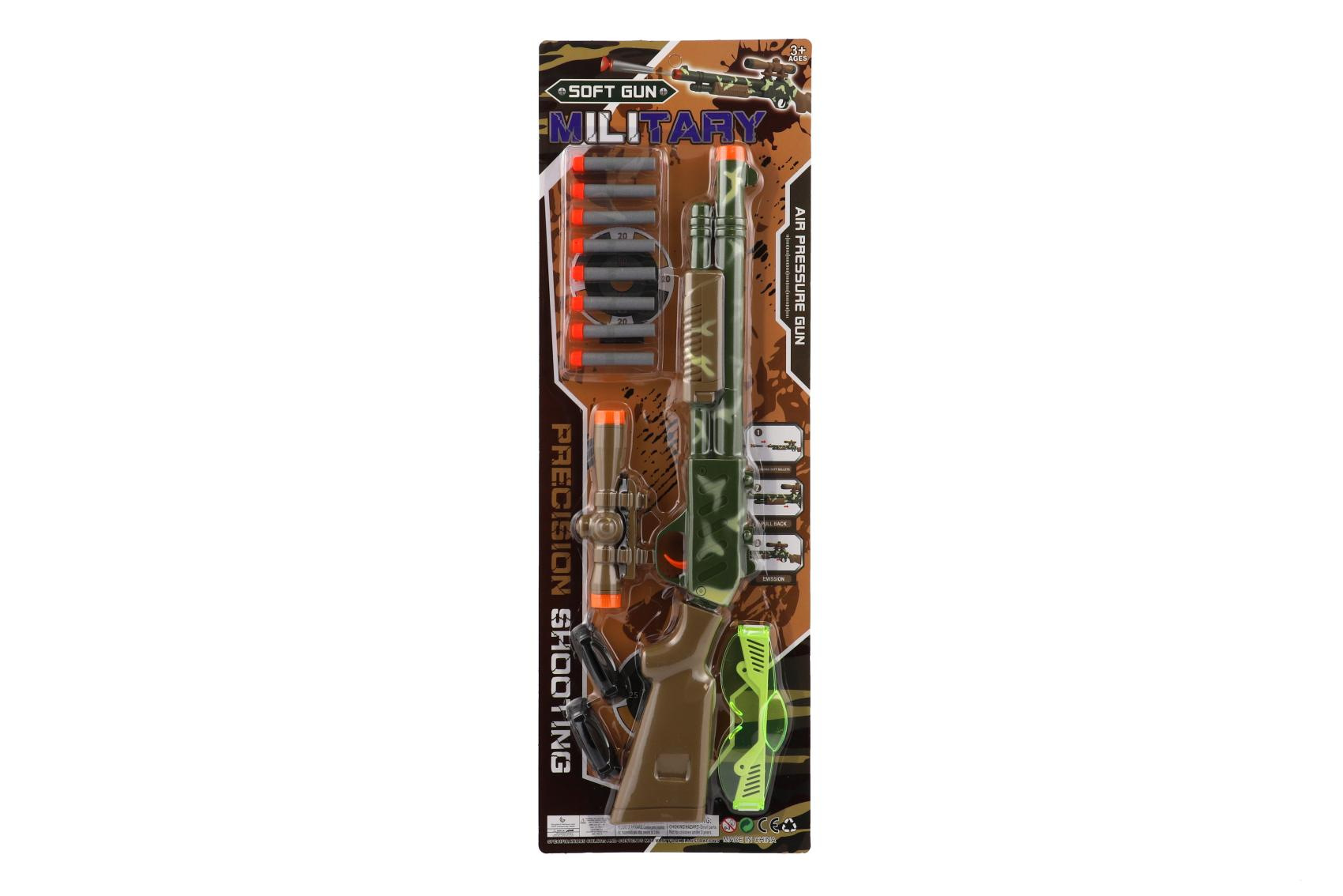 Beschreibung Teddies Pistole/Gewehr mit Visier aus Kunststoff 51cm + 8 Schaumstoffpatronen, Brille auf Karte 21x62x3cm