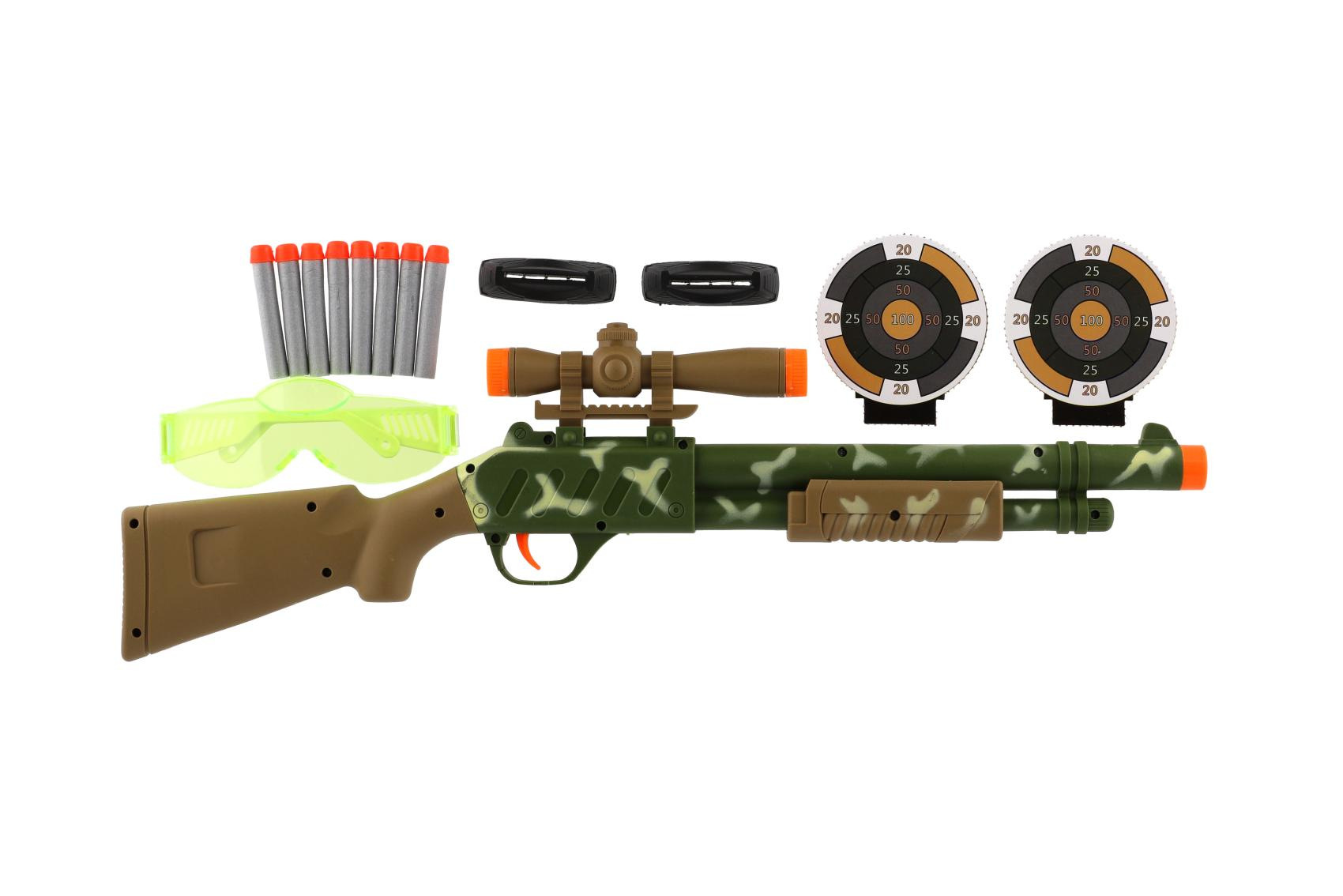 Mit diesem Gewehr werden Sie zum echten Jäger. Finden Sie das beste Versteck, zielen Sie genau und schießen Sie! Das Gewehr verfügt über ein abnehmbares Zielfernrohr, 8 Kugeln und eine Schutzbrille sind im Lieferumfang enthalten. Gewehrgröße: 51 cm Verpackungsgröße: 21 x 62 x 3 cm Geeignet für Kinder ab 3 Jahren