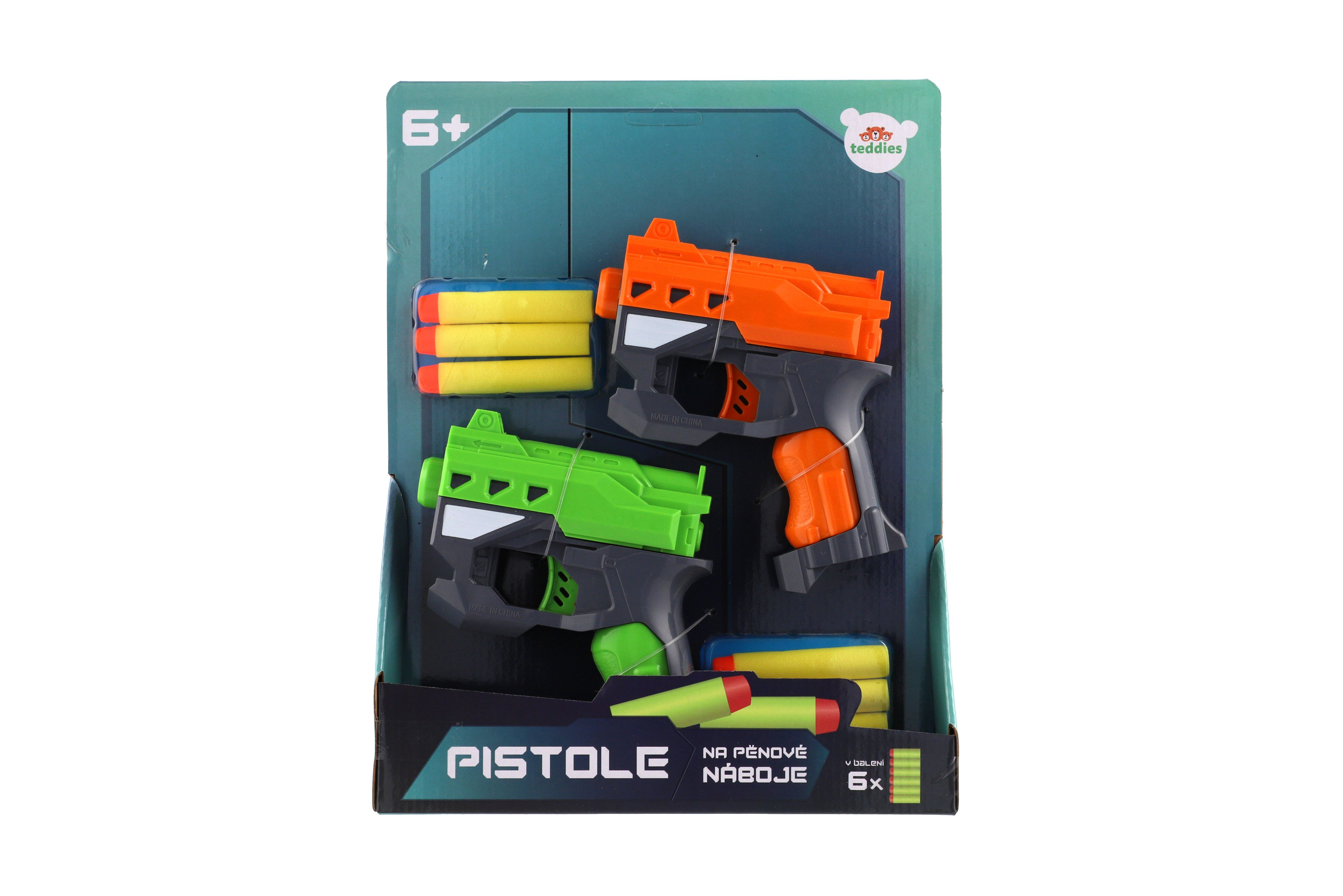 Beschreibung Teddies Pistolen 2 Stück 12cm Kunststoff für Schaumstoffgeschosse + 6 Stück Geschosse auf Karte