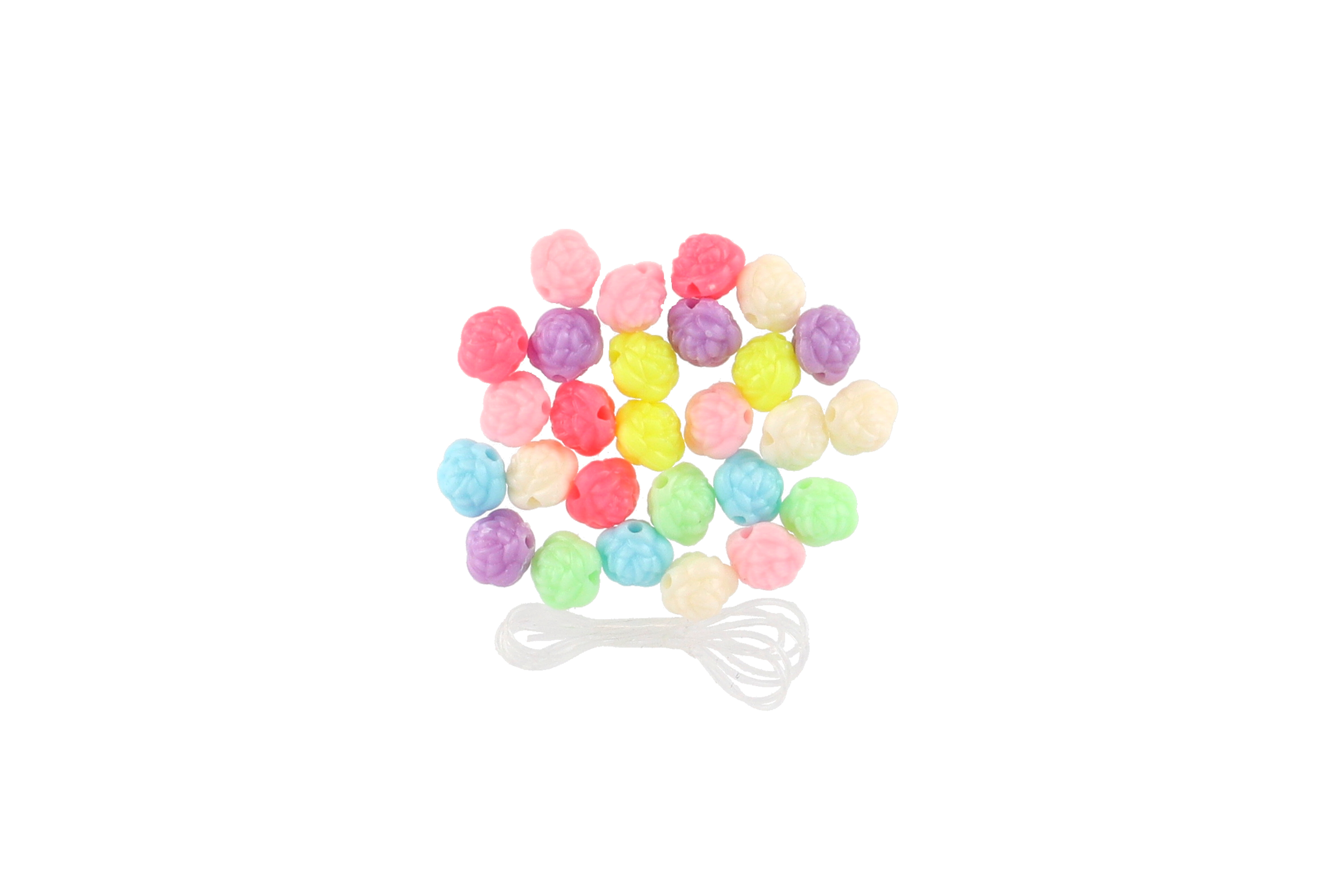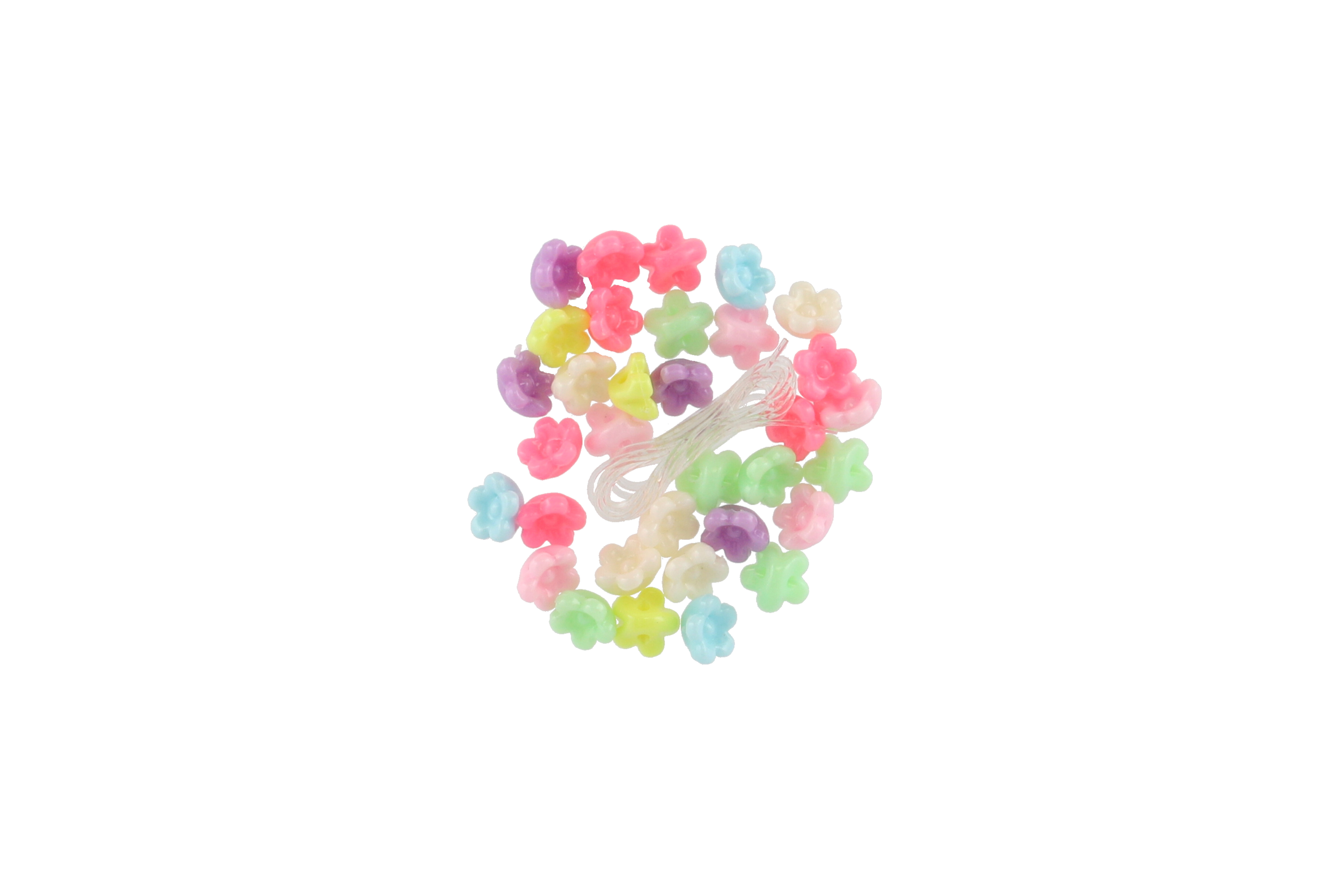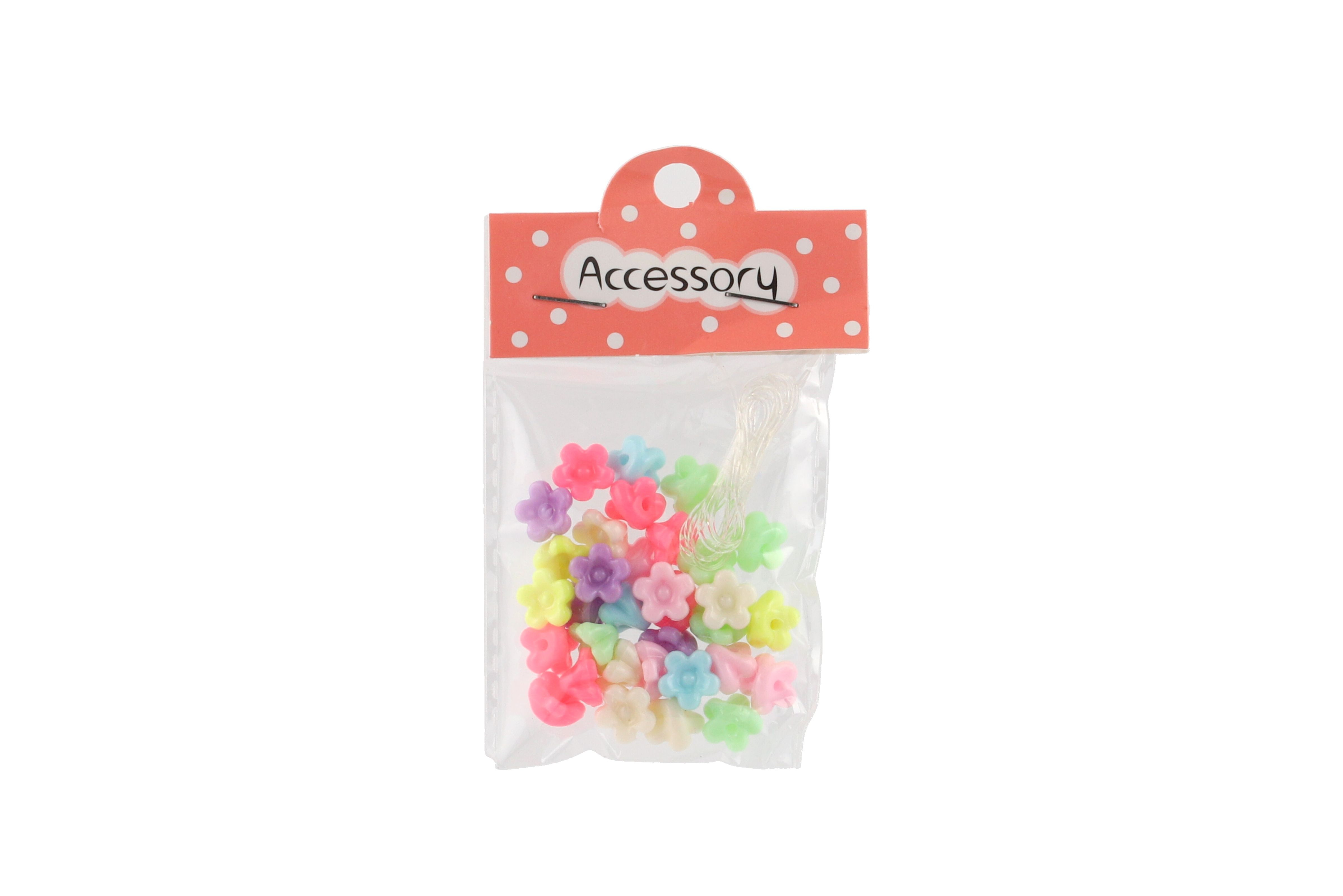 Teddies Plastikperlen Blümchen mit Schnur 2 Arten im Beutel 6,5x11x1cm