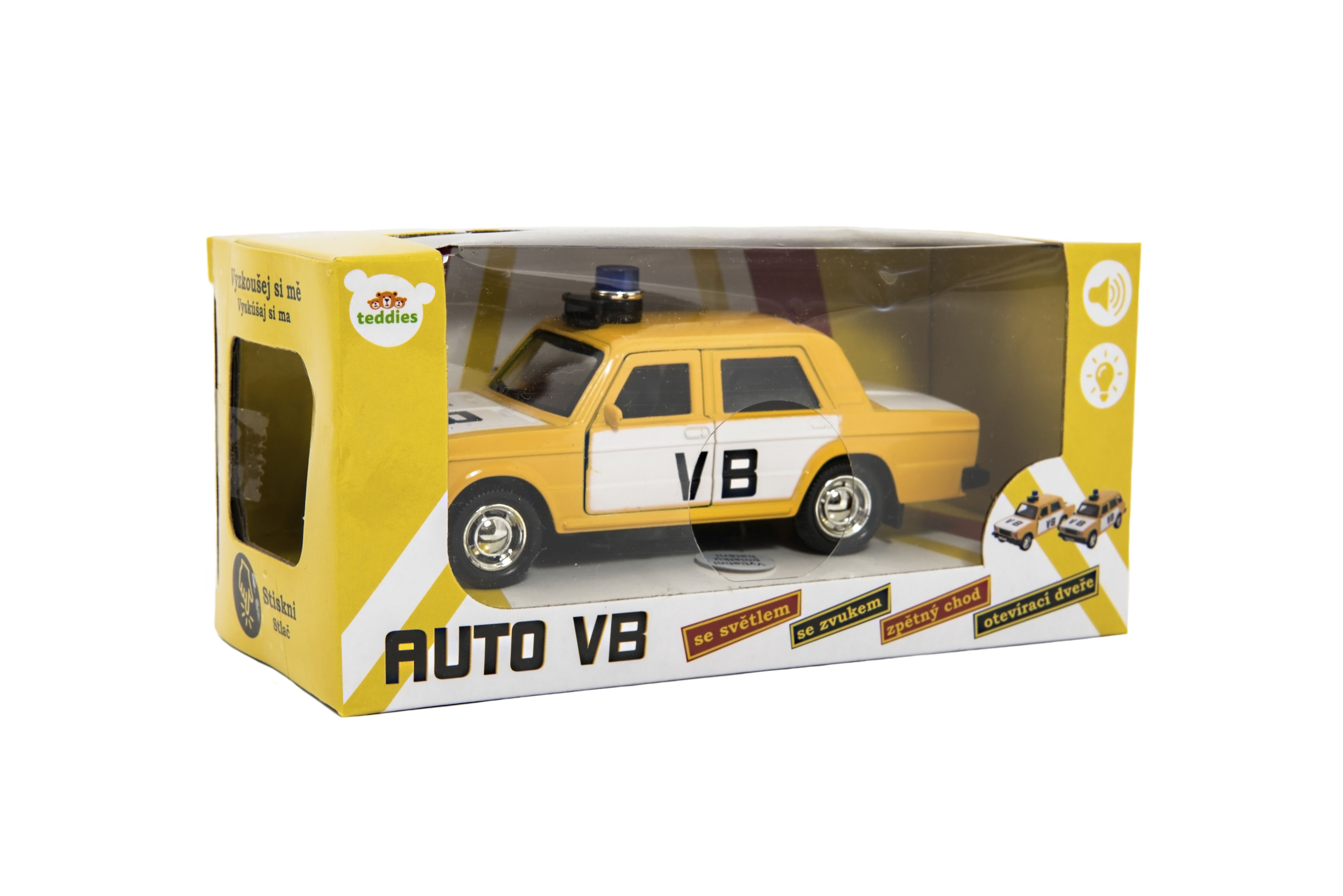 Teddies Polizeiauto VB Metall/Kunststoff 11,5cm mit Rückzug, batteriebetrieben mit Sound in Schachtel 15x7x7cm