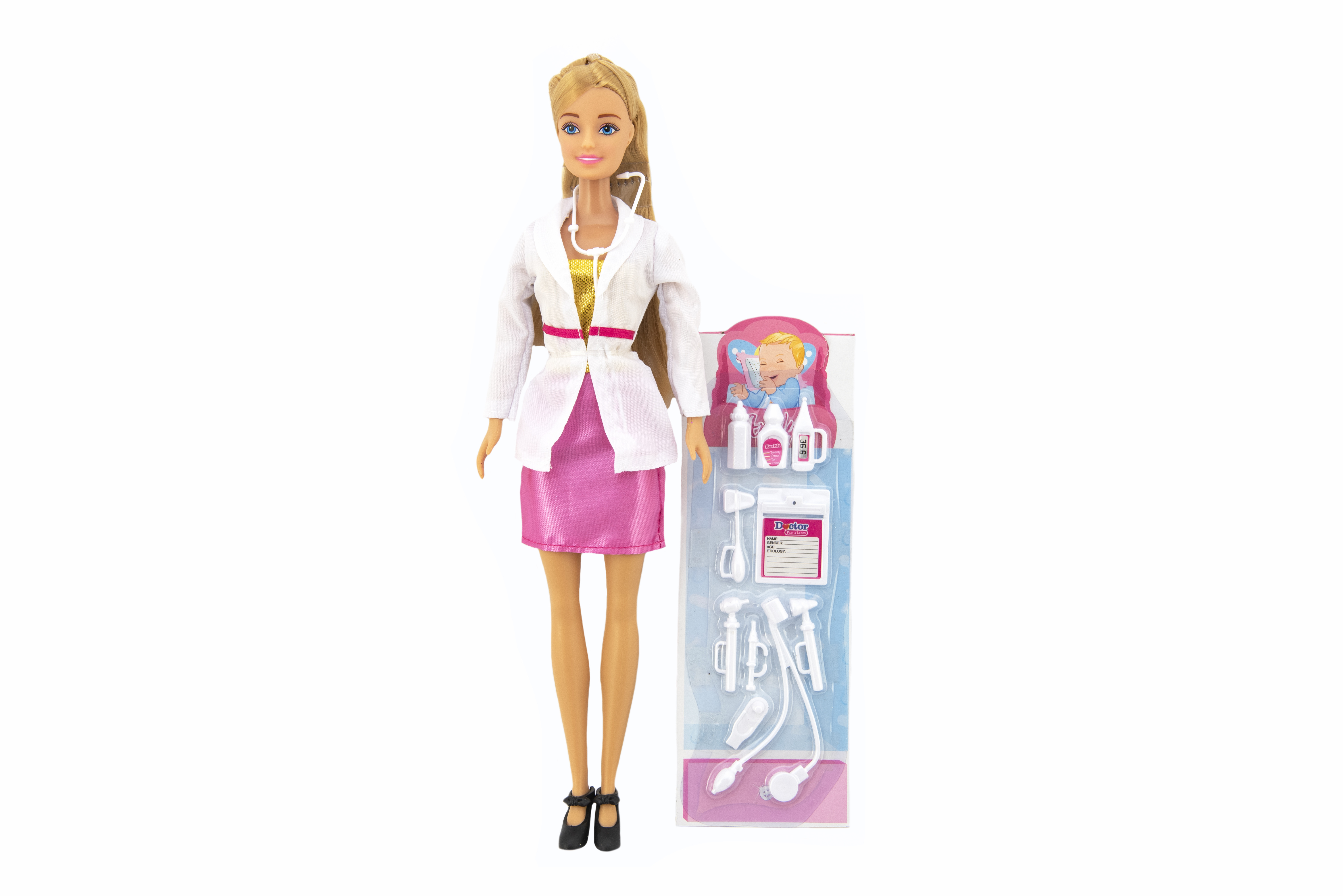 Die Arztpuppe ist ein tolles Geschenk für ein kleines Mädchen, das gerne Arzt spielen möchte. Das Set enthält eine Arztpuppe und Zubehör, das in jede Arztpraxis gehört. Die Puppe hat wunderschönes langes Haar, das kleine Mädchen nach ihrer eigenen Fantasie stylen können. Verpackungsmaße 16 x 32 x 5 cm. Geeignet für Kinder ab 3 Jahren.