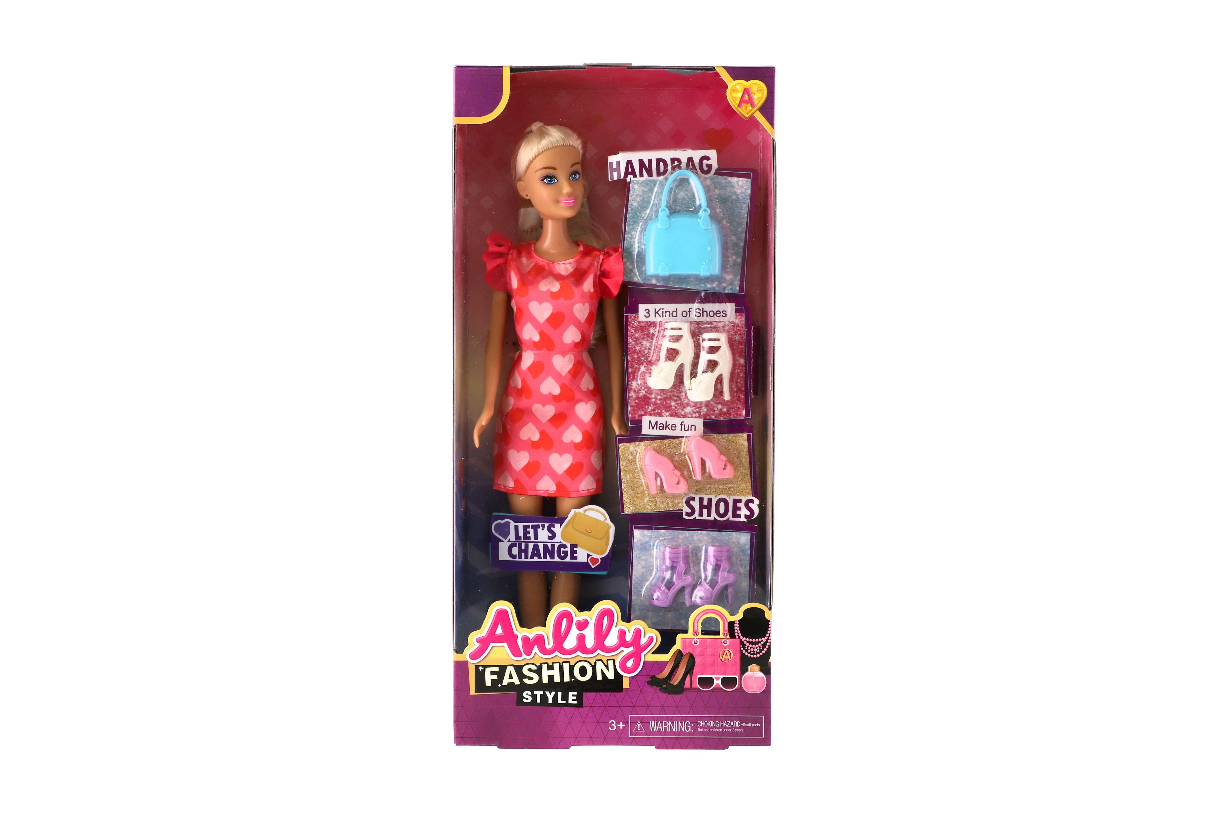Teddies Puppe Anlily Kunststoff 28cm mit modischen Accessoires 2 Farben in Schachtel 15x32x5cm