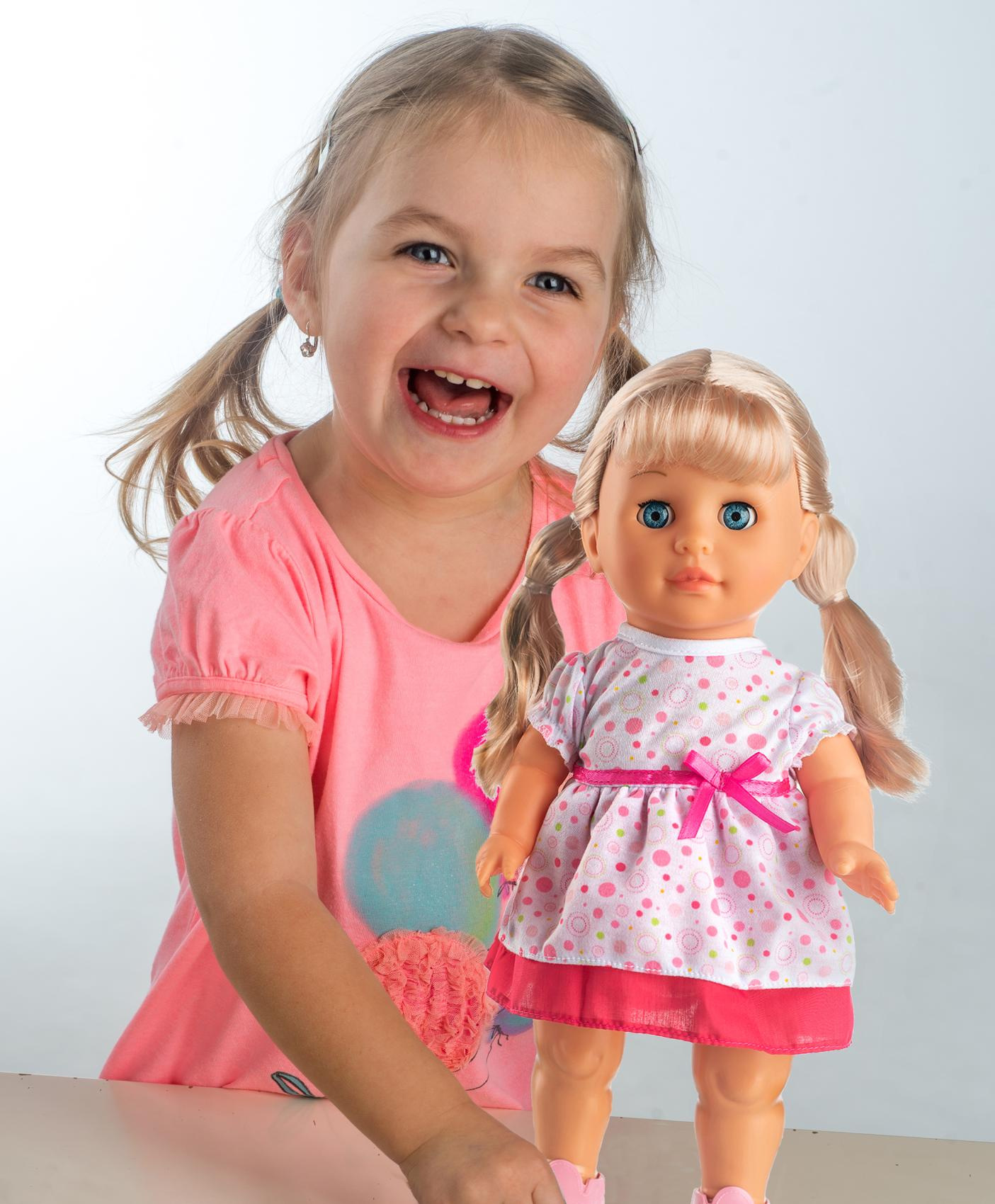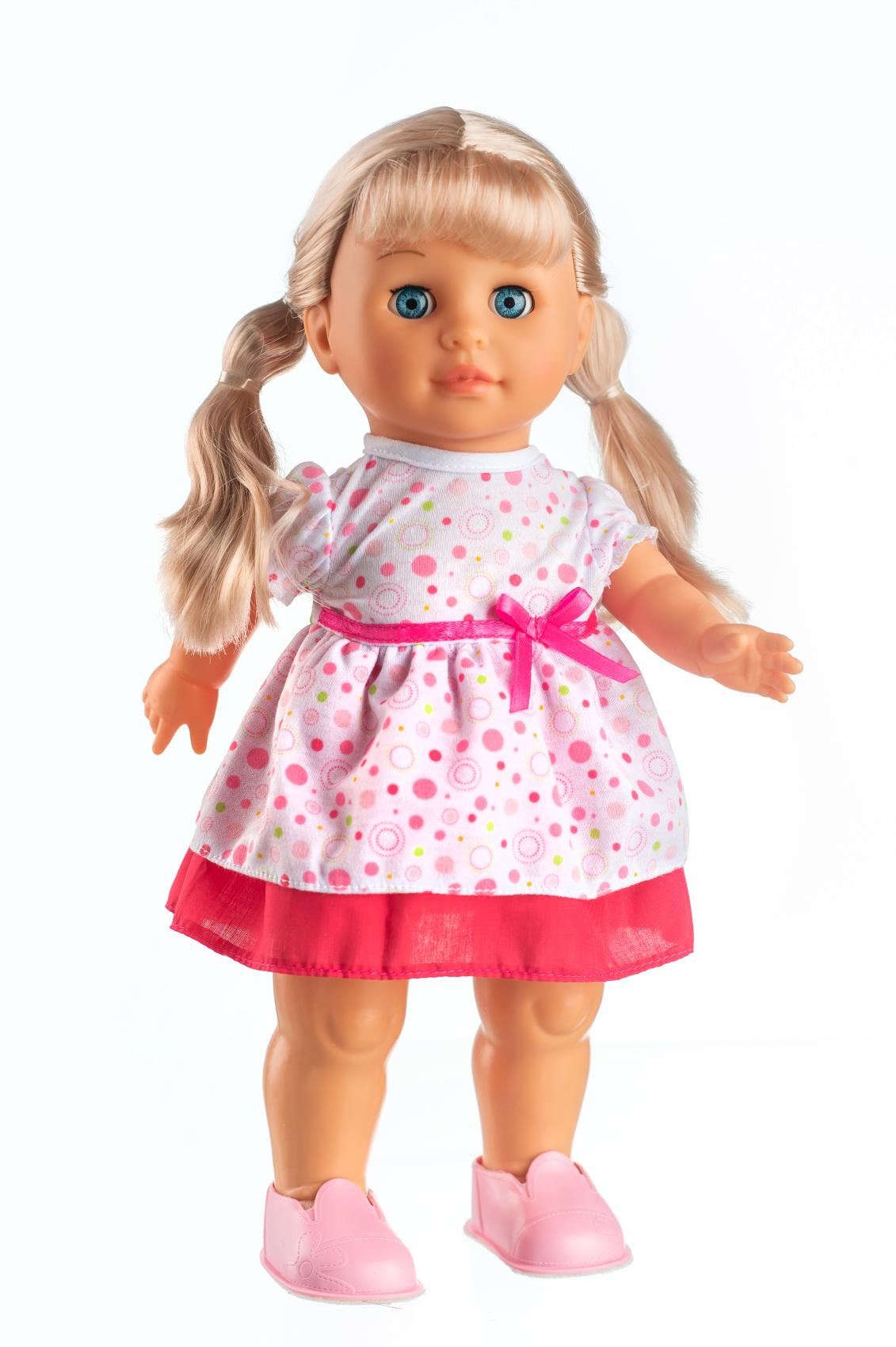 Beschreibung Teddies Puppe Barunka gehend und auf Tschechisch singend aus Kunststoff 42cm mit Batterien mit Sound in der Schachtel 21x44x11cm