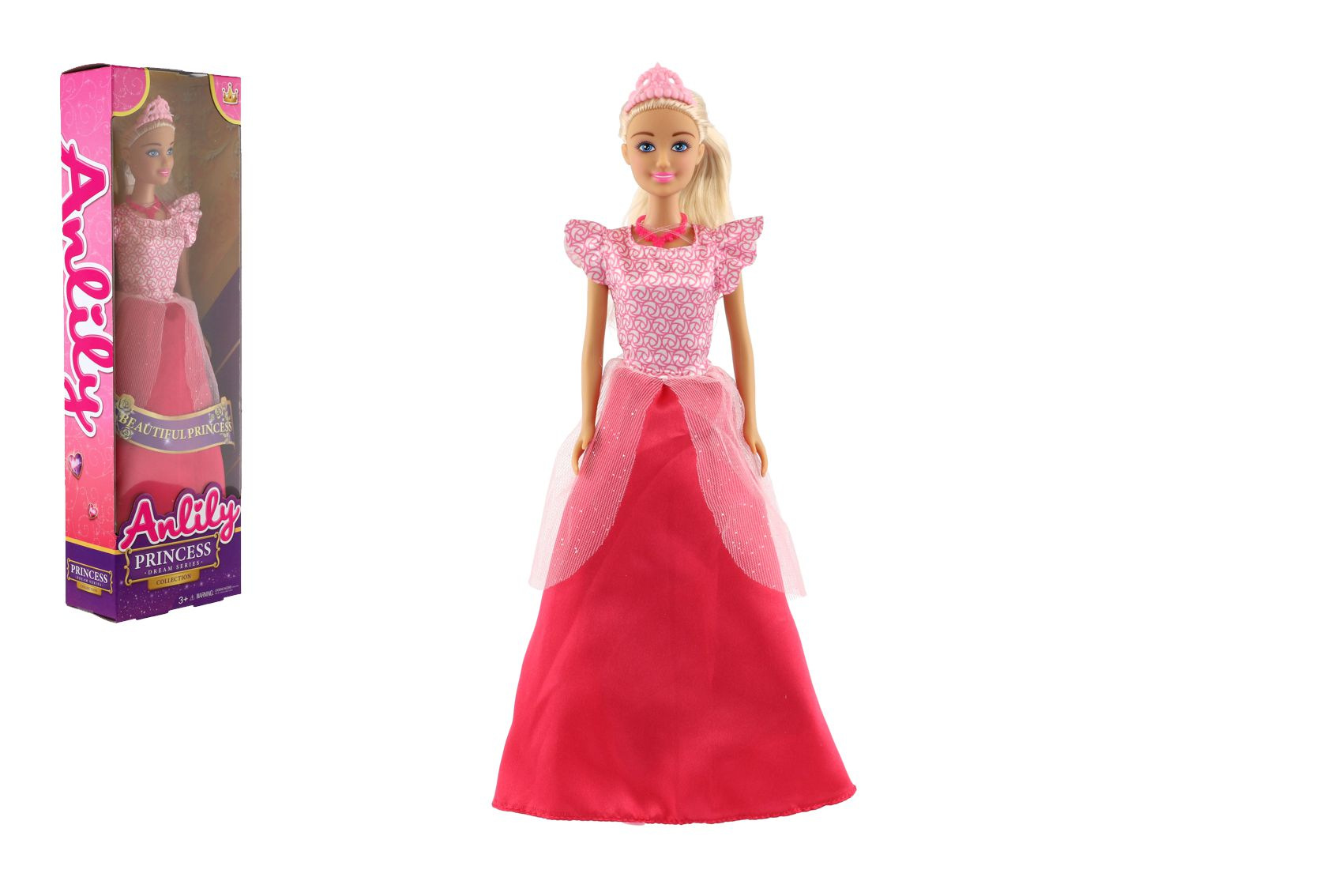 Eine Puppe wie eine Prinzessin. Sie hat ein wunderschönes Kleid, langes Haar und eine Krone. Das Spielen mit dieser Puppe fördert die Fantasie der Kinder und verbessert ihre Feinmotorik. Puppengröße: 28 cm Verpackungsgröße: 10x32x5 cm Geeignet ab 3 Jahren