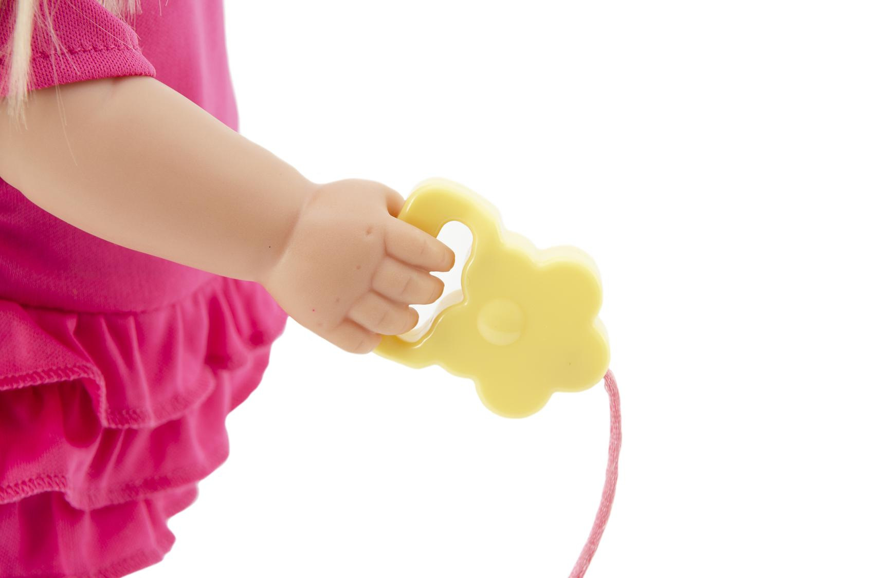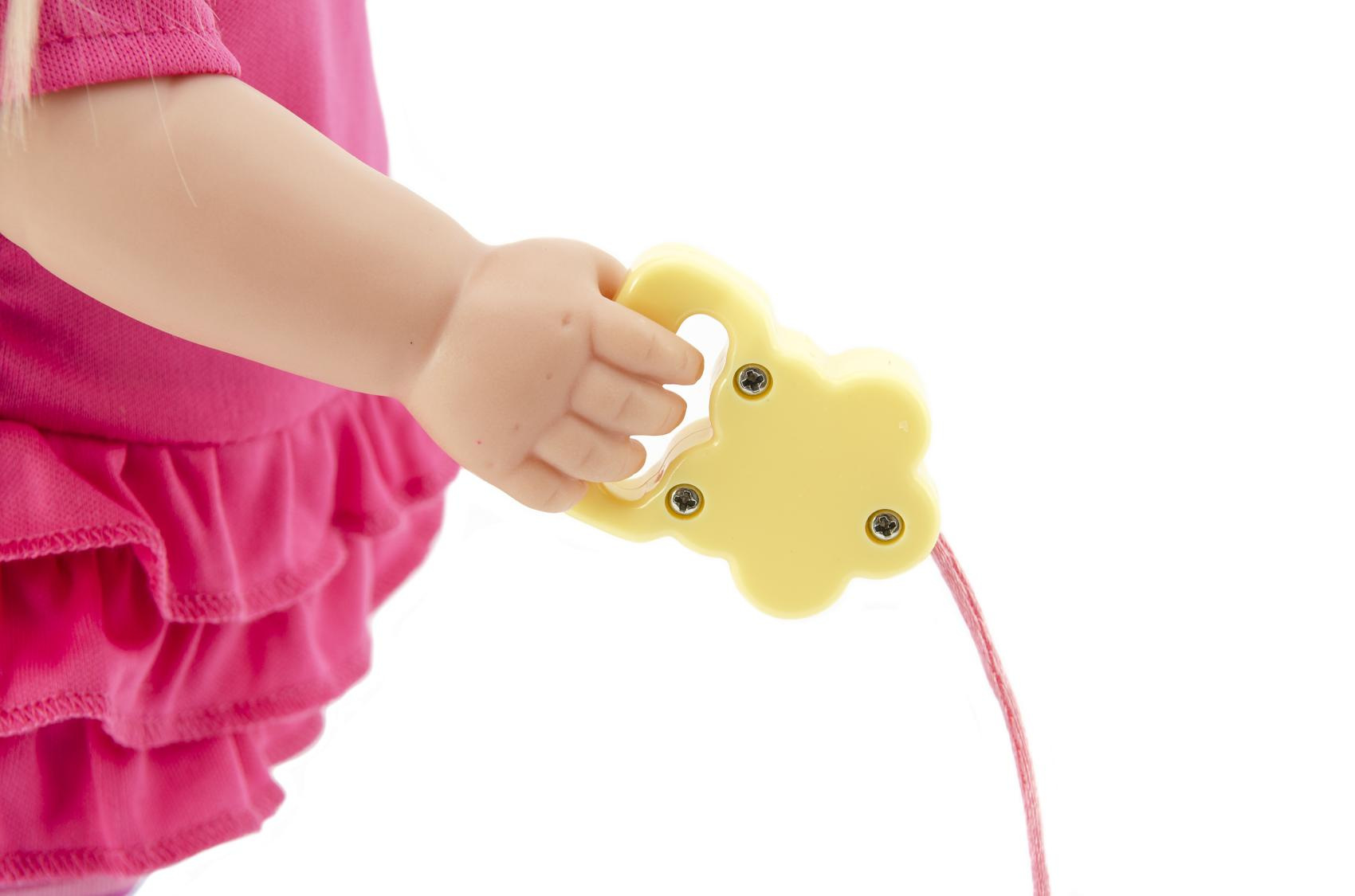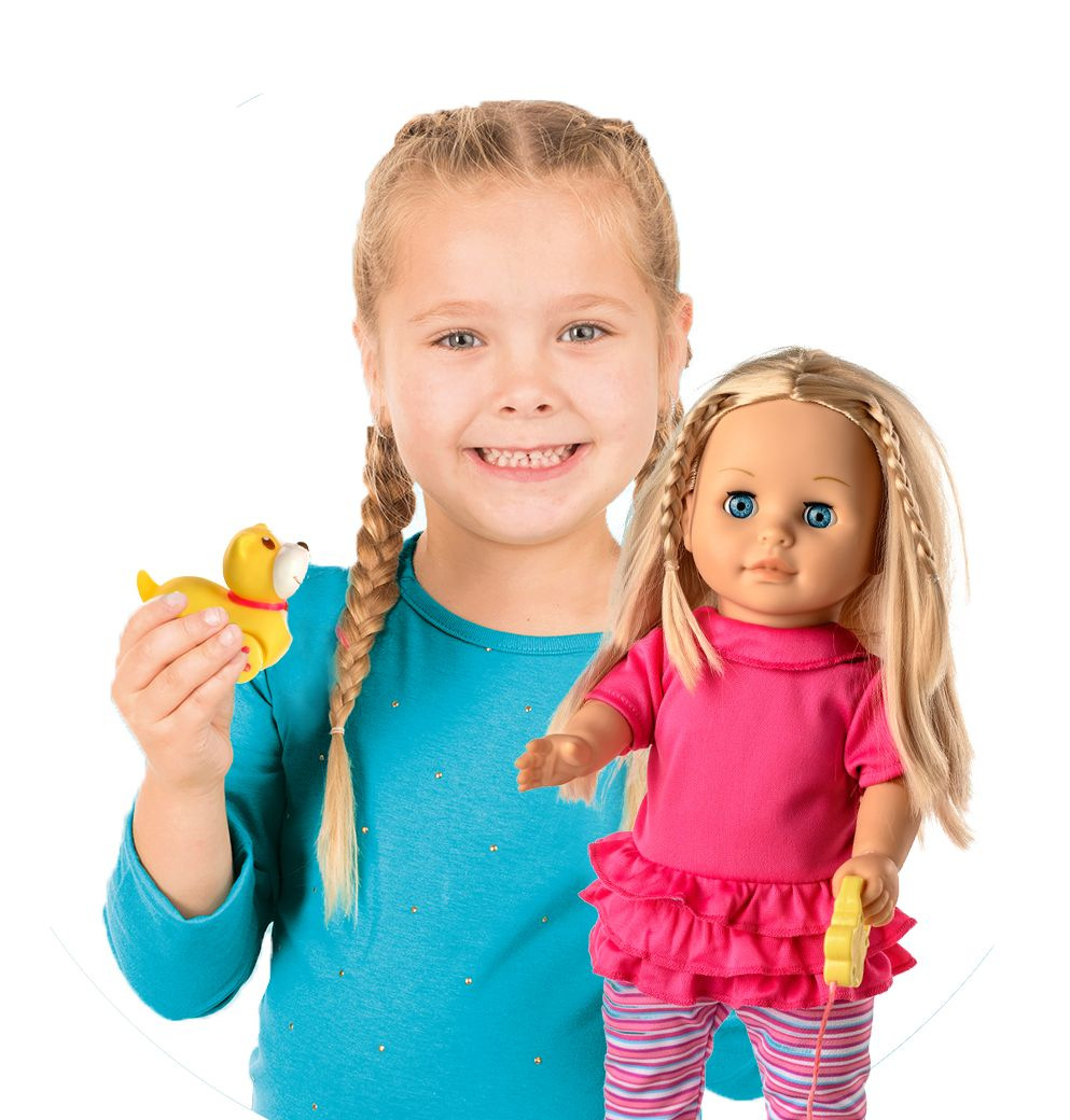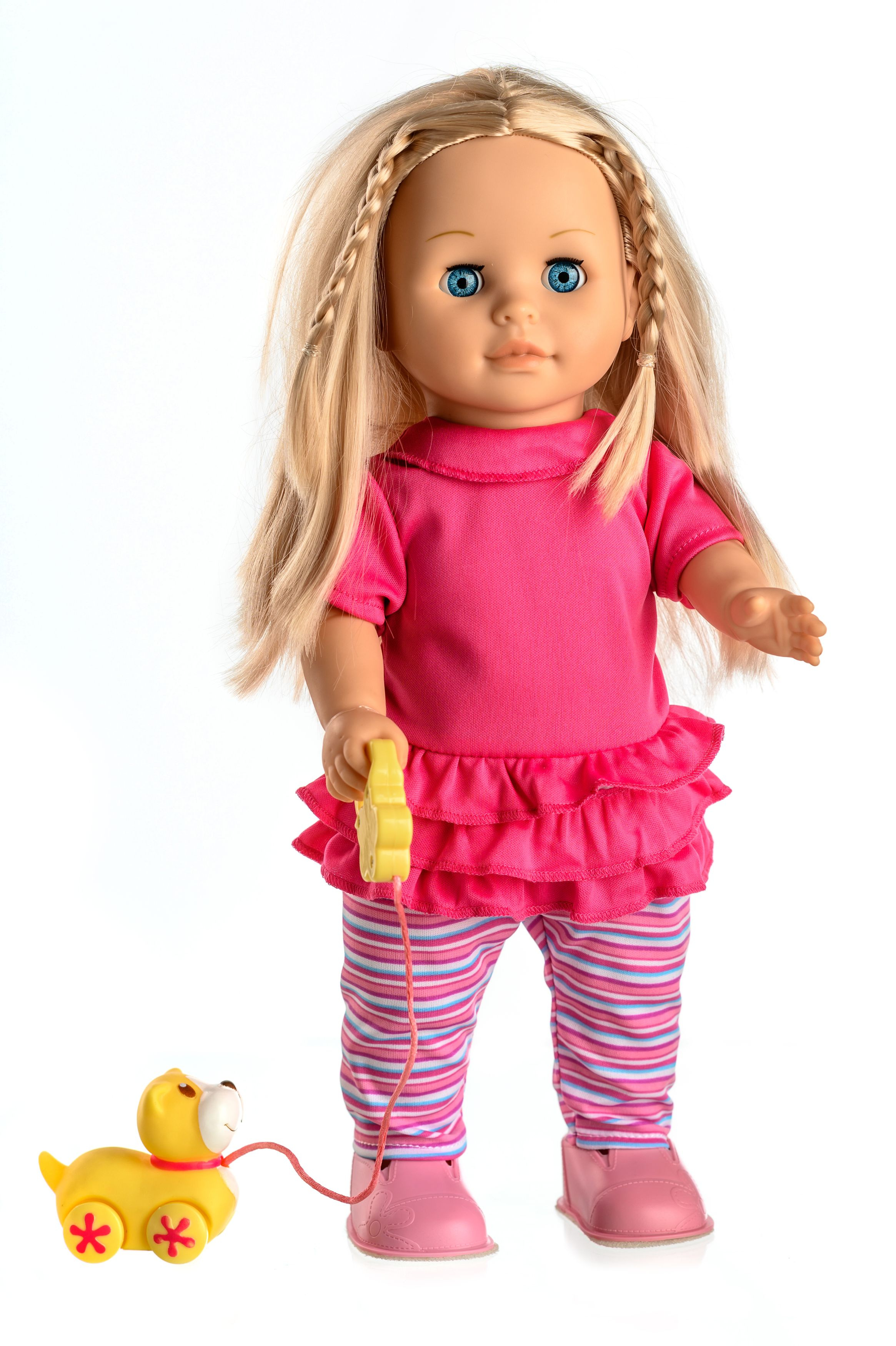 Die Sofinka-Puppe mit dem schönen langen Haar hat einen netten Freund in Form eines Hundes an der Leine. Nach dem Drücken des Knopfes auf ihrem Bauch beginnt die Puppe zu sprechen: „Hallo, ich bin Sofinka und ich liebe meinen Hund.“ Können Sie mir helfen, an seinen Namen zu denken? Wollen wir zusammen spielen? Gib mir die Leine und wir gehen spazieren. Ich liebe dich....„Und wenn man ihr eine Leine in die Hand gibt, läuft sie los, batteriebetrieben. Puppengröße: 42 cm Kartongröße: 26 x 44 x 13 cm Batteriebetrieben – 3 Stück Typ AA 1,5 V – Batterien sind im Produkt enthalten. Geeignet für Kinder ab 3 Jahren