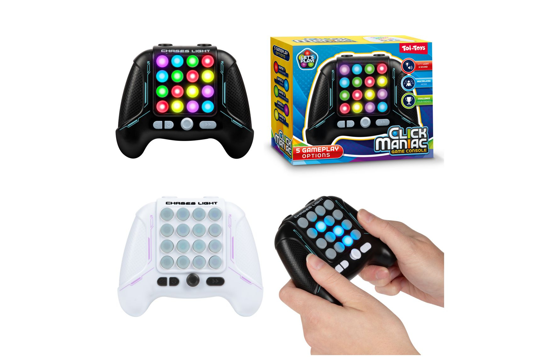 Teddies Reaktionsspiel aus Kunststoff mit Licht und Ton, batteriebetrieben, 2 Farben, in Schachtel 15x12x5,5cm