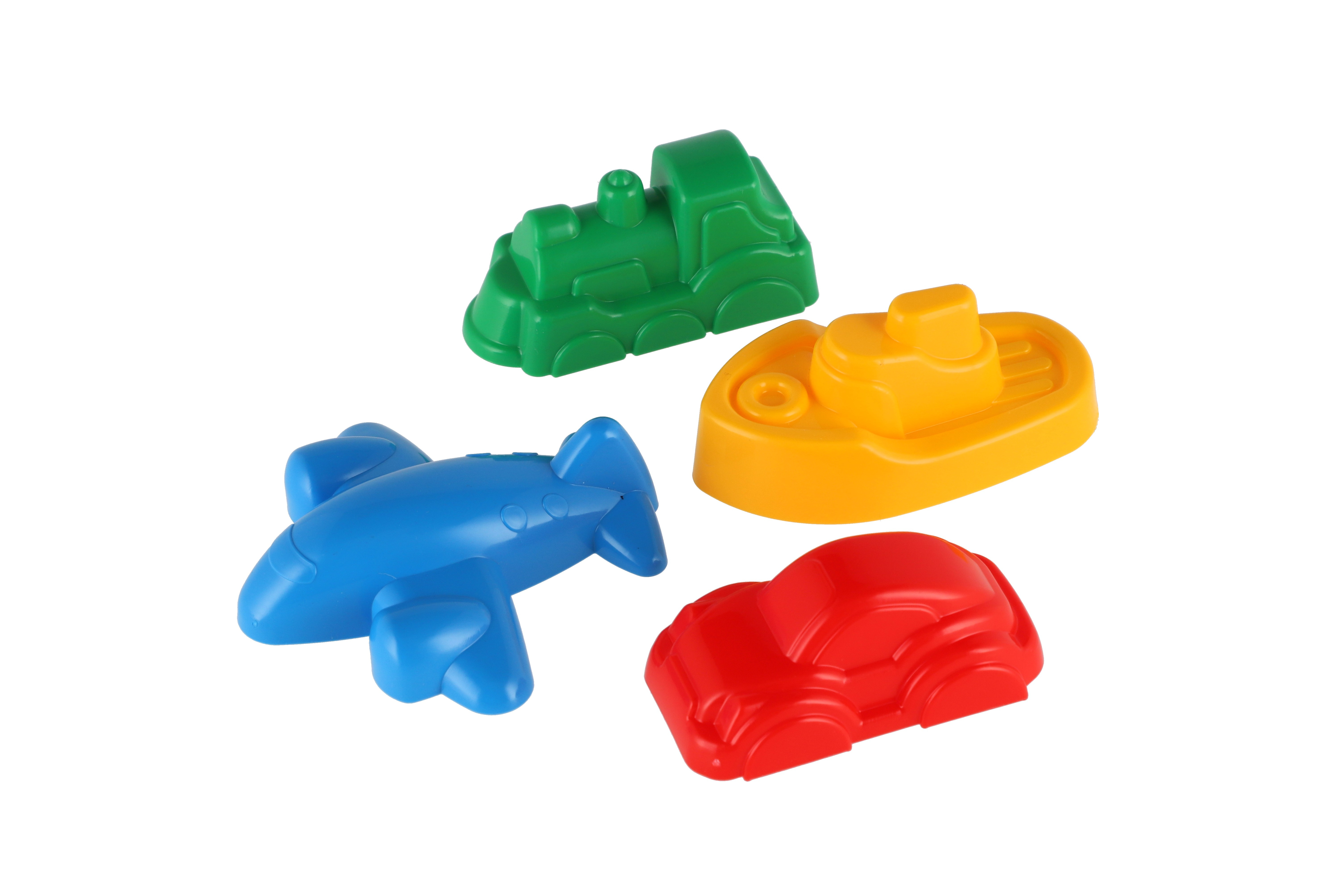 Beschreibung Teddies Sandformen Gugelhupf 4 Stück aus Kunststoff, Verkehrsmittel im Netz 12m+