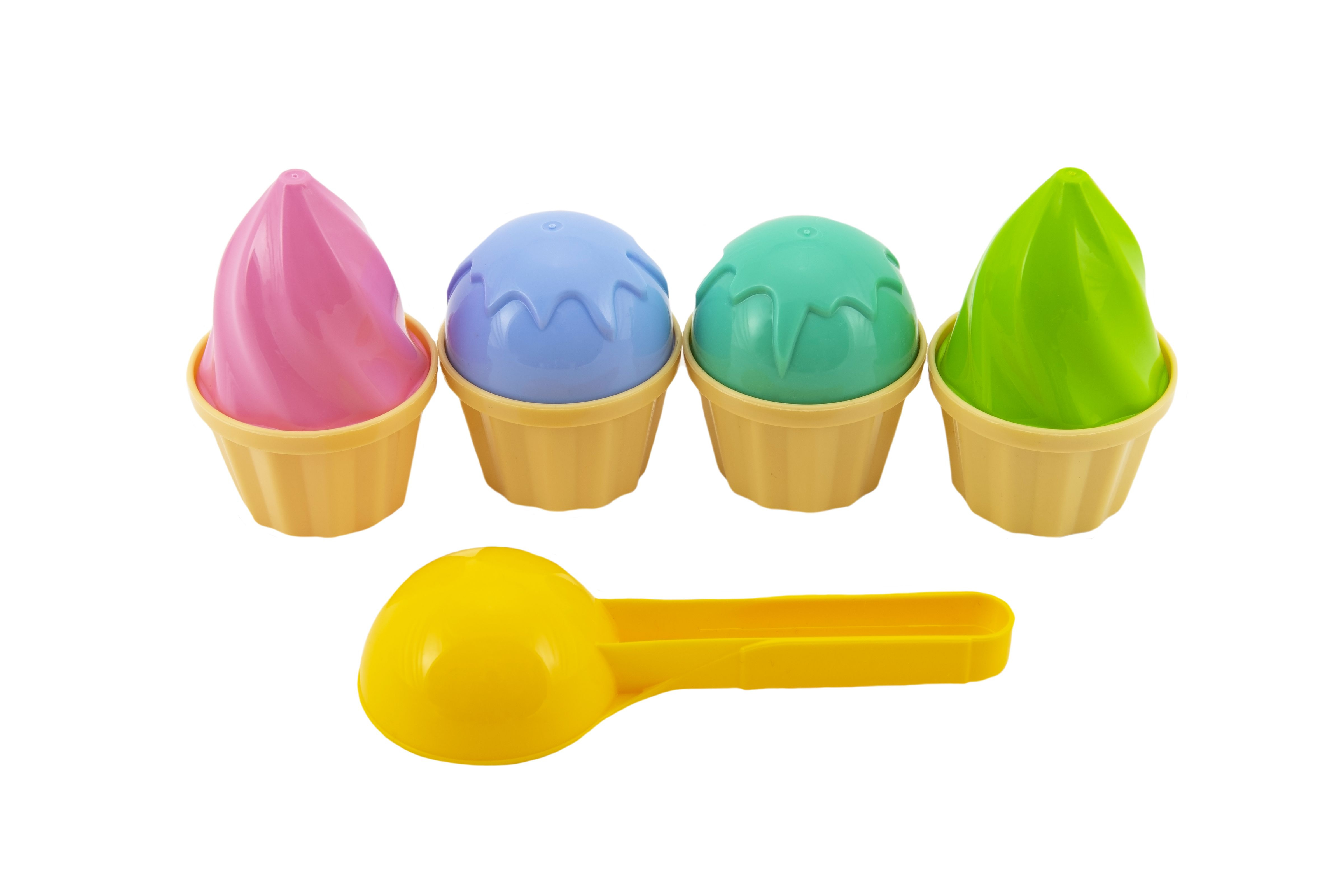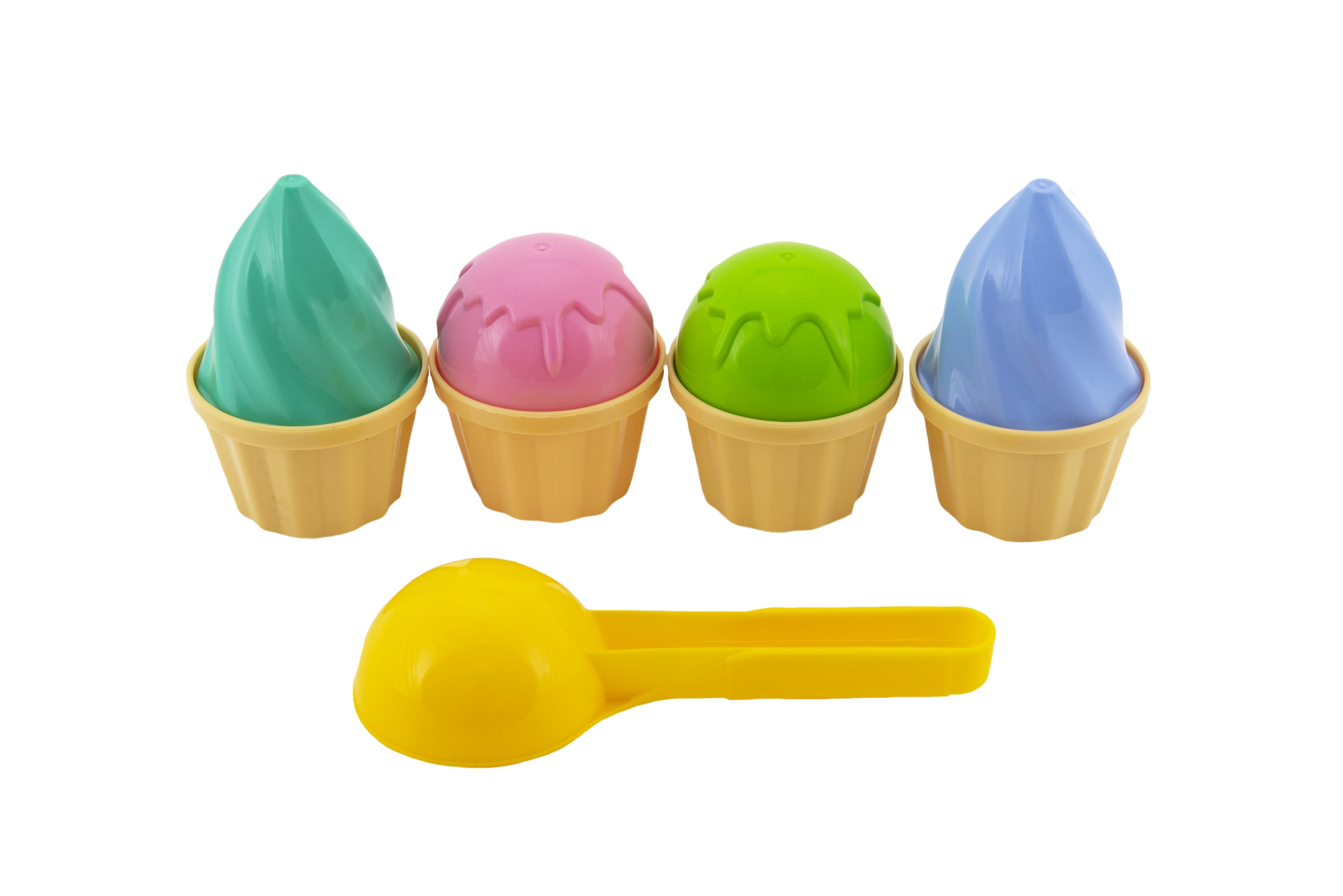 Teddies Sandset Eiscreme aus Kunststoff Schaufel 15cm + Sandformen 2 Farben