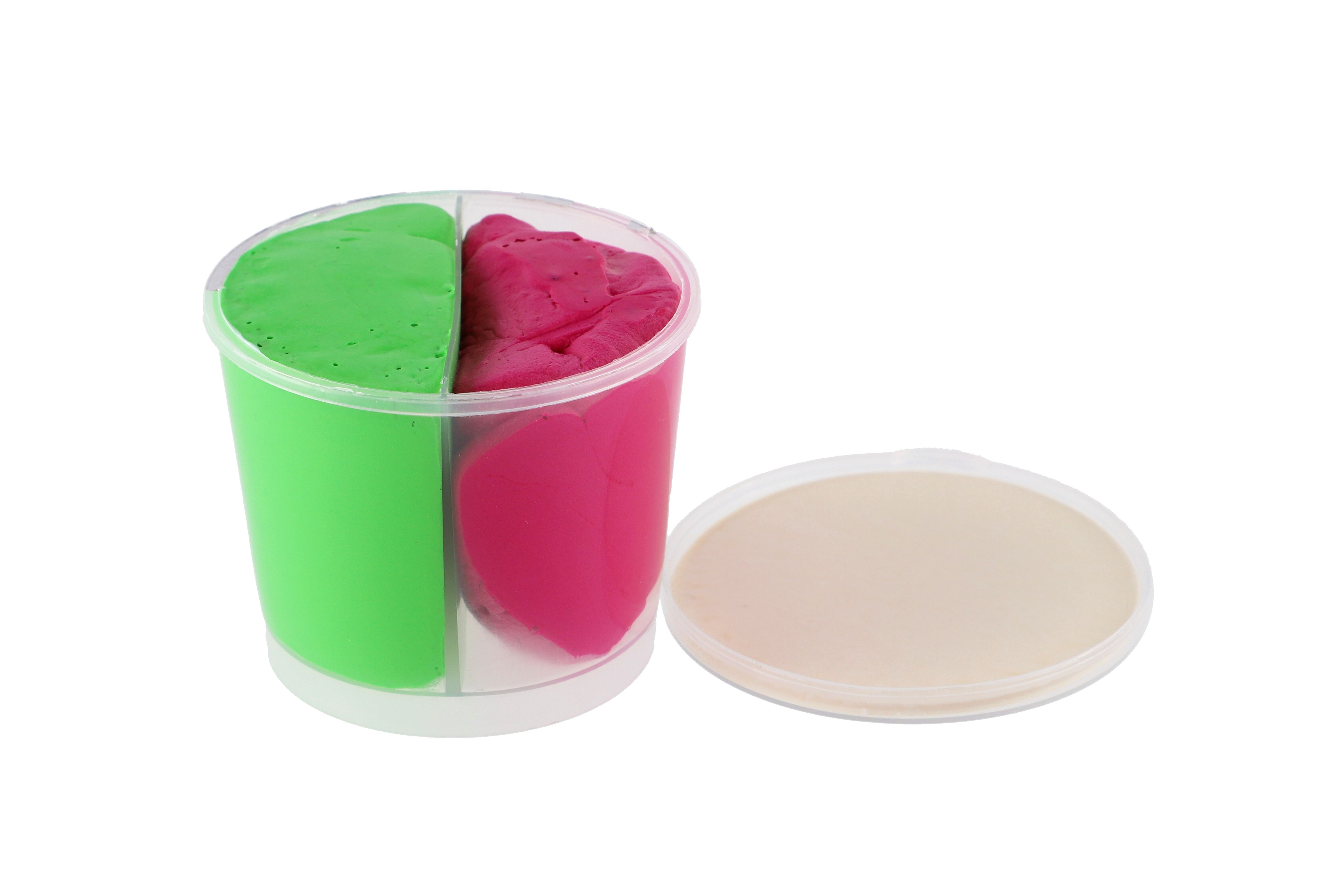 Ein lustiger Streich für Kinder! Formen und Hüpfen von farbigem Material in einer Tasse. Das Material lässt sich unterschiedlich dehnen und formen und ist zudem federnd. Körbchengröße: 7 x 6 x 7 cm. Geeignet für Kinder ab 3 Jahren.